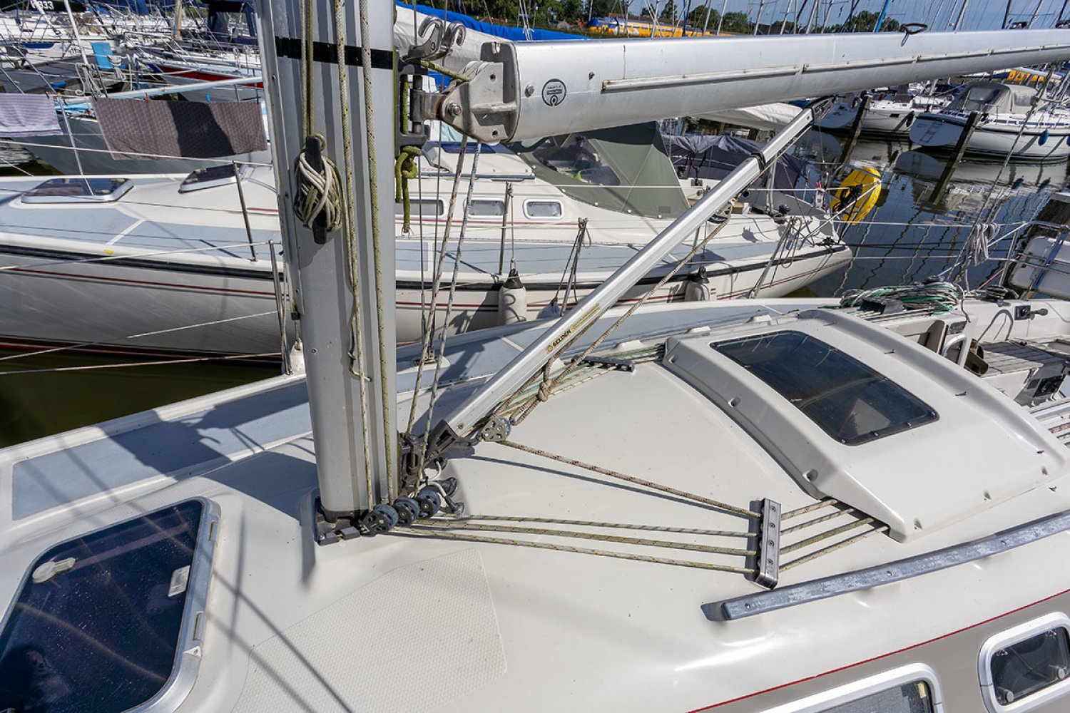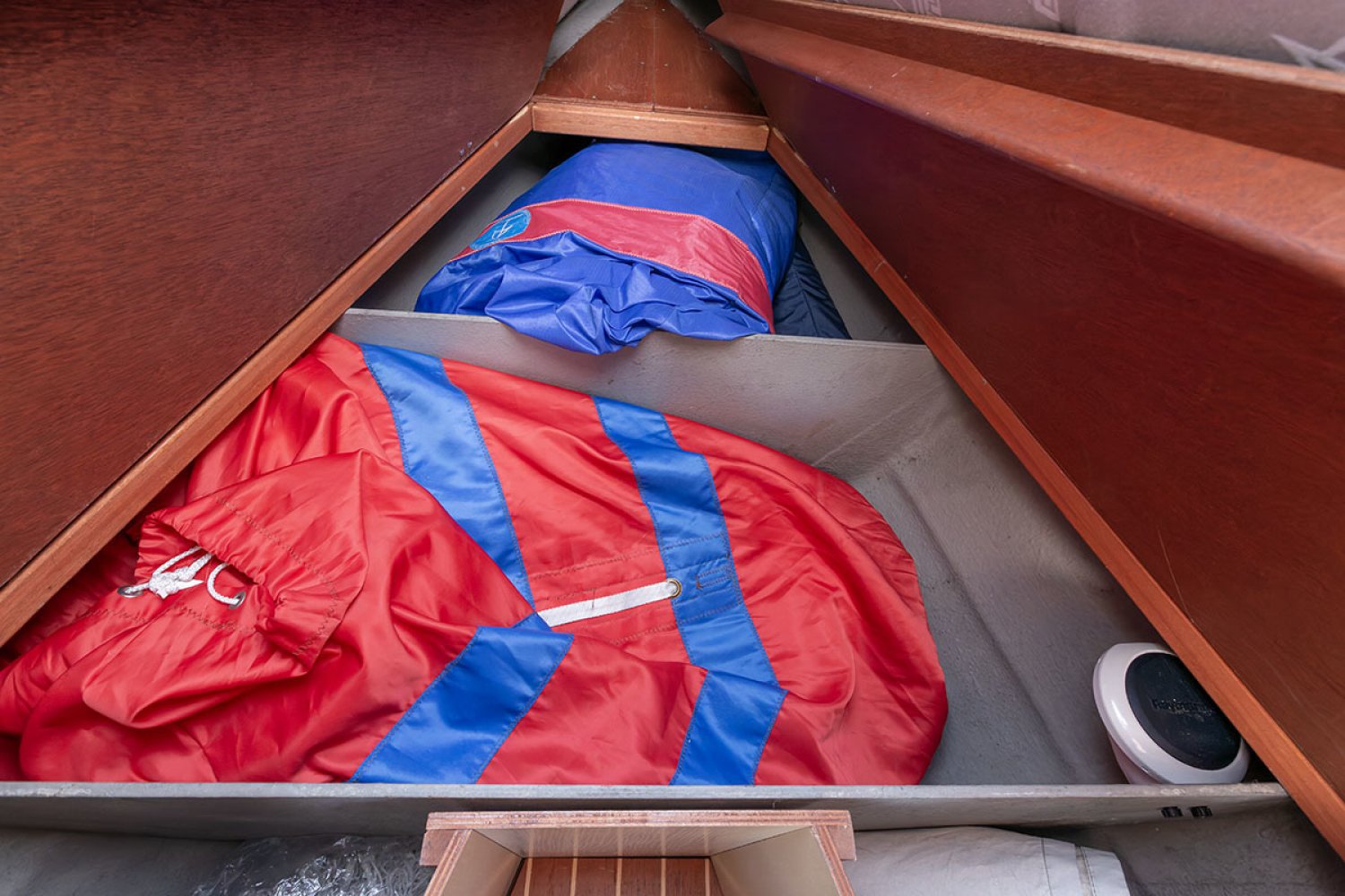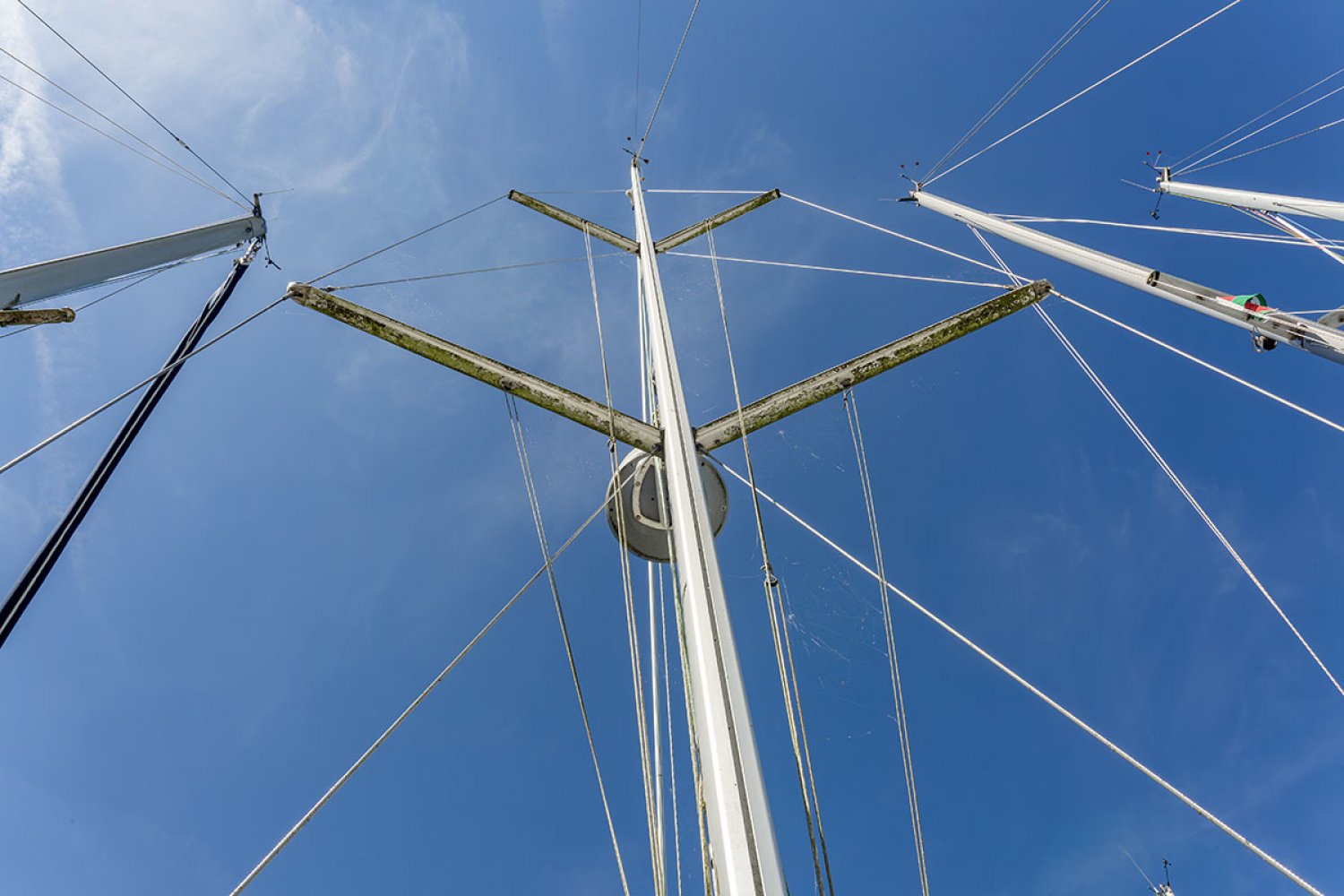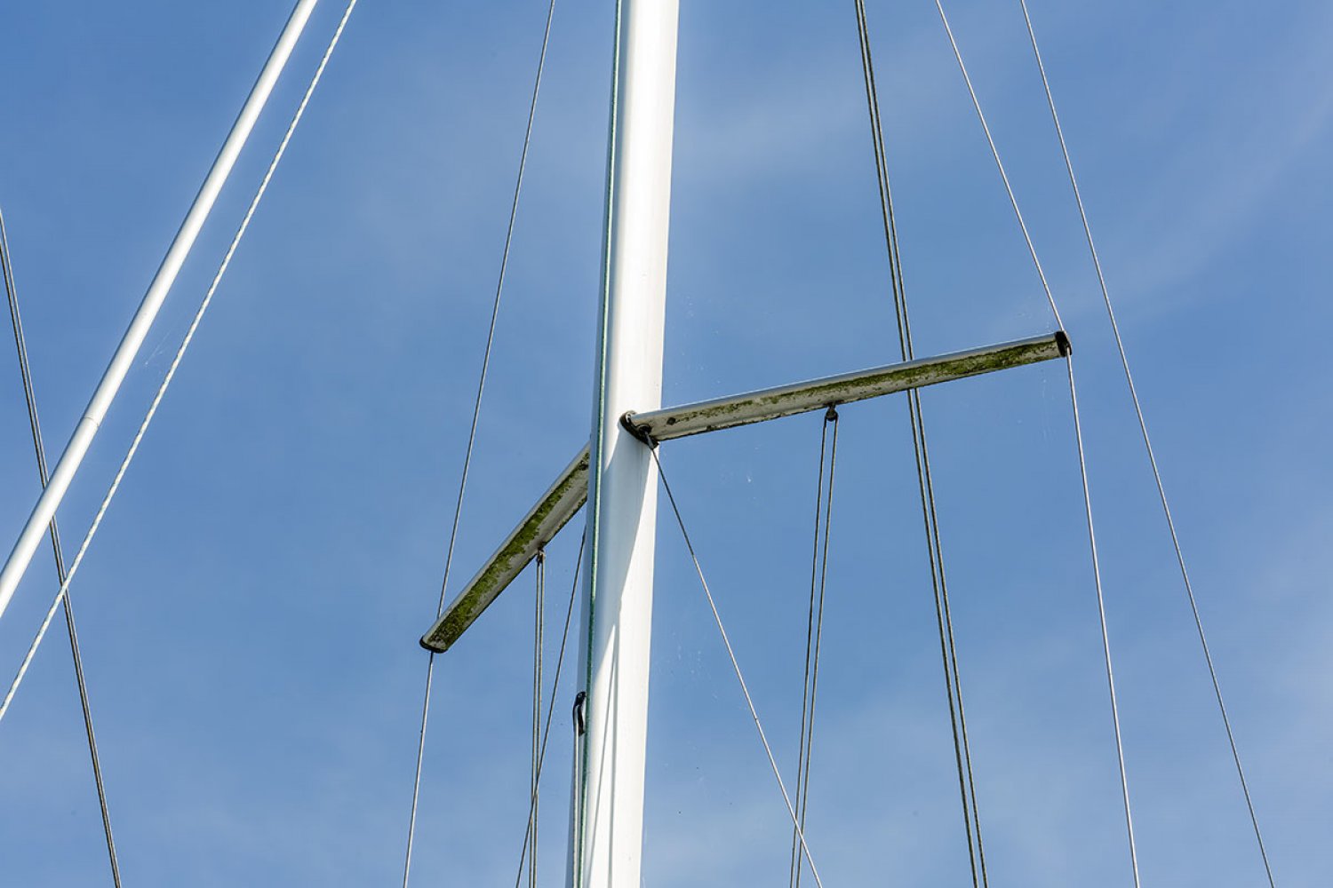 Verstaging: rvs 1x19 voorstag 7 mm, top/onderwant 7 mm, achter 5 mm (nieuw 2016); rolfokhoes + huik voor maindrop, lichtgrijs (beide uit 2017); zeil: Contender Dynalite Sailselect in slurfzak