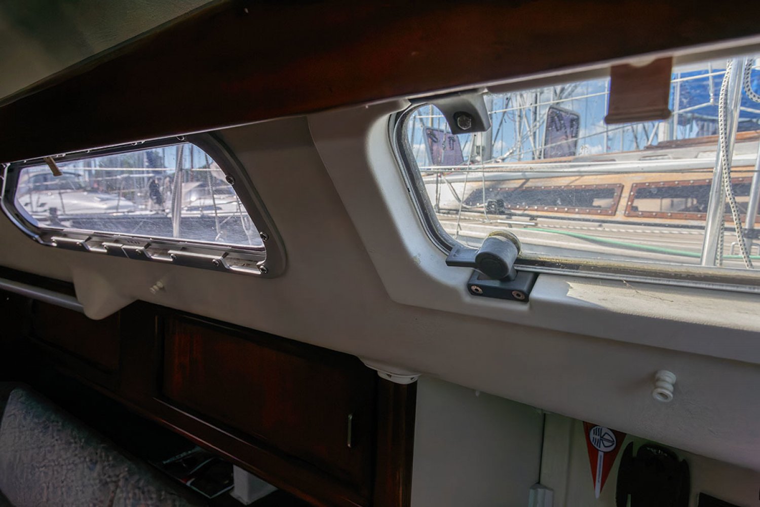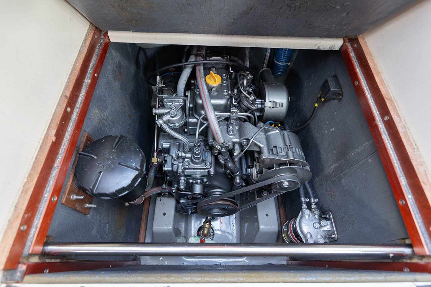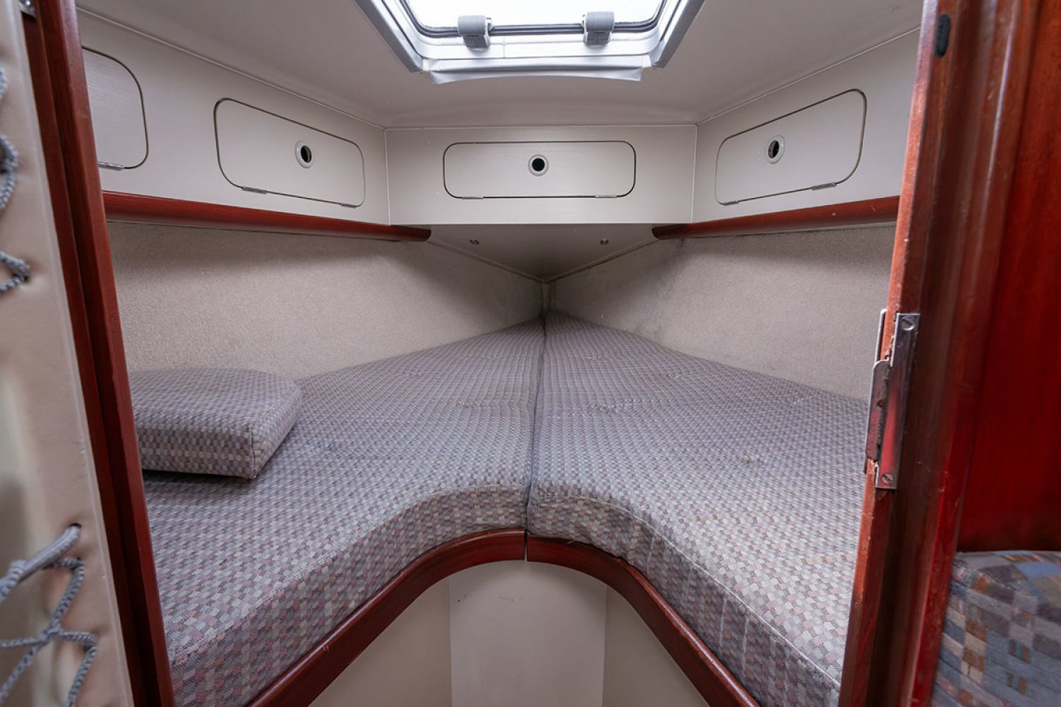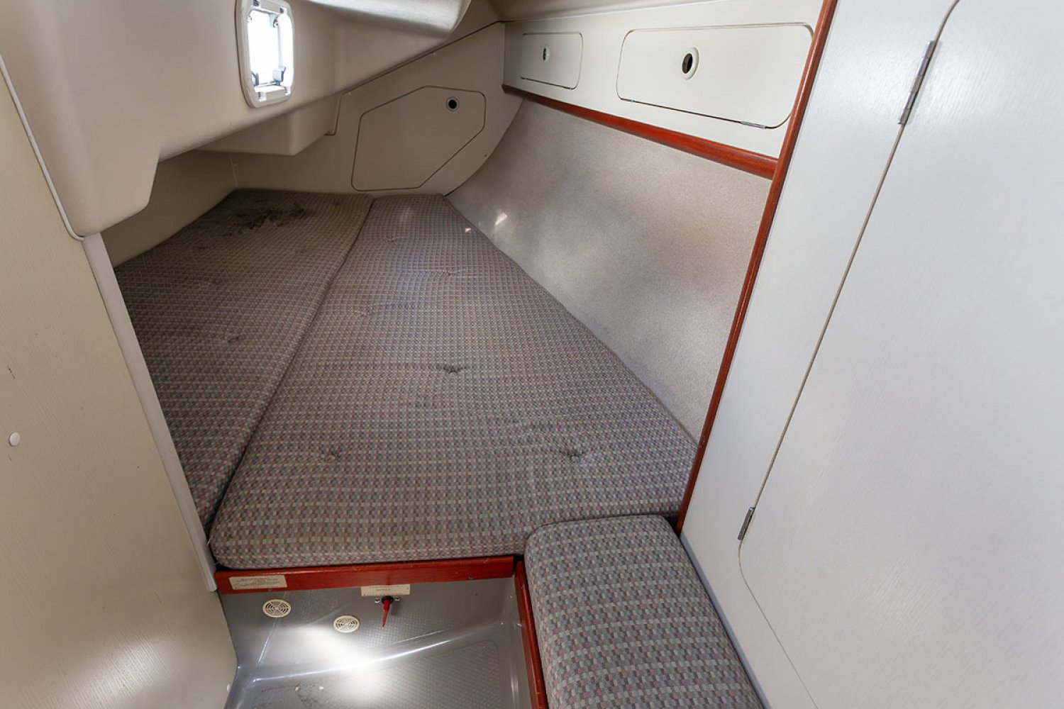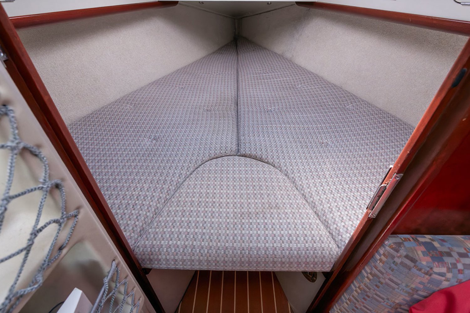 De salon is ruim, door gebruik van Mahonie hout oogt de salon knus en scheeps. Aan bakboord bevindt zich de keuken met kookstel, oven, koelkast en veel opbergruimte. Aan stuurboord is de kaartentafel, met in het achterschip de mooie en praktische natte cel. De salon heeft 2 langs banken die tevens dienst kunnen doen als extra kooien. Achter is een ruime tweepersoons hut. In het voorschip bevindt zich een tweede dubbele hut.