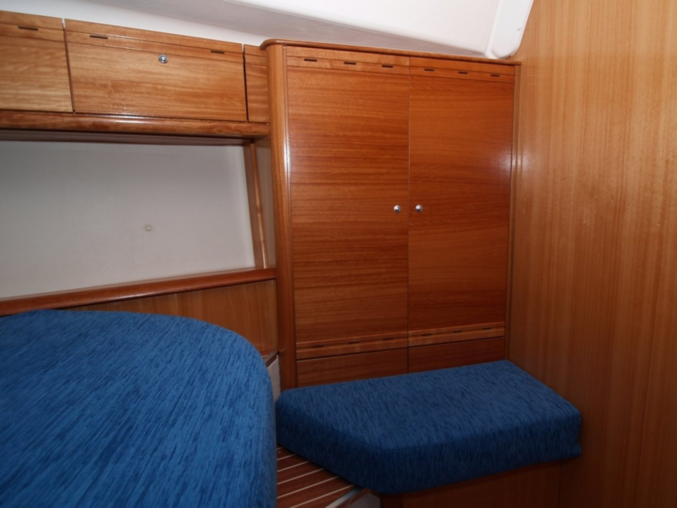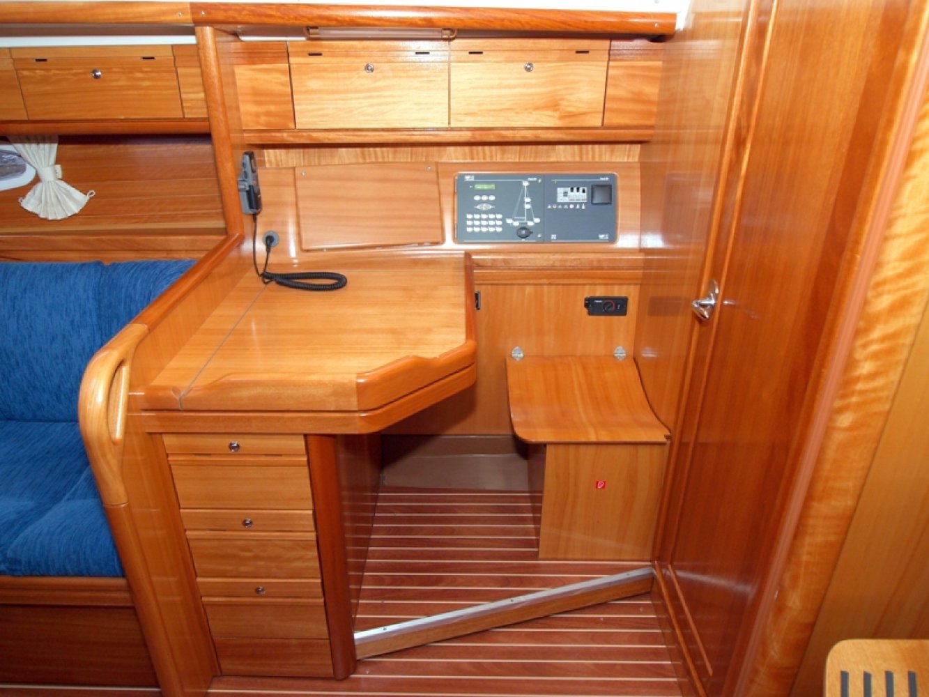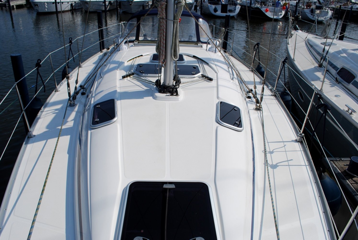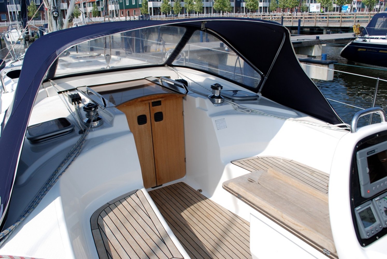 Deze Bavaria 38 in 2 hutten uitvoering is zeer volledig uitgevoerd en verkeert in nieuwstaat. De boot is van bouwjaar november 2007 en te water gelaten in 2008. Het hightech verticaal gelat grootzeil rolt u gemakkelijk in en uit de mast. Ook de genua staat uiteraard op een roller. De ruime kuip is voorzien van teakhout op de banken. Aan stuurboord treft u een diepe bakskist met daarin voldoende ruimte voor grote zaken. Aan bakboord en in de kuiptafel is eveneens bergruimte. Vanaf de stuurstand hebt u goed overzicht en controle over het jacht en zijn kompas en navigatie instrumenten onder handbereik. Het zwemplatform met geïntegreerde zwemtrap is elektrisch neerklapbaar. De gehele kuip is eenvoudig te voorzien van een kuiptent zodat er extra leefruimte ontstaat voor minder mooie dagen. Bij uw afwezigheid is de kuip met zijn teakhout en instrumenten eveneens goed beschermd. Het interieur is bijzonder ruim en praktisch van opzet met een uitstekende afwerking en heel veel kastruimte. De boot heeft een gezellige salon welke is voorzien van een rechte en royale U-vormige bank. De keuken in L-vorm is heerlijk ruim, modern van opzet en voorzien van alle gemakken waaronder een magnetron. Aan stuurboord is de kaartentafel geplaatst met schakelpaneel en marifoon. Tevens wordt hier de aanwezige Webasto verwarming bediend. Er zijn 4 vaste slaapplaatsen in de twee dubbele hutten. De voorhut is voorzien van een queensize bed. Aan stuurboord naast de kajuitingang is de natte cel met douche. De achterhut is voorzien van een groot bed. De motorruimte is zeer goed toegankelijk middels de omhoog scharnierende kajuittrap. Deze Bavaria 38-2 is volledig vaarklaar. Als u een ruim en comfortabel schip zoekt voor een aantrekkelijke prijs, dan is deze Bavaria zeker de moeite waard. We willen u dan ook van harte uitnodigen voor een bezichtiging in Volendam. Hebt u nog vragen, of wilt u een afspraak maken, neem dan zeker contact met ons op. Uw jachtmakelaar is Robert de Vries, tel. 06-50201336.