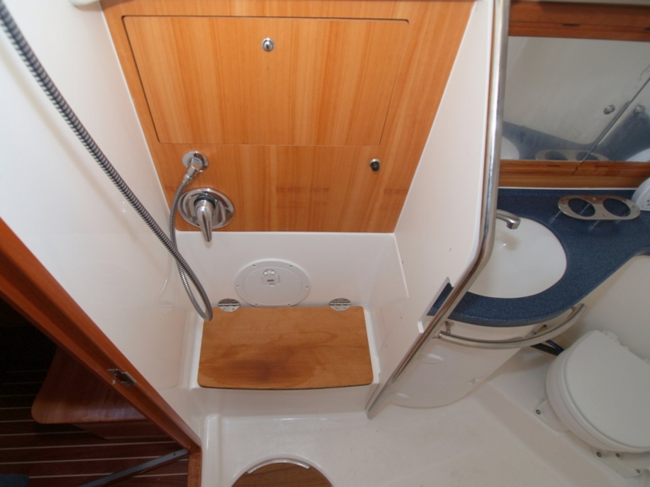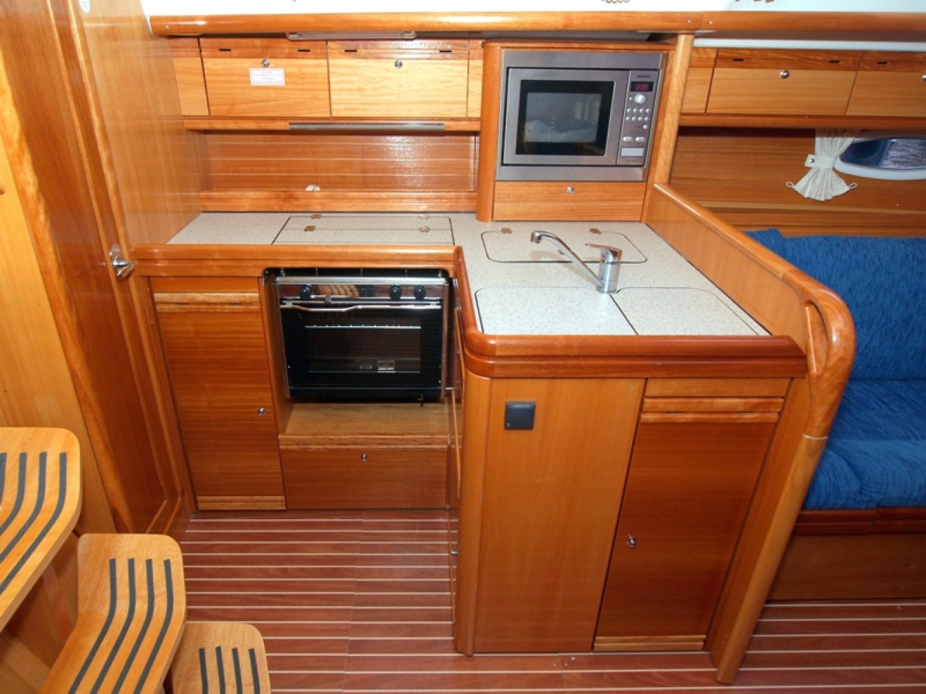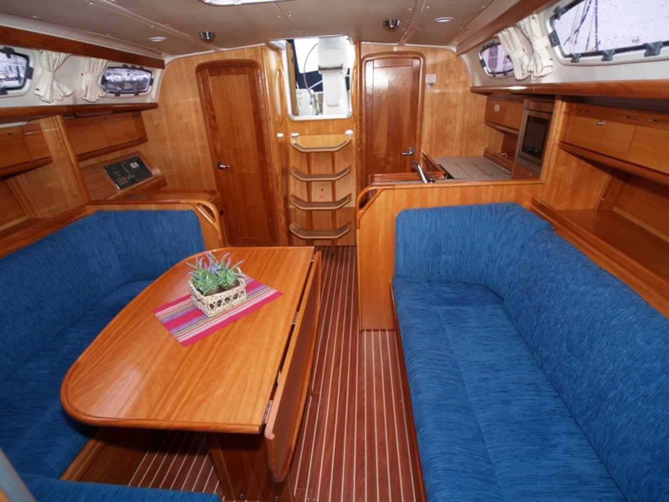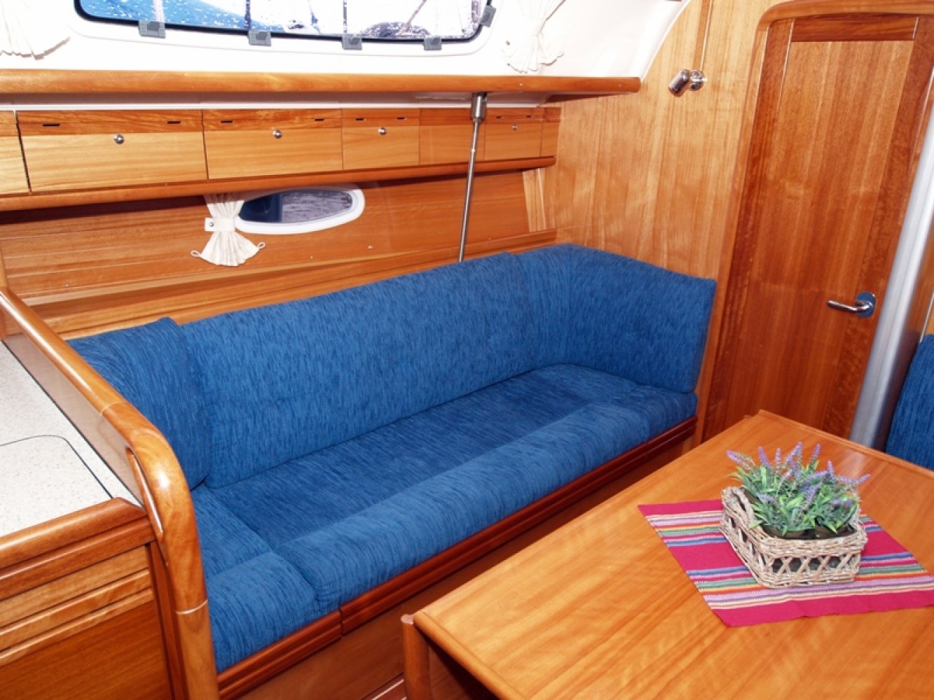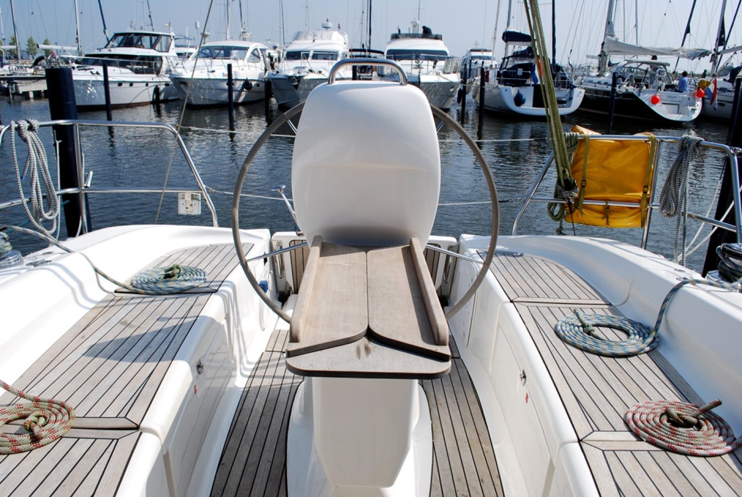 Deze Bavaria 38 in 2 hutten uitvoering is zeer volledig uitgevoerd en verkeert in nieuwstaat. De boot is van bouwjaar november 2007 en te water gelaten in 2008. Het hightech verticaal gelat grootzeil rolt u gemakkelijk in en uit de mast. Ook de genua staat uiteraard op een roller. De ruime kuip is voorzien van teakhout op de banken. Aan stuurboord treft u een diepe bakskist met daarin voldoende ruimte voor grote zaken. Aan bakboord en in de kuiptafel is eveneens bergruimte. Vanaf de stuurstand hebt u goed overzicht en controle over het jacht en zijn kompas en navigatie instrumenten onder handbereik. Het zwemplatform met geïntegreerde zwemtrap is elektrisch neerklapbaar. De gehele kuip is eenvoudig te voorzien van een kuiptent zodat er extra leefruimte ontstaat voor minder mooie dagen. Bij uw afwezigheid is de kuip met zijn teakhout en instrumenten eveneens goed beschermd. Het interieur is bijzonder ruim en praktisch van opzet met een uitstekende afwerking en heel veel kastruimte. De boot heeft een gezellige salon welke is voorzien van een rechte en royale U-vormige bank. De keuken in L-vorm is heerlijk ruim, modern van opzet en voorzien van alle gemakken waaronder een magnetron. Aan stuurboord is de kaartentafel geplaatst met schakelpaneel en marifoon. Tevens wordt hier de aanwezige Webasto verwarming bediend. Er zijn 4 vaste slaapplaatsen in de twee dubbele hutten. De voorhut is voorzien van een queensize bed. Aan stuurboord naast de kajuitingang is de natte cel met douche. De achterhut is voorzien van een groot bed. De motorruimte is zeer goed toegankelijk middels de omhoog scharnierende kajuittrap. Deze Bavaria 38-2 is volledig vaarklaar. Als u een ruim en comfortabel schip zoekt voor een aantrekkelijke prijs, dan is deze Bavaria zeker de moeite waard. We willen u dan ook van harte uitnodigen voor een bezichtiging in Volendam. Hebt u nog vragen, of wilt u een afspraak maken, neem dan zeker contact met ons op. Uw jachtmakelaar is Robert de Vries, tel. 06-50201336.