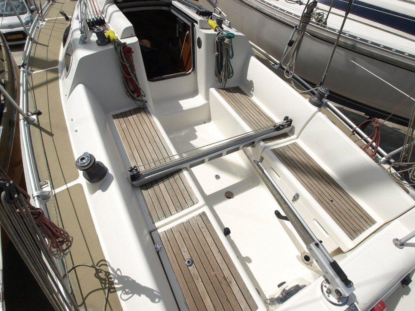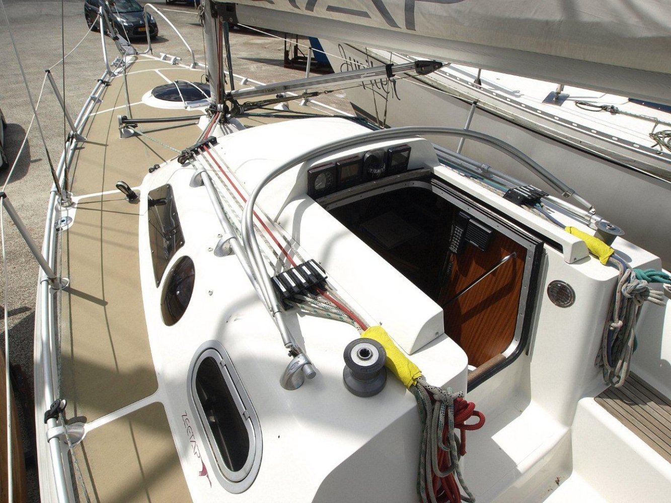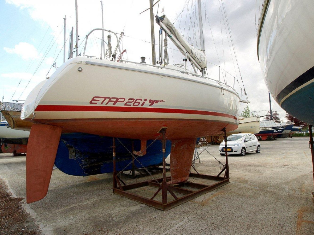 LAGE PRIJS VOOR DE SNELLE BESLISSER! Leuke en compleet uitgeruste Etap 26i voor een scherpe prijs! De Etap werf staat bekend om de constructief hoogwaardige bouw wijze met als meest opvallende speerpunt de vol geschuimde dubbele mal. Hiermee is het schip onzinkbaar en, wellicht nog interessanter in het dagelijks gebruik, de zeer beperkte kans op condensvorming. Dit schip in het bijzonder is helaas wat verwaarloost maar in de basis zeker nog een fantastisch schip. Voorzien van een boegspriet, verwarming, stuurautomaat en meer maakt deze 26 voeter een modern sportief en comfortabel schip. De kuip is ruim en biedt veel werk ruimte maar zeker ook ruimte om te ontspannen. De dekken zijn voorzien van de bekende anti slip matten. Alle lijnen lopen naar de kuip voor uw gemak en de Etap 26i is ook nog voorzien van een keerfok. Hiermee kunt u gemakkelijk en snel wenden. Binnen in het schip treft u een ruim en licht interieur aan. Aan bakboord een compact maar praktisch kombuis. Ook aan bakboord is de achterhut met dubbel bed. Aan stuurboord is de natte cel en kaarten tafel. De salon heeft aan beide zijden riante langsbanken. De salon tafel kunt u laten zakken waarmee u samen met het kussen in de voorpiek een tweede riant bed creëert. Dit schip heeft echt nog wel wat aandachtspunten zoals bijvoorbeeld de vloerdelen binnen in het schip die nieuw gelakt moeten worden. Maar in relatie tot de scherpe prijs zijn wij er van overtuigd dat u met relatief weinig moeite en investeren weer een fantastisch schip heeft waar u nog jaren lang plezier aan kunt beleven. We horen u dan ook graag om eens een afspraak te maken voor een bezichtiging.