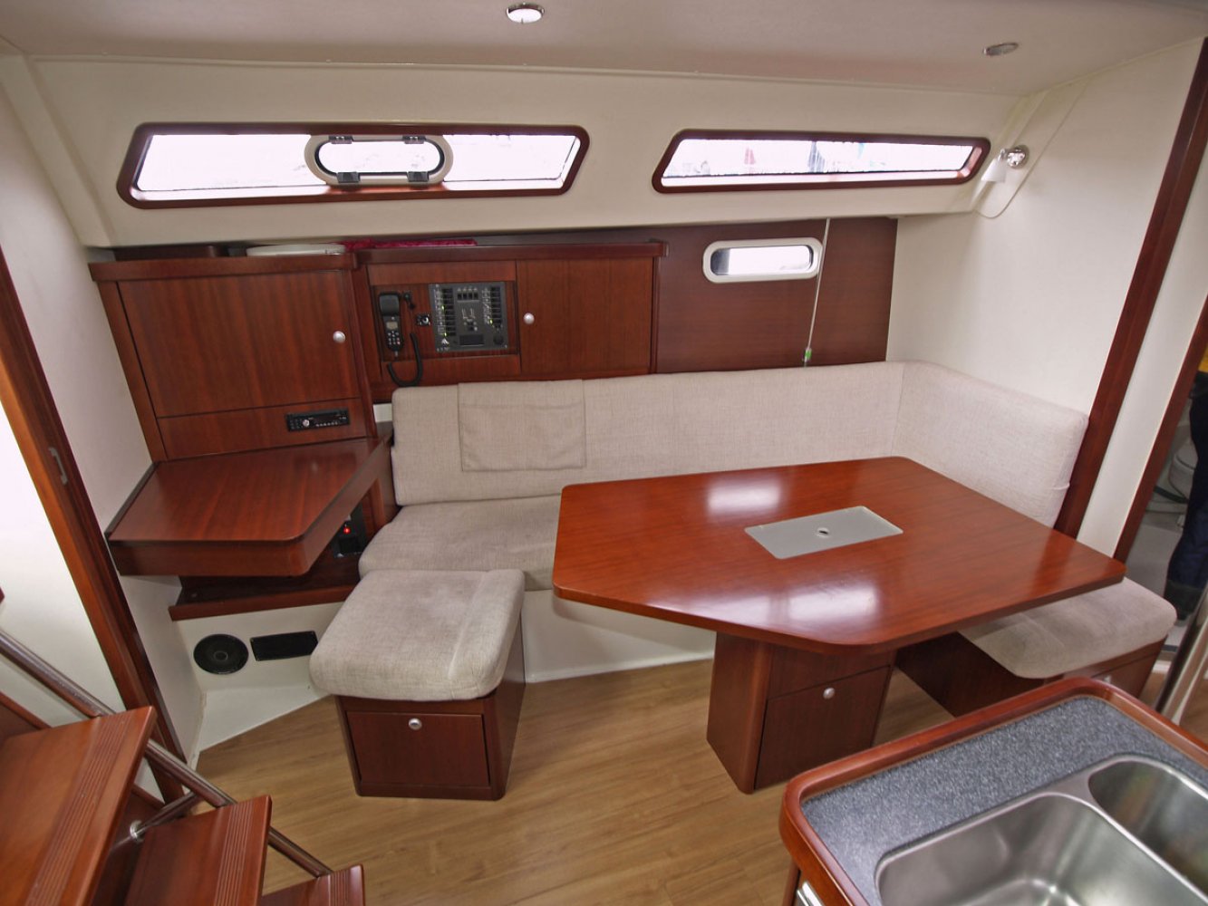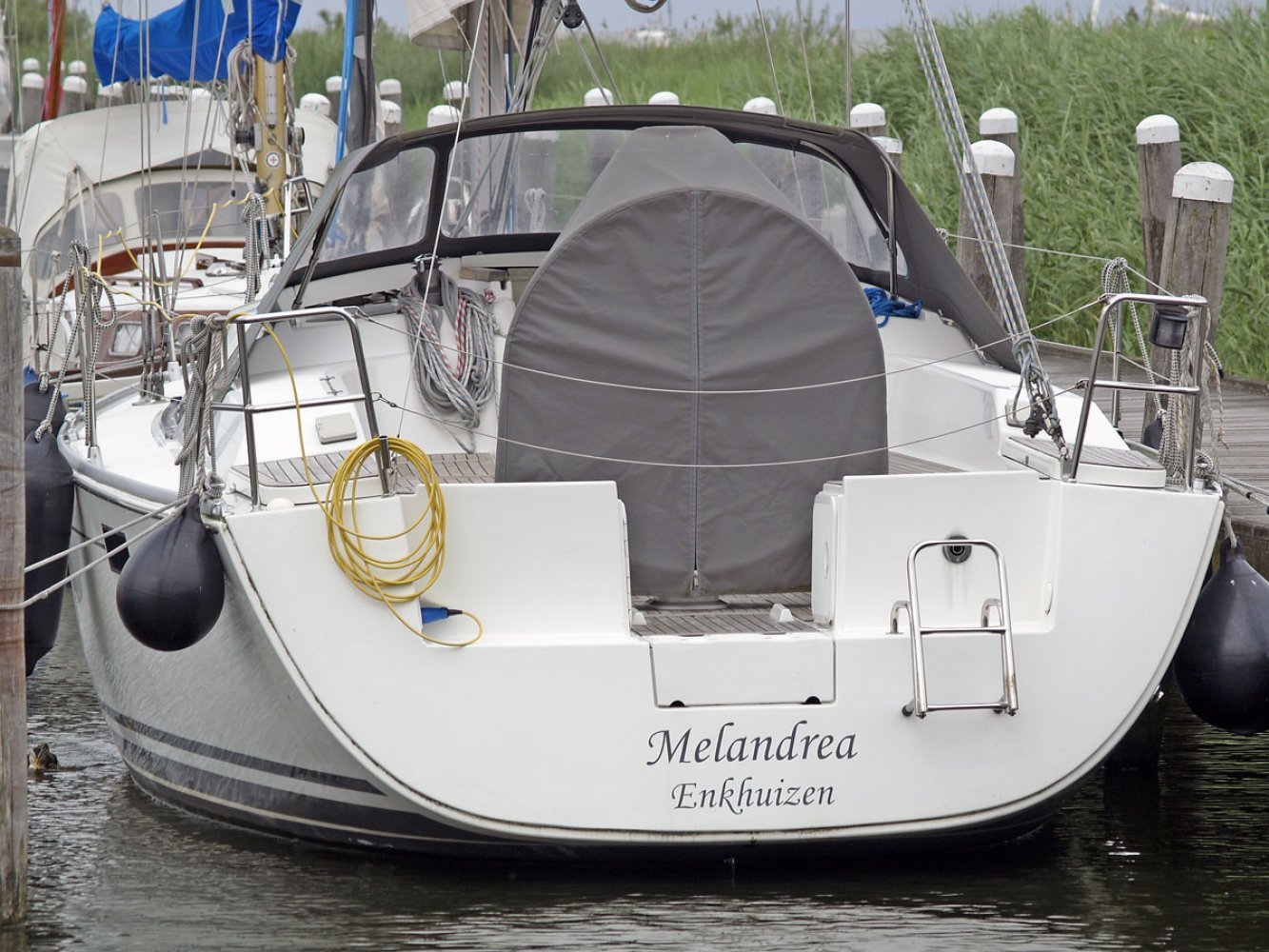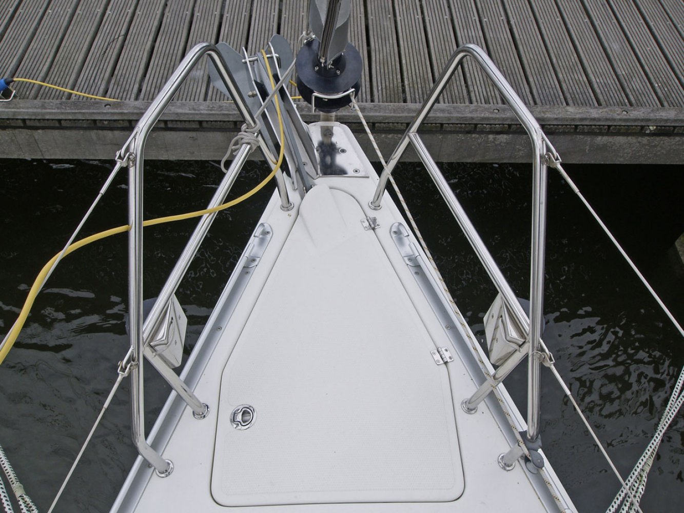 Wij bieden u nu deze bijzonder mooie Hanse 350 in de twee hutten uitvoering, van eerste eigenaar. Dit schip is goed onderhouden en heeft een aantal interessante opties zoals een autopilot en verwarming. De Hanse 350 is voor veel watersporters een bekende verschijning op het water en dat is niet voor niets. Dit jacht vaart goed, is erg ruim en netjes afgewerkt. Aan de buitenkant vallen de ruime kuip en doordachte dek-layout op. Alle lijnen lopen terug naar de kuip zodat u niet met slecht weer het voordek op hoeft en lekker achter de grote buiskap beschut kunt blijven zitten. Er is een keerfok zodat u opkruisend alleen aan het grote stuurwiel hoeft te draaien om overstag te gaan. Ook op de motor varend is de boot goed manoeuvreerbaar. De Hanse 350 kenmerkt zich door een ruim en lichte interieur afgewerkt met fraai mahoniehout. Extra comfort wordt gegeven door de aanwezige Eberspächer verwarming. Aan bakboord is de kaartentafel met het schakelpaneel en marifoon. Aan stuurboord is de praktische kombuis, uiteraard voorzien van warm water, gasfornuis met oven en een flinke bovenlader koelbox. In de salon is links een grote en comfortabele U-bank geplaatst met in het midden een tafel, groot genoeg voor de voltallige bemanning. In de voorpiek is een hut met tweepersoonsbed en veel kastruimte. In het achterschip is, aan stuurboord eveneens een hut met tweepersoonsbed. De natte cel met toilet (met vuilwatertank) en de douche zijn links voor in de boot geplaatst. In het achterschip aan bakboord is een royale ruimte die als berging dienst doet; ideaal voor het opbergen van grote zaken. De Hanse 350 is een ideale boot voor het gezin, maar eenvoudig te bedienen zodat er ook goed met een kleine bemanning mee kan worden gevaren. We willen u dan ook van harte uitnodigen om een afspraak te maken voor een bezichtiging op dit leuke jacht in Enkhuizen. Maakt u een afspraak voor een bezichtiging via [email protected]. Uw jachtmakelaar is Robert de Vries, +31(0)6 5020 1336.