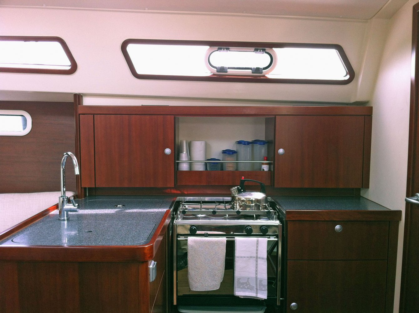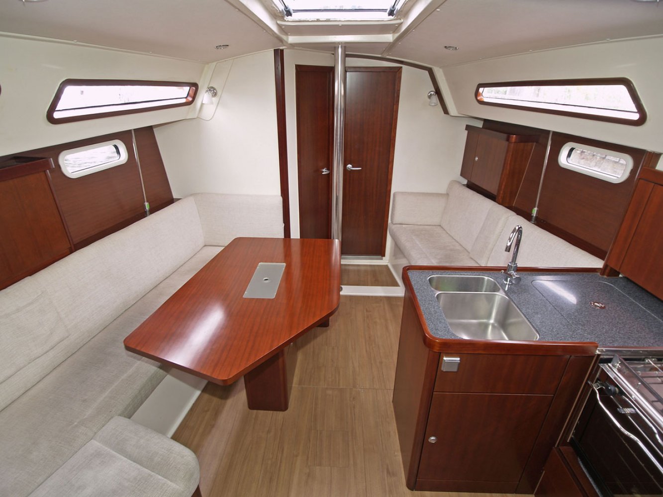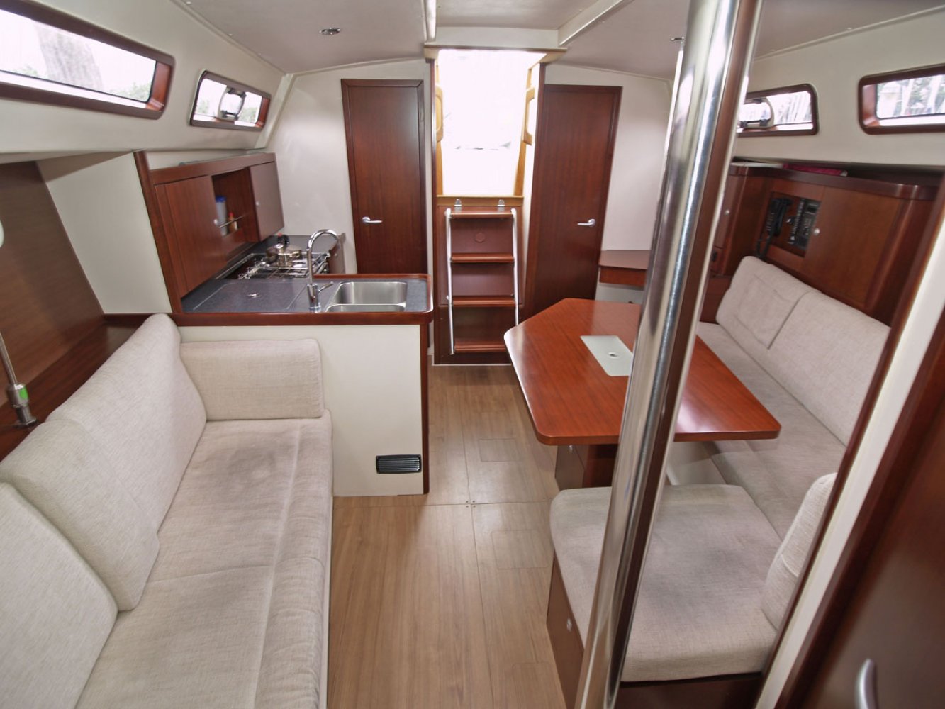 Wij bieden u nu deze bijzonder mooie Hanse 350 in de twee hutten uitvoering, van eerste eigenaar. Dit schip is goed onderhouden en heeft een aantal interessante opties zoals een autopilot en verwarming. De Hanse 350 is voor veel watersporters een bekende verschijning op het water en dat is niet voor niets. Dit jacht vaart goed, is erg ruim en netjes afgewerkt. Aan de buitenkant vallen de ruime kuip en doordachte dek-layout op. Alle lijnen lopen terug naar de kuip zodat u niet met slecht weer het voordek op hoeft en lekker achter de grote buiskap beschut kunt blijven zitten. Er is een keerfok zodat u opkruisend alleen aan het grote stuurwiel hoeft te draaien om overstag te gaan. Ook op de motor varend is de boot goed manoeuvreerbaar. De Hanse 350 kenmerkt zich door een ruim en lichte interieur afgewerkt met fraai mahoniehout. Extra comfort wordt gegeven door de aanwezige Eberspächer verwarming. Aan bakboord is de kaartentafel met het schakelpaneel en marifoon. Aan stuurboord is de praktische kombuis, uiteraard voorzien van warm water, gasfornuis met oven en een flinke bovenlader koelbox. In de salon is links een grote en comfortabele U-bank geplaatst met in het midden een tafel, groot genoeg voor de voltallige bemanning. In de voorpiek is een hut met tweepersoonsbed en veel kastruimte. In het achterschip is, aan stuurboord eveneens een hut met tweepersoonsbed. De natte cel met toilet (met vuilwatertank) en de douche zijn links voor in de boot geplaatst. In het achterschip aan bakboord is een royale ruimte die als berging dienst doet; ideaal voor het opbergen van grote zaken. De Hanse 350 is een ideale boot voor het gezin, maar eenvoudig te bedienen zodat er ook goed met een kleine bemanning mee kan worden gevaren. We willen u dan ook van harte uitnodigen om een afspraak te maken voor een bezichtiging op dit leuke jacht in Enkhuizen. Maakt u een afspraak voor een bezichtiging via [email protected]. Uw jachtmakelaar is Robert de Vries, +31(0)6 5020 1336.