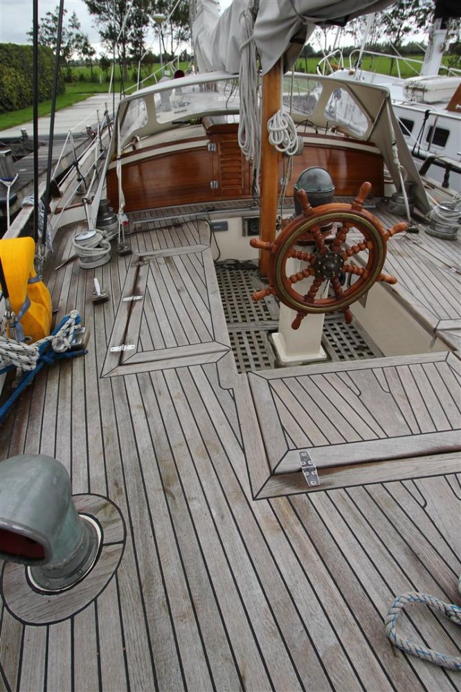 Al sinds 1870 bouwt de Cheoy Lee werf in Hong Kong haar schepen. Van grote commerciële schepen, tot kleinere jachten. In haar 140 jarig bestaan zijn er meer dan 5000 schepen gebouwd en geleverd. Deze Cheoy Lee Clipper 42 Ketch is een door Bill Luders ontworpen model waarvan er ongeveer 50 stuks gebouwd zijn. Als u van een schip met een mooi lijnenspel houdt, is dit voor u een lust voor het oog. Met haar ronde achtersteven, het breedste deel achter het midden van de romp en een spits toelopende boeg met een lange boegspriet is dit het toppunt van bevalligheid. Vele mede water-sporters zullen u waarderend begroeten. De huidige eigenaar heeft dit schip met liefde en passie weten te onderhouden en verbeteren tot haar huidige, goede staat. In 2009 is het gehele teakdek vervangen, alsmede de teak houten delen op de opbouw. 2008 was het jaar dat het onderwaterschip is behandeld; volledig kaalgehaald, gedroogd en opnieuw opgebouwd met 5 lagen epoxy en daarop nieuwe anti-fouling. In 2005 zijn alle zeilen, door Jan Miedema van Gaastra Sails, specifiek voor dit schip gesneden en vervaardigd. In 2010 is een nieuwe buiskap geplaatst en ga zo maar door. Het achterschip is ruim opgezet, hier kunt u vele rustige uren doorbrengen zonder last te hebben van de ruimte die uw mede passagiers innemen. Door het achterschip relatief hoog oploopt, heeft u ook altijd een mooi uitzicht alle kanten op. Bij het binnenstappen in het schip vallen direct de 2 kooien aan bak- en stuurboord op. Verder naar voren is aan stuurboord de kombuis en daartegenover de gezellige salon. Tussen salon en BB achterkooi is het toilet. De motor ligt diep weg richting kiel wat een mooi laag zwaartepunt geeft. Voorin de boeg is een redelijk ruime hut voorzien van kastruimte. Dit fraaie jacht heeft al lange reizen gemaakt en ligt te wachten op een eigenaar die eventueel ook deze ambitie heeft. Ook kortere trips zijn natuurlijk te doen, te denken valt dan aan de Wadden, of naar de Oostzee. Mocht u belangstelling hebben voor een fraaie klassieker met een schitterende lijn, neem dan contact met ons op. Uw jachtmakelaar is Enno Dijkstra. Tel.: +31 6 20154890 of +31 515423467 of mail [email protected]