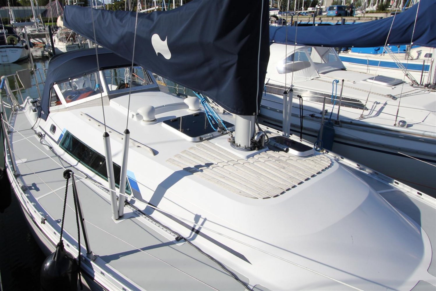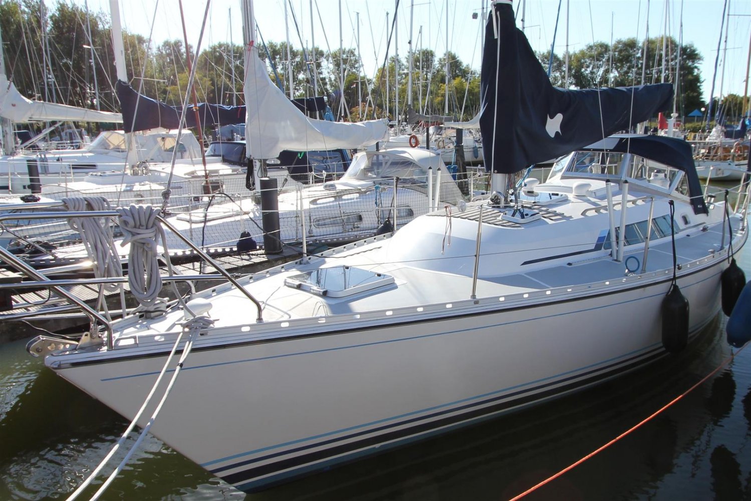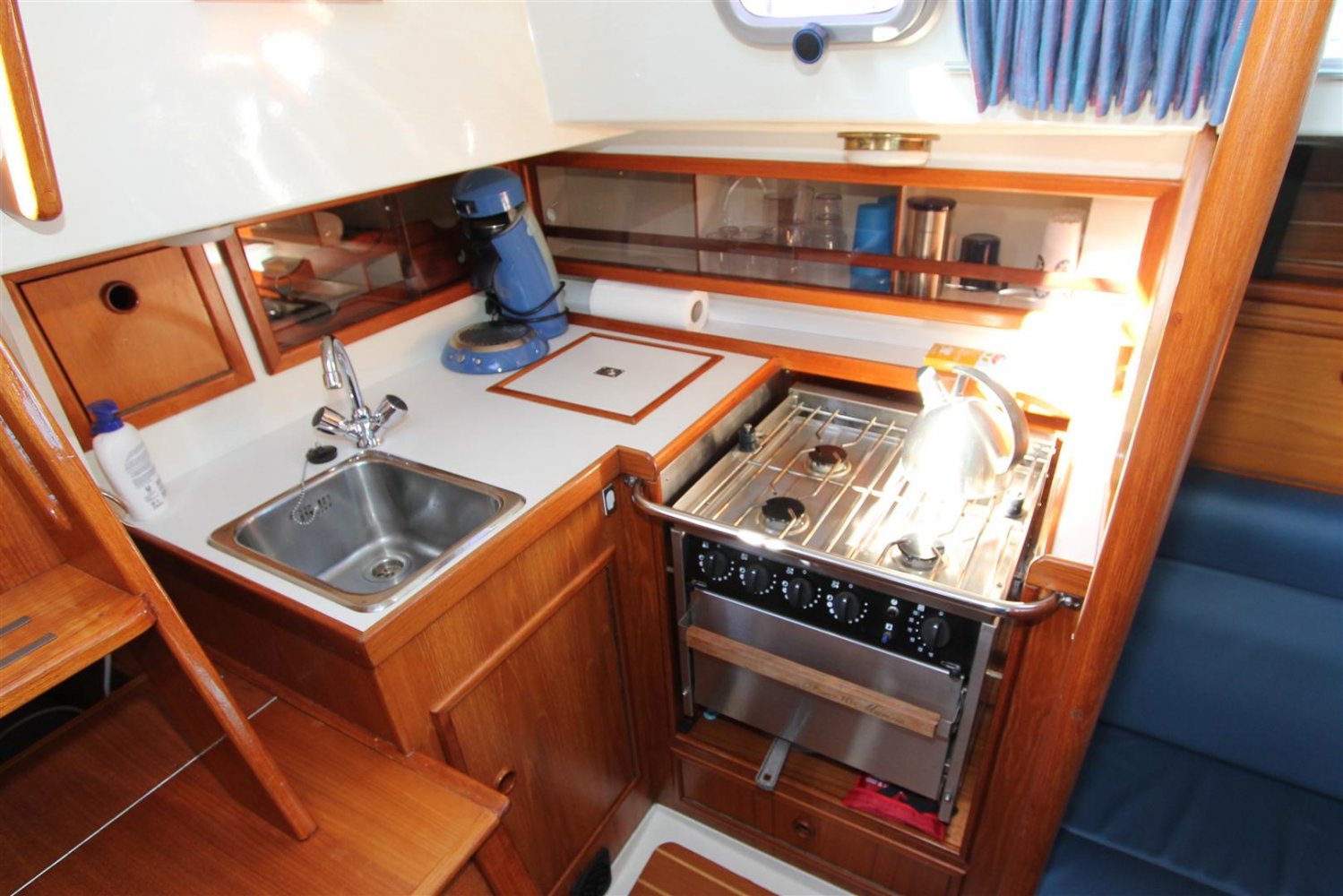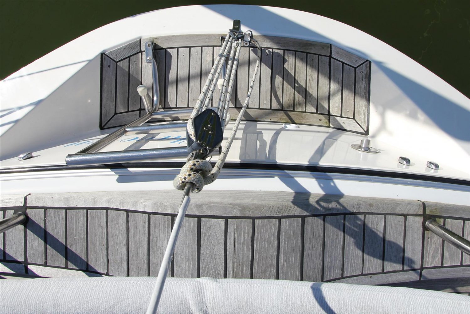 Keurig onderhouden Winner 950. In de eerste plaats ontwikkeld als een snel, zeewaardig zeiljacht, blijkt de Winner 9.50 ook zeer comfortabel. De deklayout is zodanig dat toerzeilers een gezellige tocht kunnen maken terwijl wedstrijdzeilers elkaar niet in de weg lopen. Binnen valt, naast de efficiënte indeling, het smaakvolle teakhouten interieur op. Bovendien maken de praktische kombuis met ruim werkoppervlak, de kooien in de dubbele slaaphutten voor en achter én de ruime navigatiehoek een langdurig verblijf op het water aantrekkelijk. Het 7/8- tuig zonder bakstagen geeft de toerzeiler de nodige trimmogelijkheden om comfortabel en snel te zeilen. Maar ook de fanatieke zeiler kan zich uitleven in wedstrijden. Met de fok van 13,4 m² vaart hij scherp aan de wind. Als de wind toeneemt kan de stagfok blijven staan en wordt het grootzeil van 28,1 m² gereefd of vlak getrimd. De normale kiel (diepgang 1,70 m) garandeert uitstekende zeileigenschappen. Belangstelling? Uw Jachtmakelaar is Enno Dijkstra. tel.: +31 6 2015 4890