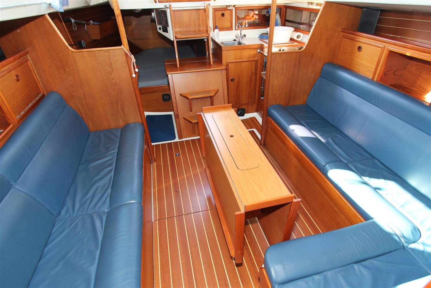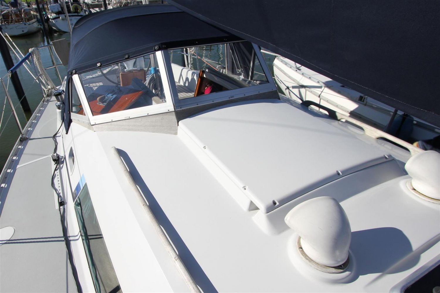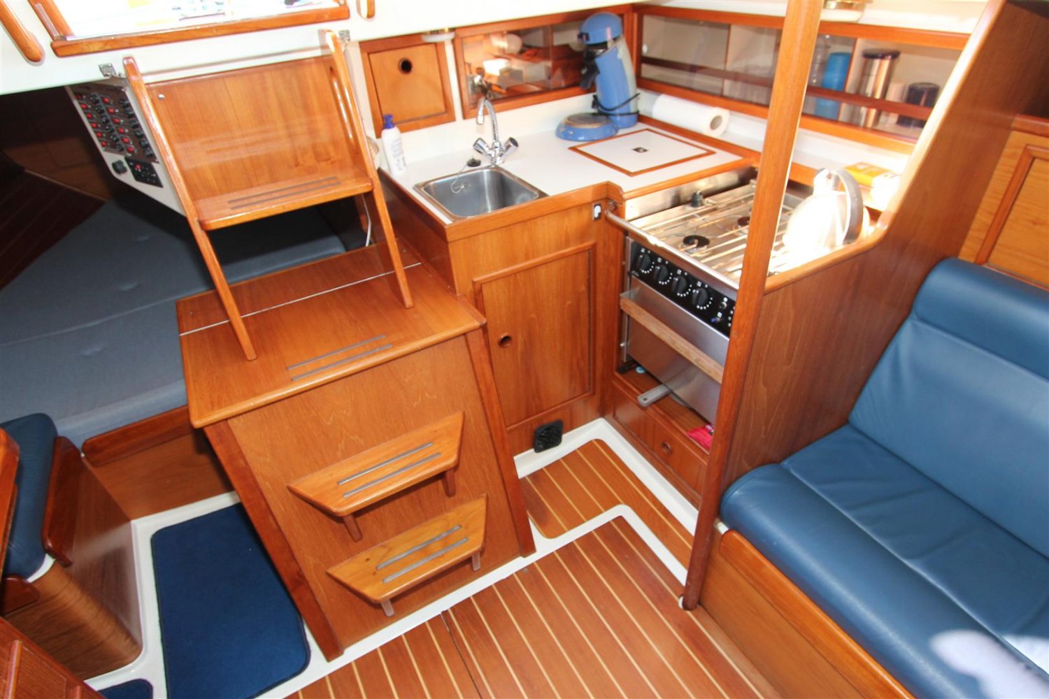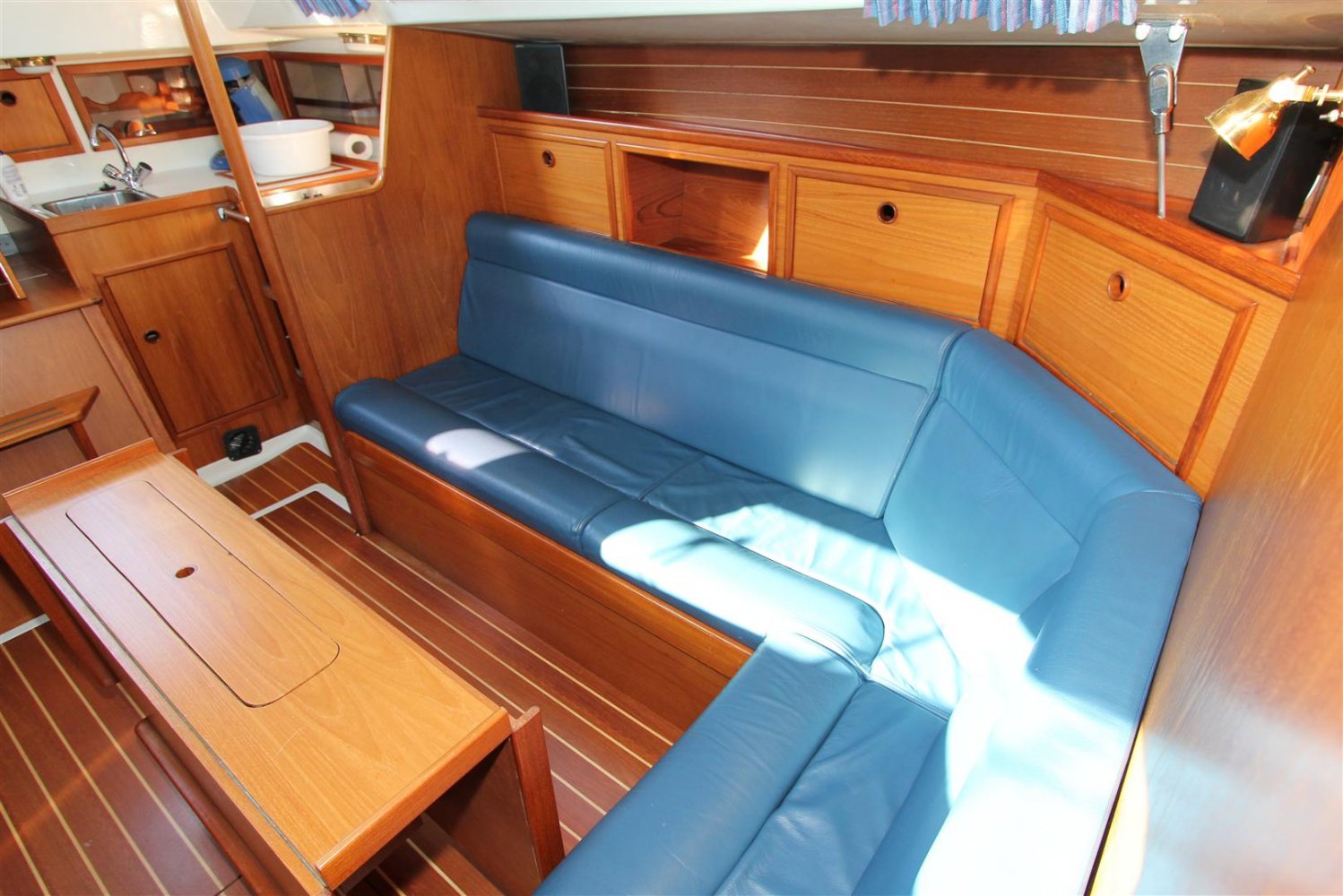 Keurig onderhouden Winner 950. In de eerste plaats ontwikkeld als een snel, zeewaardig zeiljacht, blijkt de Winner 9.50 ook zeer comfortabel. De deklayout is zodanig dat toerzeilers een gezellige tocht kunnen maken terwijl wedstrijdzeilers elkaar niet in de weg lopen. Binnen valt, naast de efficiënte indeling, het smaakvolle teakhouten interieur op. Bovendien maken de praktische kombuis met ruim werkoppervlak, de kooien in de dubbele slaaphutten voor en achter én de ruime navigatiehoek een langdurig verblijf op het water aantrekkelijk. Het 7/8- tuig zonder bakstagen geeft de toerzeiler de nodige trimmogelijkheden om comfortabel en snel te zeilen. Maar ook de fanatieke zeiler kan zich uitleven in wedstrijden. Met de fok van 13,4 m² vaart hij scherp aan de wind. Als de wind toeneemt kan de stagfok blijven staan en wordt het grootzeil van 28,1 m² gereefd of vlak getrimd. De normale kiel (diepgang 1,70 m) garandeert uitstekende zeileigenschappen. Belangstelling? Uw Jachtmakelaar is Enno Dijkstra. tel.: +31 6 2015 4890