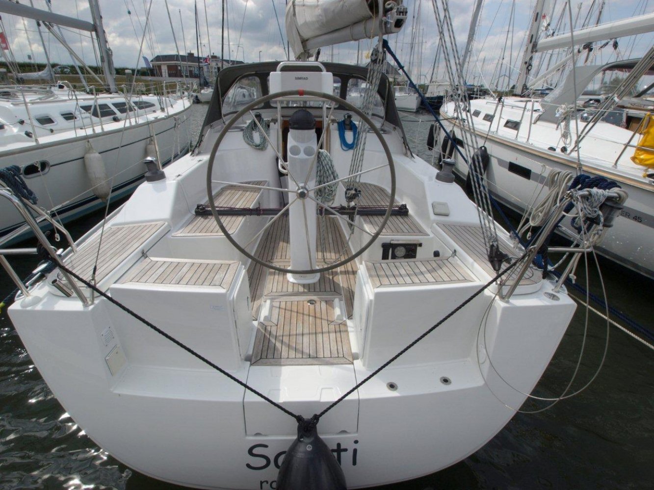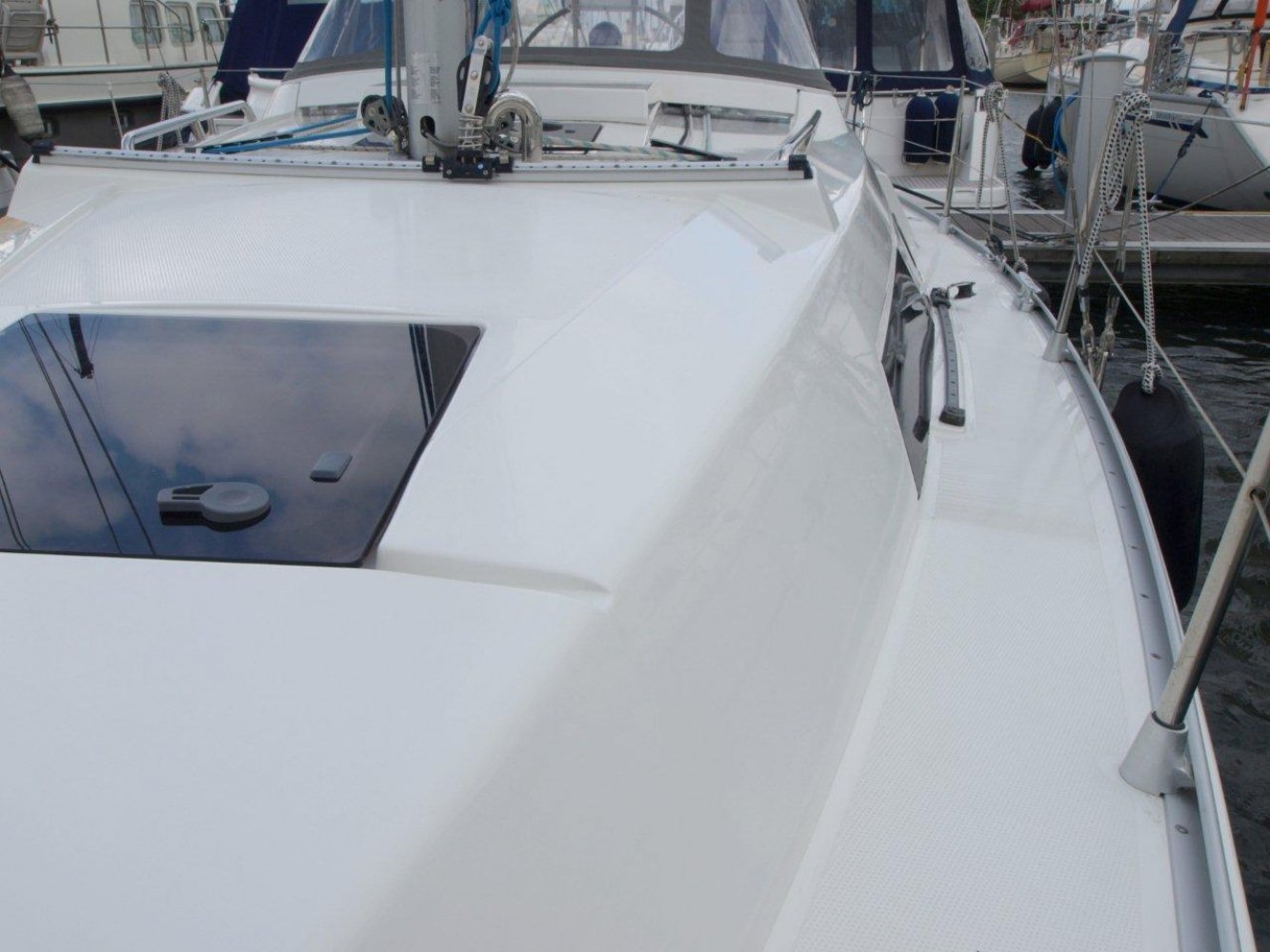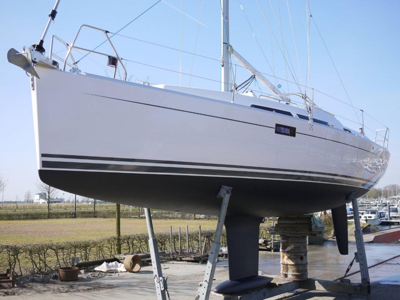 De Hanse 320 is een erg leuk schip met een moderne en strakke afwerking gecombineerd met bovengemiddelde zeileigenschappen. Dit exemplaar is in staat van nieuw, erg compleet en ook nog zeer aantrekkelijk geprijsd. De ruime indeling van de kuip, de ruimte aan dek en de zelfkerende fok maken het echt een schip van deze tijd. De uitgebreide zeilgarderobe met de extra 40ST lieren zorgen ervoor dat de prestaties onder zeil erg goed te noemen zijn. Dit schip is onder andere voorzien doorgelat grootzeil, 2x keerfok, genua en een volledig zwarte gennaker. De 2-blad klapschroef zorgt voor wat minder weerstand. Op de stuurstand is een kleuren GPS plotter gemonteerd, evenals de dieptemeter. De teakhouten kuipvloer geeft het geheel een extra luxe uitstraling. Van binnen is het schip minstens zo modern en ruim. Er zijn 2 dubbele hutten, een ruime natte cel, een fraaie keuken en een lichte en ruime salon. Het ontbreekt u eigenlijk aan niets. Bekijkt u de beelden maar eens. Deze Hanse wordt u scherp aangeboden door haar eerste eigenaar. Wij kunnen u een bezichtiging (ligplaats aan onze verkoopsteiger in Willemstad) alleen maar aanraden. Maakt u wel aan afspraak vooraf?
