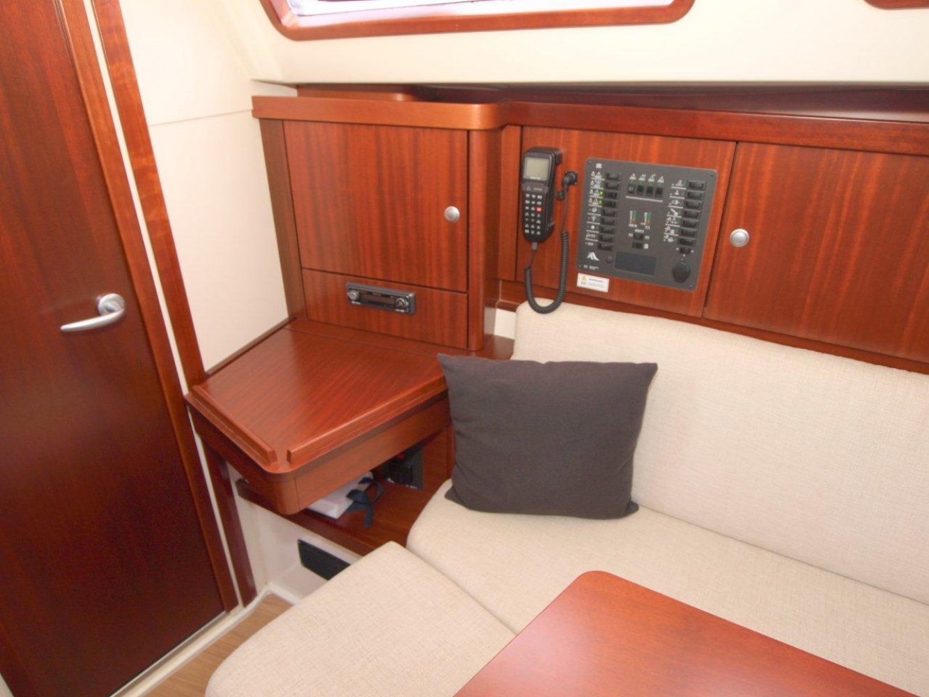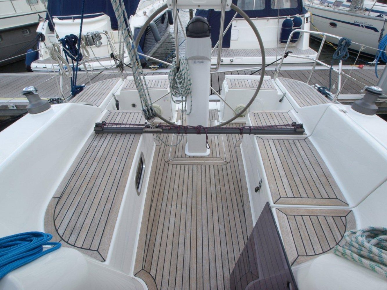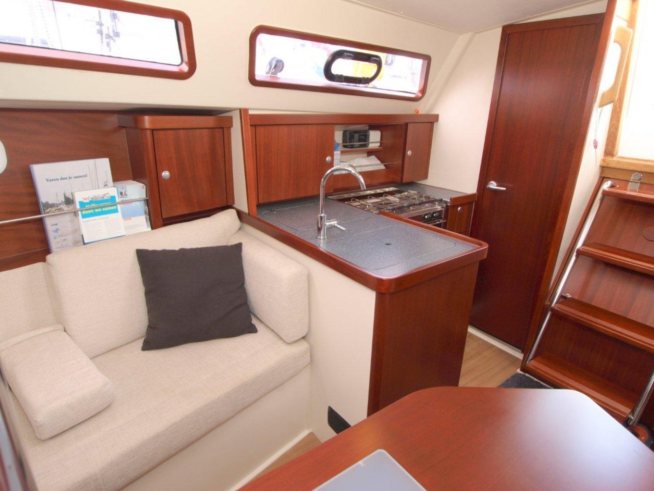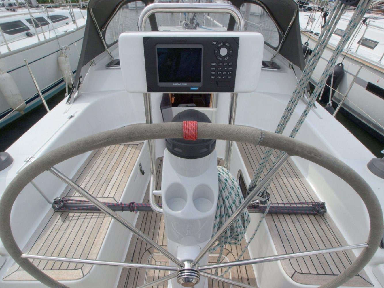 De Hanse 320 is een erg leuk schip met een moderne en strakke afwerking gecombineerd met bovengemiddelde zeileigenschappen. Dit exemplaar is in staat van nieuw, erg compleet en ook nog zeer aantrekkelijk geprijsd. De ruime indeling van de kuip, de ruimte aan dek en de zelfkerende fok maken het echt een schip van deze tijd. De uitgebreide zeilgarderobe met de extra 40ST lieren zorgen ervoor dat de prestaties onder zeil erg goed te noemen zijn. Dit schip is onder andere voorzien doorgelat grootzeil, 2x keerfok, genua en een volledig zwarte gennaker. De 2-blad klapschroef zorgt voor wat minder weerstand. Op de stuurstand is een kleuren GPS plotter gemonteerd, evenals de dieptemeter. De teakhouten kuipvloer geeft het geheel een extra luxe uitstraling. Van binnen is het schip minstens zo modern en ruim. Er zijn 2 dubbele hutten, een ruime natte cel, een fraaie keuken en een lichte en ruime salon. Het ontbreekt u eigenlijk aan niets. Bekijkt u de beelden maar eens. Deze Hanse wordt u scherp aangeboden door haar eerste eigenaar. Wij kunnen u een bezichtiging (ligplaats aan onze verkoopsteiger in Willemstad) alleen maar aanraden. Maakt u wel aan afspraak vooraf?
