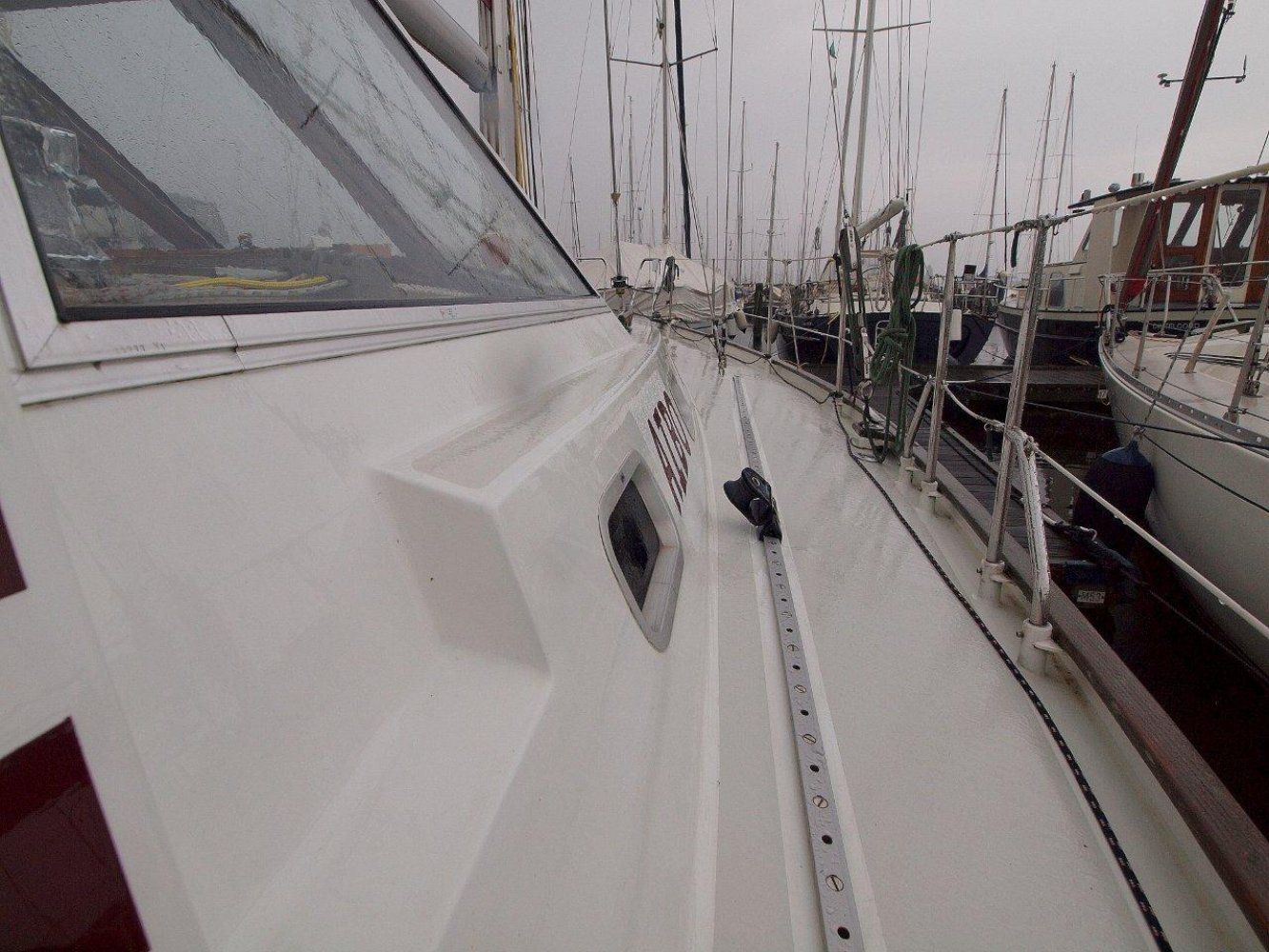 Fraaie aluminium van de Stadt 40 in goede en mooie staat van onderhoud. Dit schip is uitermate geschikt voor lange snelle tochten voor de verwende wereldreiziger. Maar gewoon een middagje lekker uitwaaien is uiteraard ook geen probleem op dit robuuste schip. De aluminium vaste buiskap maakt zeilen ook op minder fraaie dagen een comfortabele aangelegenheid. Deze biedt uitstekende bescherming tegen slecht weer en buiswater. De rolgenua en het rolgrootzeil maken dit schip gemakkelijk hanteerbaar. U hoeft de kuip niet meer uit om alles te kunnen bedienen wat de veiligheid ten goede komt. Binnen in het schip vallen de hoogwaardige teakhouten afwerking en de ruime indeling direct op. Aan stuurboord is de kaartentafel vanwaar de boordsystemen te bedienen zijn. Hier tegenover is de praktische kombuis. Deze is voorzien van warm en koud stromend water, een Force 10 vierpits fornuis met oven, een vernieuwde koelkast met nieuwe compressor en bijzonder goede isolatie. Midscheeps is de ruime en gezellige salon. Aan beiden zijden treft u comfortabele banken aan met een flinke tafel in het midden. Het interieur doet erg warm en nautisch aan. In het achterschip is aan bakboord de achterhut met groot dubbel bed, opbergruimte en een zitbankje. Aan stuurboord is de toiletruimte met wastafel en veel kastruimte. Het maken van een douche is erg goed mogelijk. Het toilet is voorzien van een vuilwatertank. In de voorpiek is een tweede hut met ook hier een dubbel bed en veel kast en opbergruimte. Dit schip is goed onderhouden en de huidige eigenaar heeft recentelijk veel zaken vernieuwd, zoals de verstaging (inclusief kotterstag en bakstagen), de rolreef installatie (Profurl), drinkwaterleidingen, toilet met vuilwatertank, alle afsluiters, de hoodbekabeling van accu naar paneel en motor, etc. Dit schip is vaarklaar voor nieuwe avonturen met een nieuwe eigenaar. Heeft u vragen of wilt u aan afspraak maken, horen wij uw graag. Uw jachtmakelaar is White Whale Willemstad, tel. 0168-820 208 of mail naar [email protected].