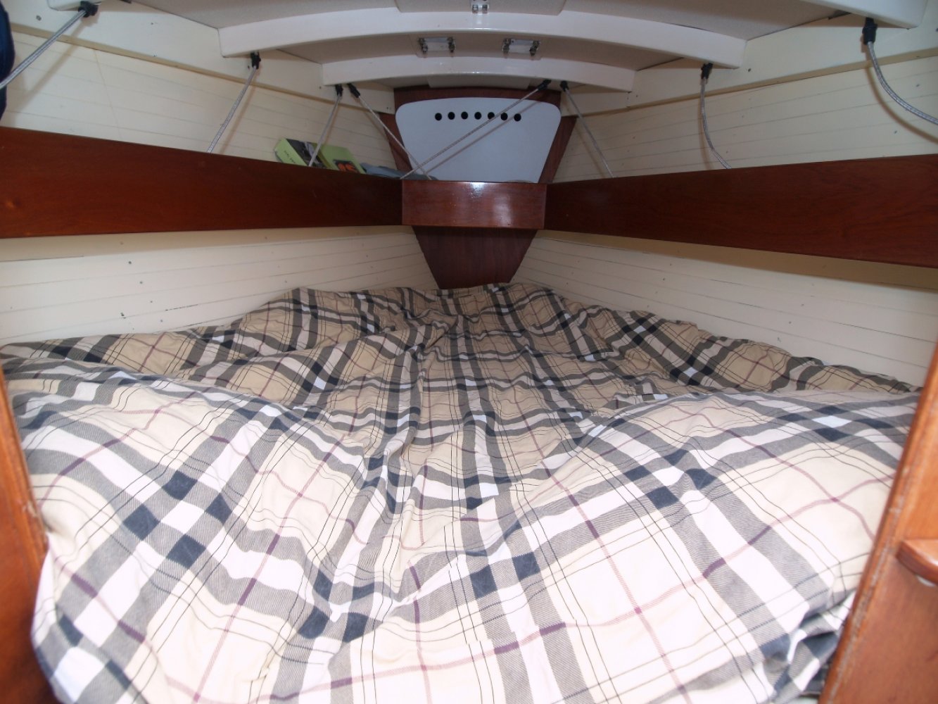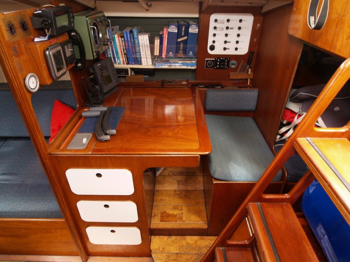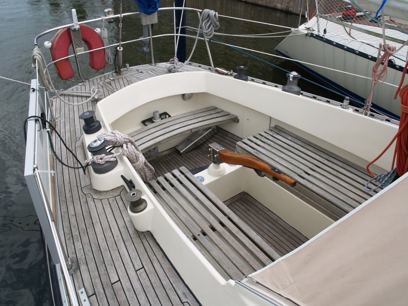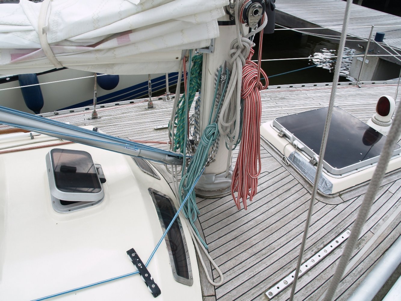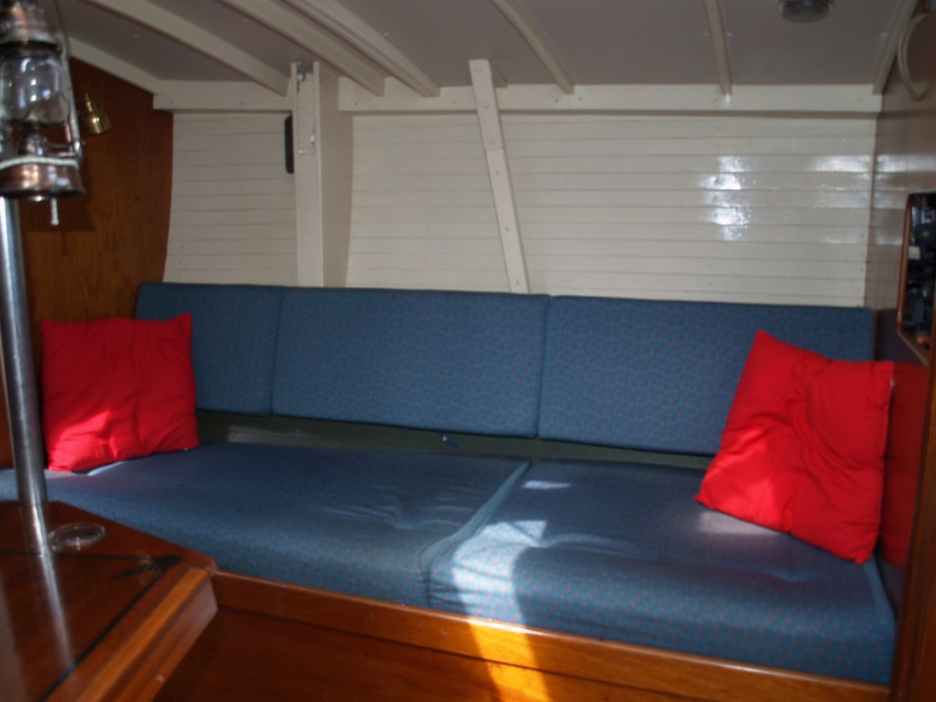 De Koopmans Polka Mazurka 36 die wij u aanbieden is gebouwd in 1974 bij Kesteloo in Terneuzen. Het is een snel en zeewaardig jacht en biedt gemakkelijk ruimte aan 4 tot 6 opvarenden. Deze charmante boot met prachtige lijn en opvallende ontwerp details is op veel essentiele punten verbeterd. Zo is in 2008 de complete tuigage, getekend door D. Koopmans jr. vervangen. Zeer smaakvol is de creme kleurstelling van opbouw en tuigage. De kuip is diep en biedt goede beschutting achter de nieuwe (2011) buiskap. Opvallend is dat de helmstok in het midden is geplaatst zodat de roerganger gemakkelijk alle lijnen en motorbediening onder handbereik heeft. Ook de instrumenten zijn eenvoudig afleesbaar. Zo kan de boot eenvoudig solo gevaren worden. Het dek is erg ruim en het teak is nog in goede staat al behoeft het voordek wat onderhoud. Het interieur heeft een open en ruim karakter omdat het vooronder niet is afgesloten met een schot en deur. Het timmerwerk is van fraai donker mahonie met lichte deuren in kast en bergruimte. In de boeg is een tweepersoons kooi, en in het achterschip zijn twee loodskooien. In de salon zijn op de banken nog twee slaapplaatsen. Er is een bescheiden maar complete kombuis aan bakboord, en aan stuurboord een navigatiehoek met de nodige apparatuur. De betrouwbare Vetus motor is in een kist onder de trap gebouwd. Deze Koopmans Polka Mazurka 36 is een jacht wat zeer geschikt is voor tochten op open zee als ook een clubwedstrijd. Na alle verbeteringen die de laatste paar jaren zijn aangebracht is zij geheel vaarklaar. Bent u geinteresseerd? Maakt u een afspraak voor een bezichtiging in Volendam. Uw jachtmakelaar is Robert de Vries +31(0)6 50201336