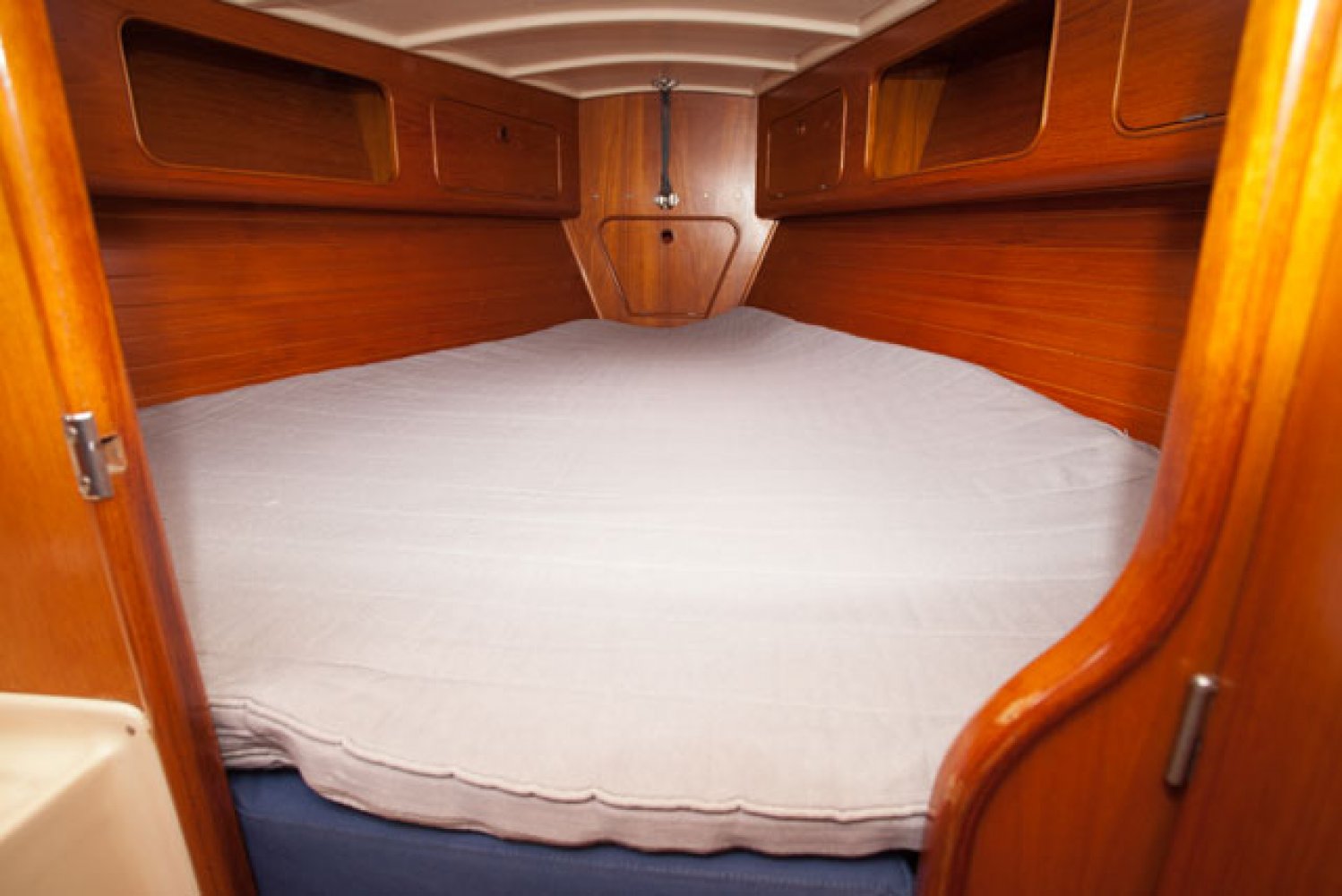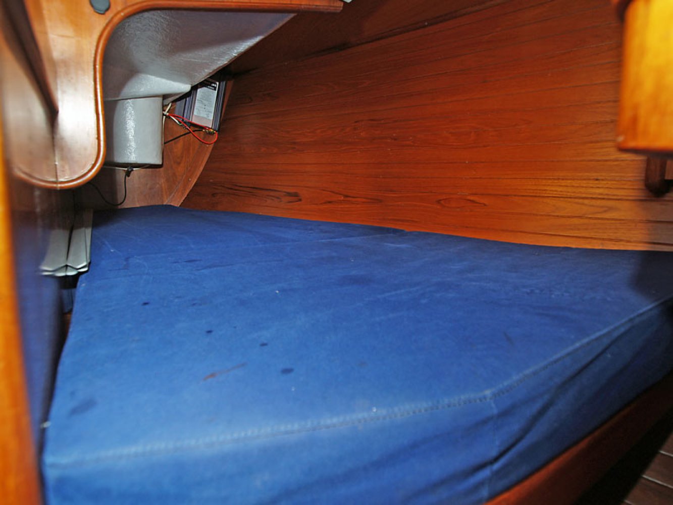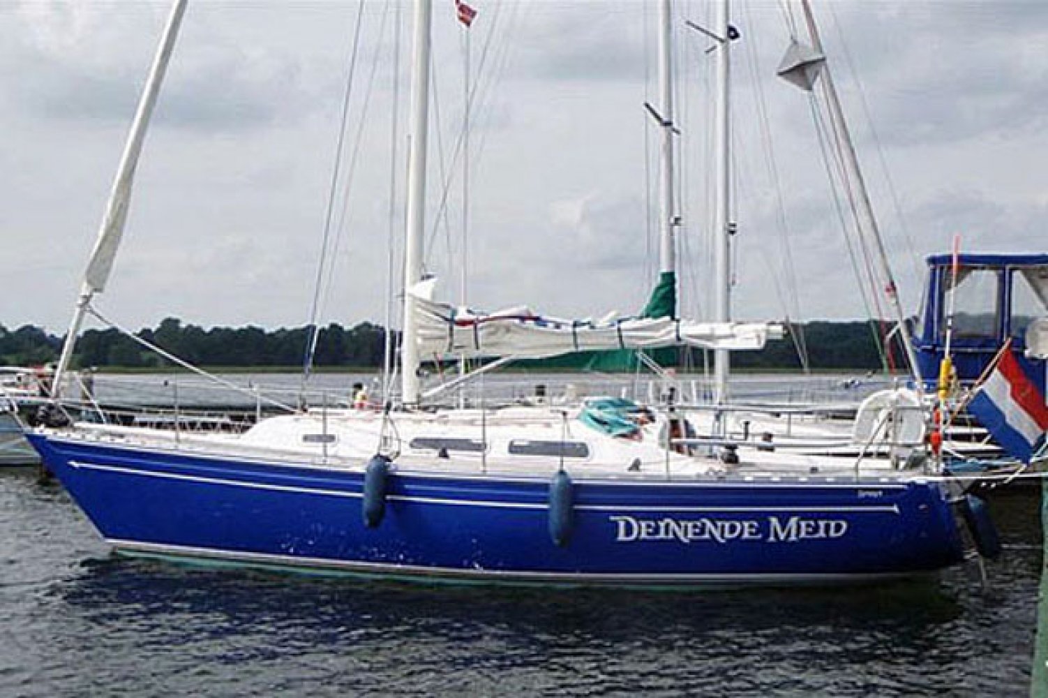 Deze op één na laatste Spirit 32 is niet zomaar een 32 voeter. De eerste eigenaar, werfeigenaar Willem Tijssen, heeft dit schip laten bouwen met de gedachte om er veel verre reizen mee te maken. Het casco is in 1990 geleverd en gedurende twee jaar is hij op de eigen werf vakkundig met teakhout afgetimmerd. Ook het dek is van een dikke laag teakhout voorzien. De Proctor mast heeft twee paar zalingen, en extra dikke dyform verstaging. Deze mast is samen met de giek en spinnakerboom onlangs opnieuw van een dubbele laag poedercoat voorzien. Er is een uitgebreide zeilgarderobe met o.a. twee spinnakers ( 88 m2 en 72 m2) in een dikke uitvoering voor zeer ruige omstandigheden. Alle daarbij benodigde lijnen zijn van Dyneema. Een grote genua en een genua met schuimstroken zodat hij bij het gedeeltelijk wegrollen profiel blijft houden. Deze is geschikt om meerdere dagen achter elkaar op zee te varen. In 2008 heeft de boot een refit ondergaan. Daarbij zijn onder meer nieuwe self tailing Harken lieren geplaatst. De roerlagers zijn vervangen door moderne JP3 lagers. Omdat verf na 17 jaar begint te verkalken is het schip in 2008 geheel gestript en opnieuw door een vakschilder in de tweecomponenten verf (van De IJssel) gezet. In 2007 is alle navigatieapparatuur vervangen door Raymarine ST60 apparatuur en een C70 kaartplotter. Op verschillende tochten is de boot zowel snel als zeewaardig gebleken. Met deze boot koopt u een oerdegelijke dikke stevige kwaliteit polyester, zoals dat in 1990 nog werd toegepast. Dat, samen met een tijdloos Koos de Ridder ontwerp, met moderne apparatuur, zorgt ervoor dat u de komende jaren gevrijwaard bent van groot onderhoud. Hebt u belangstelling, maak dan een afspraak voor een bezichtiging in Den Oever via [email protected]. Uw jachtmakelaar is Robert de Vries, +31(0)6 5020 1336.
