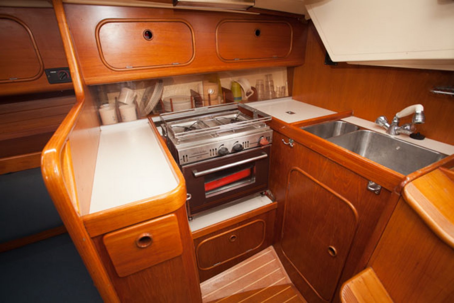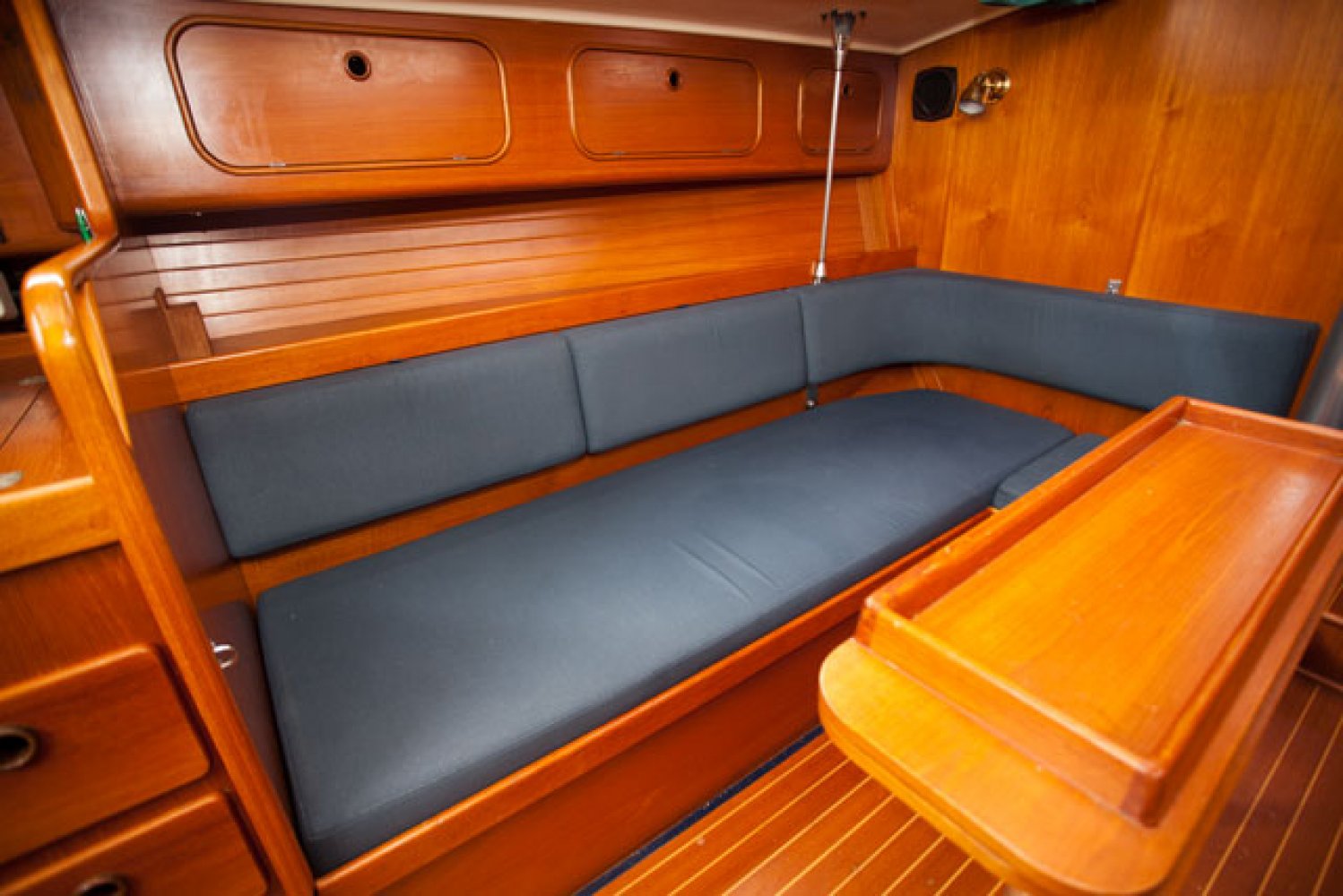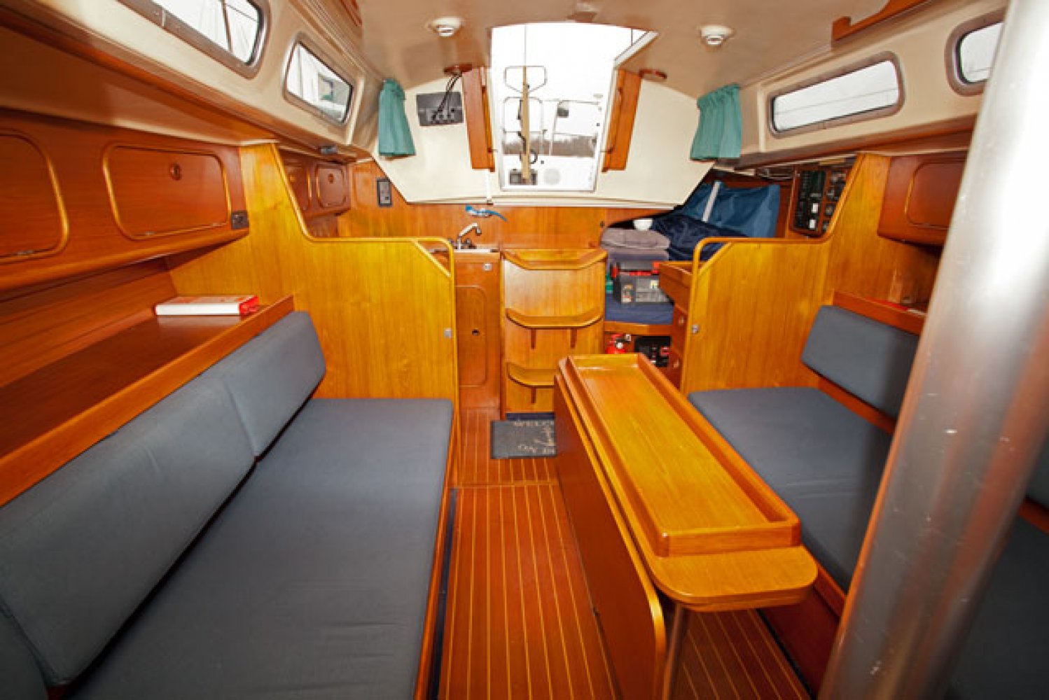 Deze op één na laatste Spirit 32 is niet zomaar een 32 voeter. De eerste eigenaar, werfeigenaar Willem Tijssen, heeft dit schip laten bouwen met de gedachte om er veel verre reizen mee te maken. Het casco is in 1990 geleverd en gedurende twee jaar is hij op de eigen werf vakkundig met teakhout afgetimmerd. Ook het dek is van een dikke laag teakhout voorzien. De Proctor mast heeft twee paar zalingen, en extra dikke dyform verstaging. Deze mast is samen met de giek en spinnakerboom onlangs opnieuw van een dubbele laag poedercoat voorzien. Er is een uitgebreide zeilgarderobe met o.a. twee spinnakers ( 88 m2 en 72 m2) in een dikke uitvoering voor zeer ruige omstandigheden. Alle daarbij benodigde lijnen zijn van Dyneema. Een grote genua en een genua met schuimstroken zodat hij bij het gedeeltelijk wegrollen profiel blijft houden. Deze is geschikt om meerdere dagen achter elkaar op zee te varen. In 2008 heeft de boot een refit ondergaan. Daarbij zijn onder meer nieuwe self tailing Harken lieren geplaatst. De roerlagers zijn vervangen door moderne JP3 lagers. Omdat verf na 17 jaar begint te verkalken is het schip in 2008 geheel gestript en opnieuw door een vakschilder in de tweecomponenten verf (van De IJssel) gezet. In 2007 is alle navigatieapparatuur vervangen door Raymarine ST60 apparatuur en een C70 kaartplotter. Op verschillende tochten is de boot zowel snel als zeewaardig gebleken. Met deze boot koopt u een oerdegelijke dikke stevige kwaliteit polyester, zoals dat in 1990 nog werd toegepast. Dat, samen met een tijdloos Koos de Ridder ontwerp, met moderne apparatuur, zorgt ervoor dat u de komende jaren gevrijwaard bent van groot onderhoud. Hebt u belangstelling, maak dan een afspraak voor een bezichtiging in Den Oever via [email protected]. Uw jachtmakelaar is Robert de Vries, +31(0)6 5020 1336.