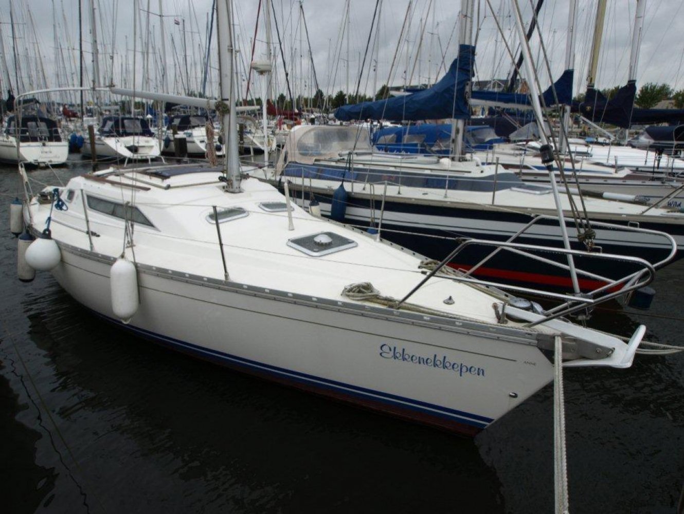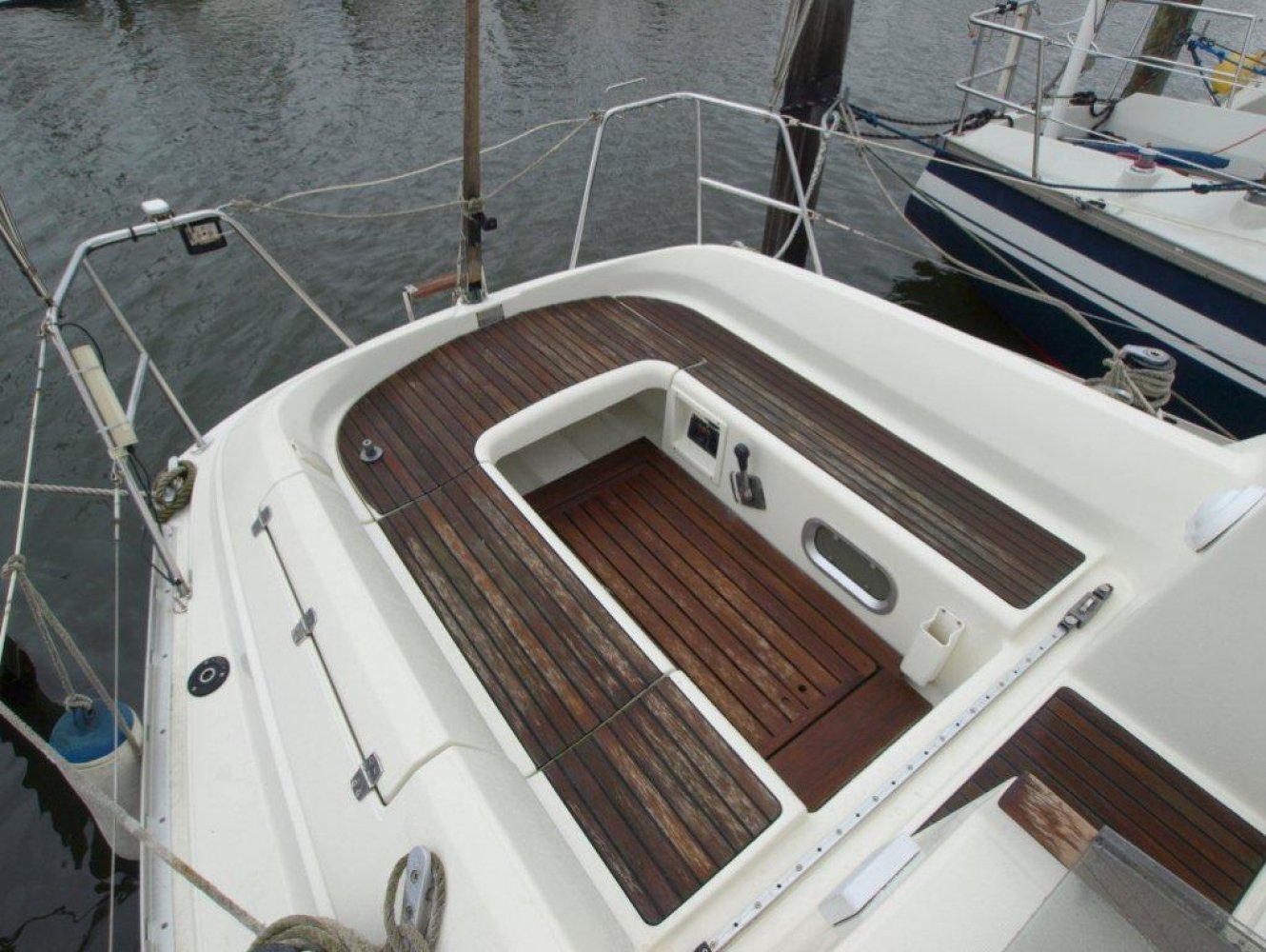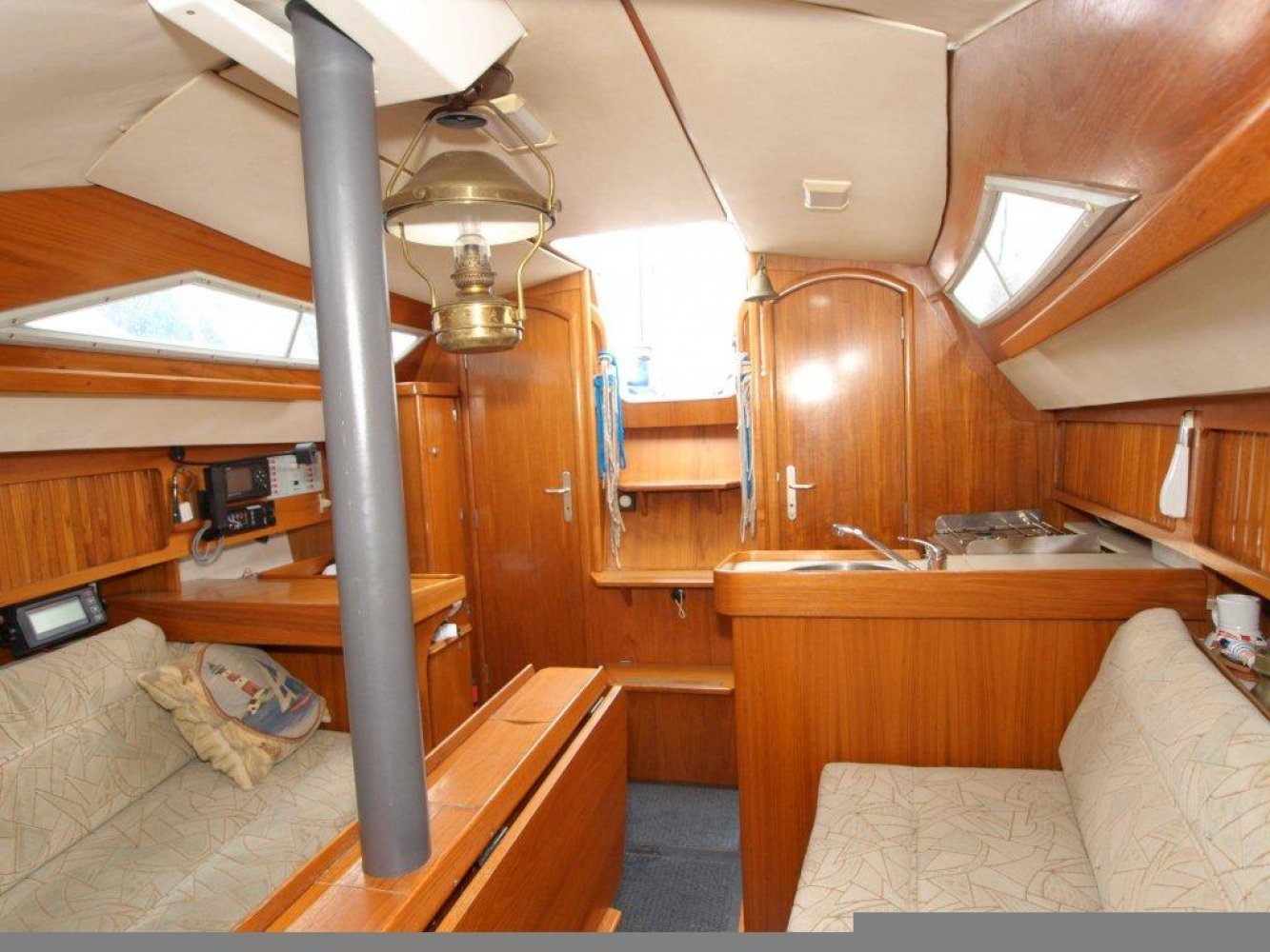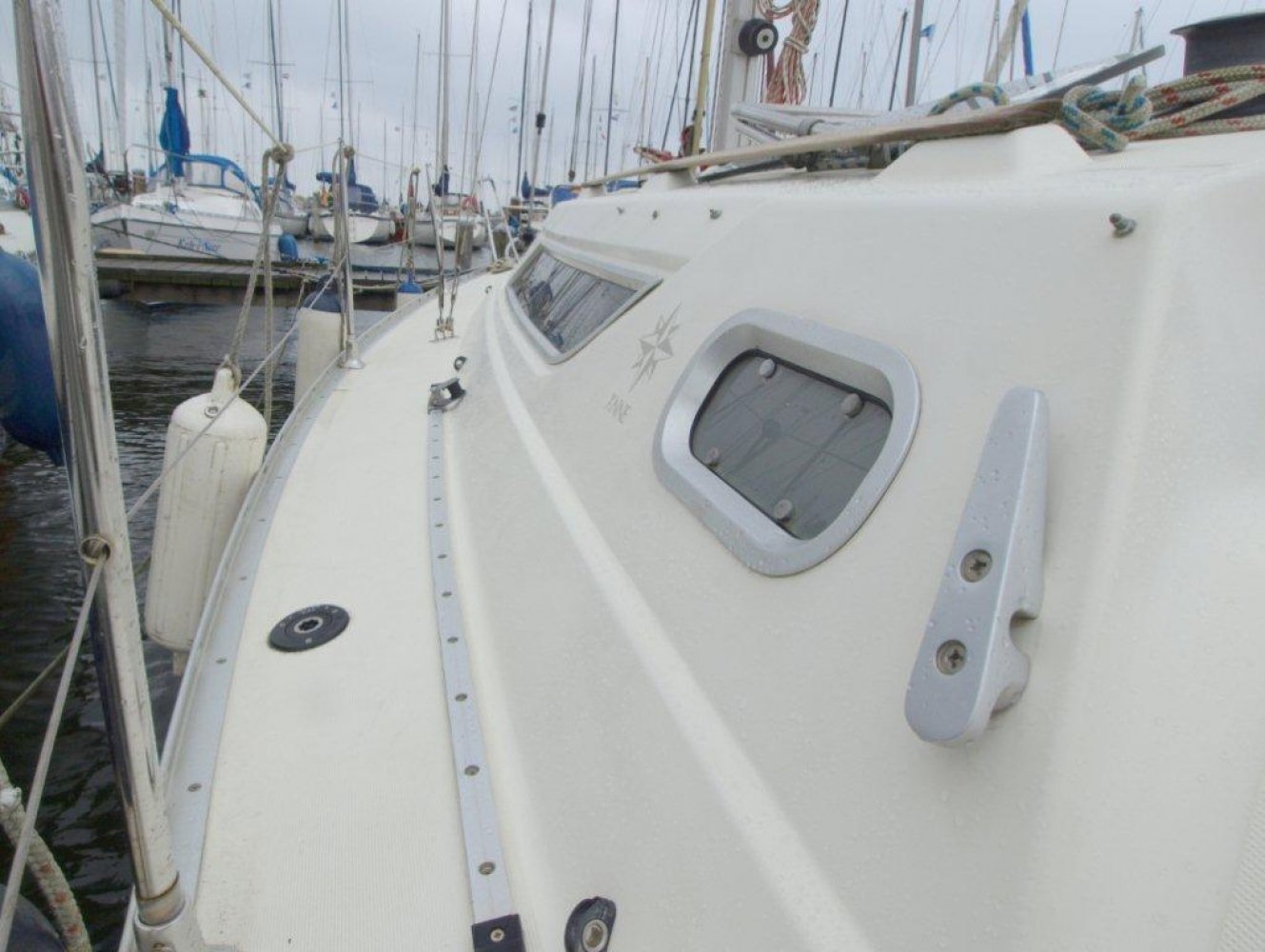 Uitstekend onderhouden compleet vaarklare Jeanneau Sun Odyssey 30 aangeboden voor een interessante prijs door haar eerste eigenaar De Jeanneau Sun Odyssey 30 was een van de eerste Jeanneau’s niet ontworpen door een Fransman. De nieuwe ontwerper had de opdracht meegekregen een ruim en comfortabel schip te tekenen met betere zeileigenschappen dan men tot dan toe gewend was van Jeanneau. Dat deze missie geslaagd is merkt u zodra u aan boord stapt. De ruime kuip en brede gangboorden maken van dit compacte schip een comfortabel en veilige omgeving voor de voltallige bemanning. De ondiepe vleugelkiel van slechts 96 cm maakt een groot vaargebied mogelijk maar zorgt dat de Jeanneau 30 zeker ook z’n mannetje staat op open water. Comfort is zeker ook te vinden binnen in het schip. Aan bakboord is het kombuis met koelkast, fornuis en voldoende opberg mogelijkheden. Hier tegenover is de riante kaarten tafel. Verder naar voren treft u de salon aan met zowel aan bakboord als aan stuurboord riante en comfortabele langsbanken en een flinke tafel in het midden waarvan de bladen van neer kunnen klappen om eventueel extra ruimte te kunnen creëren. In het voorschip is een dubbele hut welke afgesloten kan worden middels een deur. In het achterschip is aan stuurboord de natte cel met afvoer voor een douche en aan bakboord is de riante tweede dubbele hut. Deze hut kan uiteraard ook afgesloten worden middels een deur en heeft een patrijspoort voor extra ventilatie. Kortom een fijn zeilend schip met compacte buitenmaten maar toch met alles aan boord wat je van een 30 voeter mag verwachten. Neem gerust eens contact op om een afspraak te maken om dit schip te komen bekijken in Herkingen.
