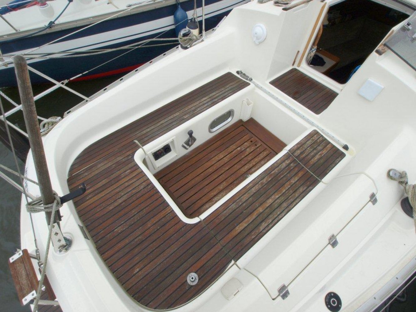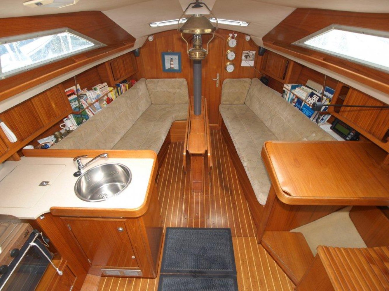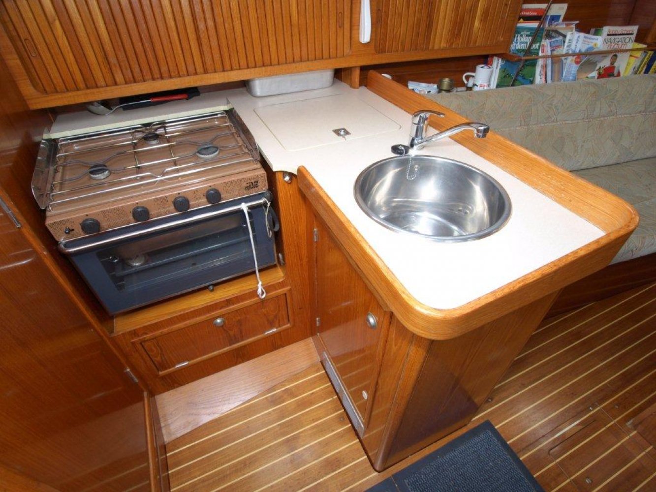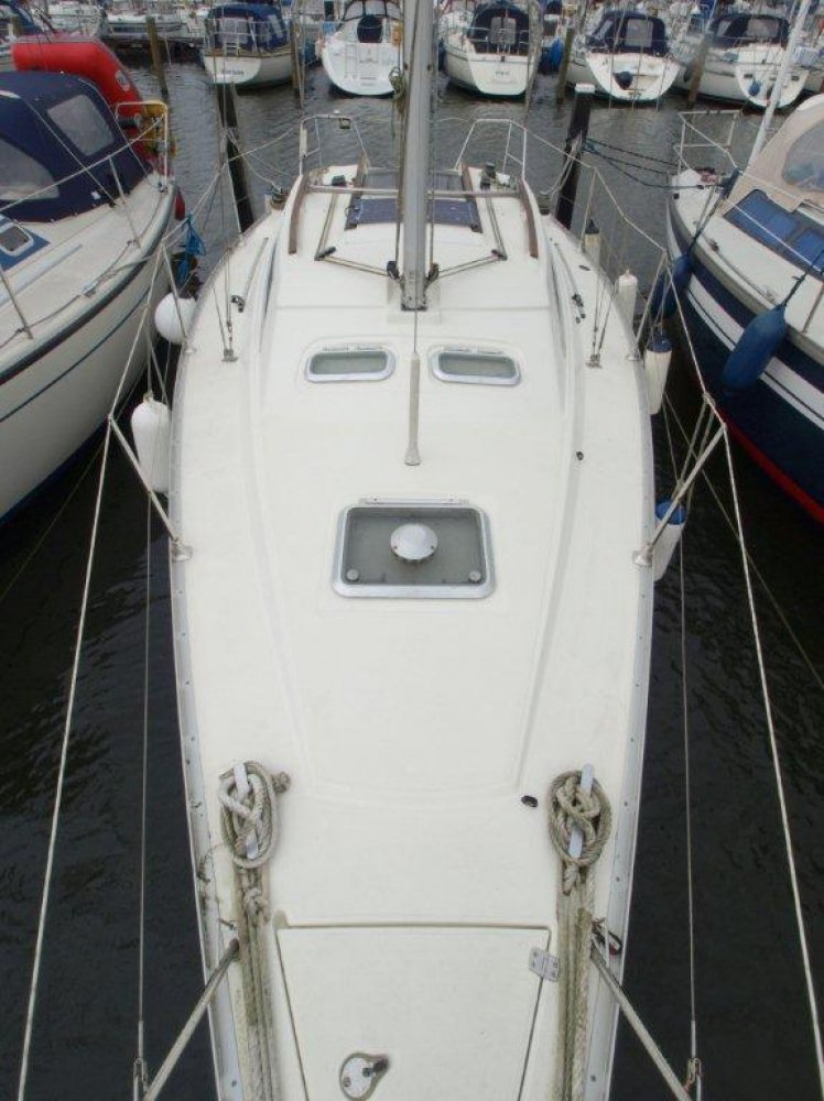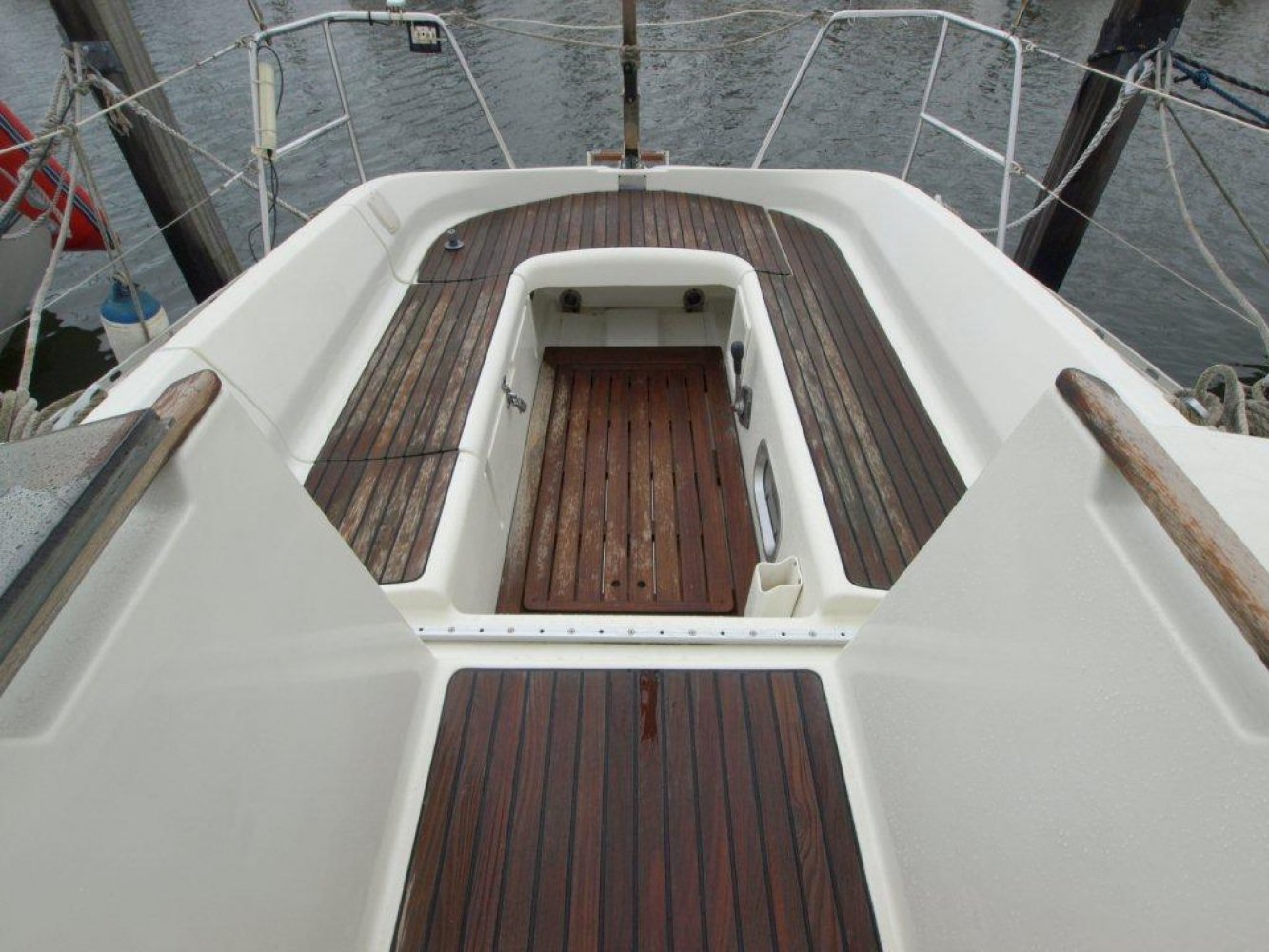 Uitstekend onderhouden compleet vaarklare Jeanneau Sun Odyssey 30 aangeboden voor een interessante prijs door haar eerste eigenaar De Jeanneau Sun Odyssey 30 was een van de eerste Jeanneau’s niet ontworpen door een Fransman. De nieuwe ontwerper had de opdracht meegekregen een ruim en comfortabel schip te tekenen met betere zeileigenschappen dan men tot dan toe gewend was van Jeanneau. Dat deze missie geslaagd is merkt u zodra u aan boord stapt. De ruime kuip en brede gangboorden maken van dit compacte schip een comfortabel en veilige omgeving voor de voltallige bemanning. De ondiepe vleugelkiel van slechts 96 cm maakt een groot vaargebied mogelijk maar zorgt dat de Jeanneau 30 zeker ook z’n mannetje staat op open water. Comfort is zeker ook te vinden binnen in het schip. Aan bakboord is het kombuis met koelkast, fornuis en voldoende opberg mogelijkheden. Hier tegenover is de riante kaarten tafel. Verder naar voren treft u de salon aan met zowel aan bakboord als aan stuurboord riante en comfortabele langsbanken en een flinke tafel in het midden waarvan de bladen van neer kunnen klappen om eventueel extra ruimte te kunnen creëren. In het voorschip is een dubbele hut welke afgesloten kan worden middels een deur. In het achterschip is aan stuurboord de natte cel met afvoer voor een douche en aan bakboord is de riante tweede dubbele hut. Deze hut kan uiteraard ook afgesloten worden middels een deur en heeft een patrijspoort voor extra ventilatie. Kortom een fijn zeilend schip met compacte buitenmaten maar toch met alles aan boord wat je van een 30 voeter mag verwachten. Neem gerust eens contact op om een afspraak te maken om dit schip te komen bekijken in Herkingen.