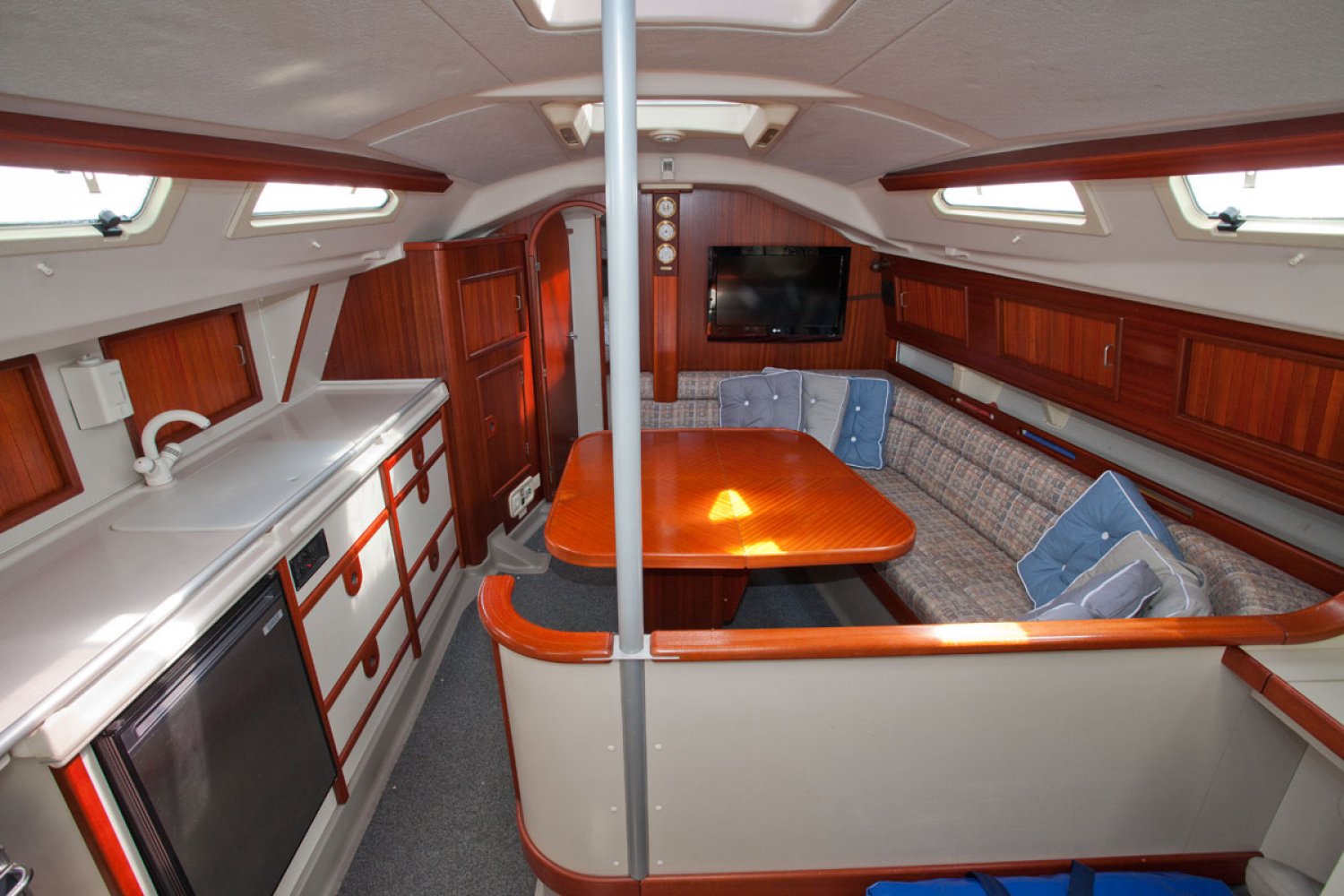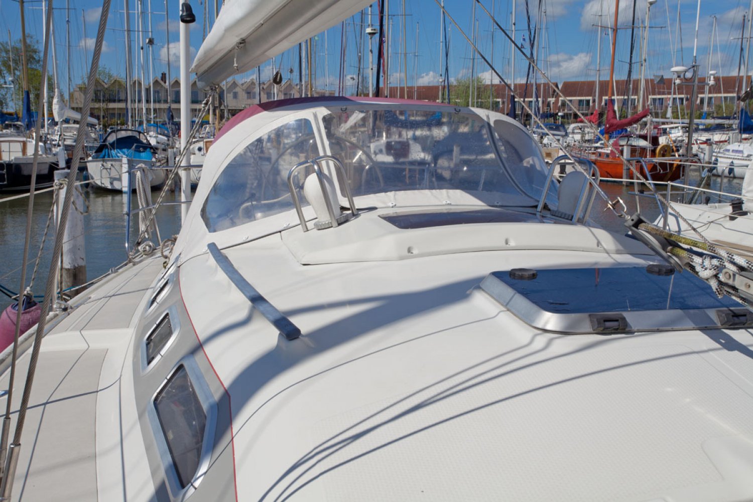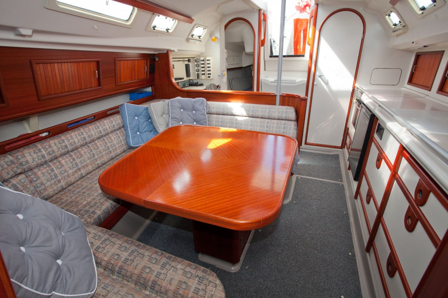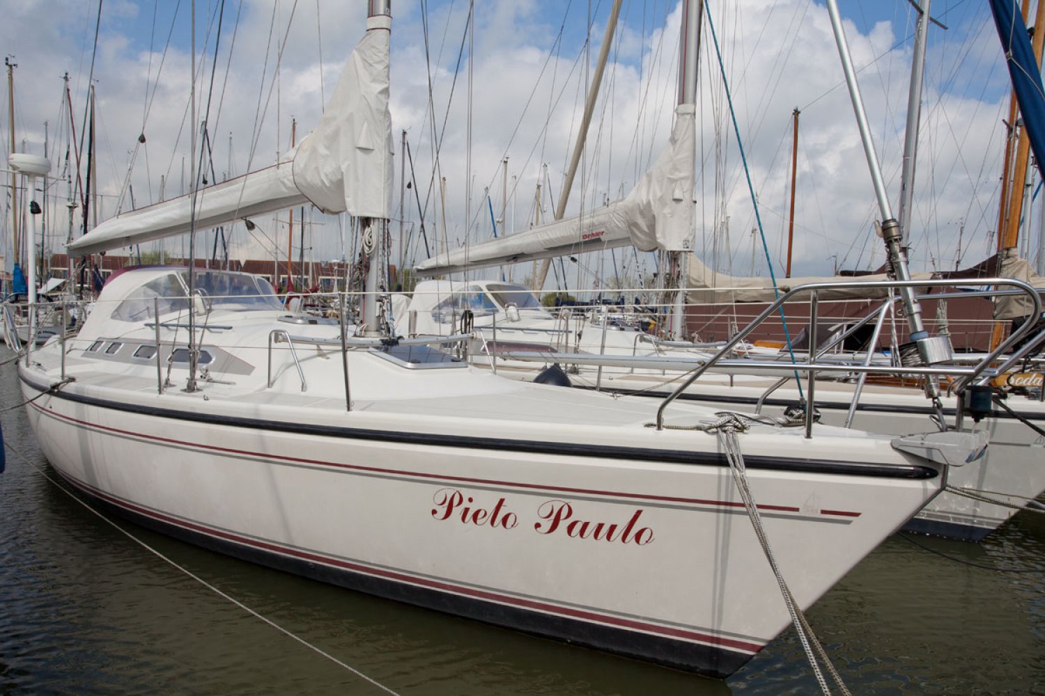 De Dehler 36 CWS mag een echte cruiser racer worden genoemd. Van de Stadt en Partners tekenden deze boot met elegante slanke lijnen en een fraai laag silhouet. Kenmerkend voor de werf is dat veel vernuftige techniek is toegepast. Voorbeeld hiervan is het CWS systeem met elektrische lier, maar bijvoorbeeld ook hoe fraai de trimlijnen onderdeks naar het midden van de kuip zijn geleid. Het dek is erg goed toegankelijk en voorzien van TBS met antislip. De zeilgardarobe bestaat uit recente zeilen van goede kwaliteit. Alleen het grootzeil is nog origineel. De boot laat zich onder zeil zeer eenvoudig bedienen met behulp van het Central Winch System in de kuip, en de zelfkerende fok op het voordek. De huidige 1e eigenaar heeft steeds deugdelijk onderhoud laten uitvoeren. Het interieur is bijzonder licht doordat veel gebruik van kunststof is gemaakt. De langs keuken links voorzien van alle moderne gemakken zoals 3 pits gasstel, oven, koelkast met vriesvak en magnetron. Rond de salontafel is plaats voor een groot gezelschap. In de boeg en in het achterschip is een dubbele kooi met veel kastruimte. Bakboord achter is een ruime natte cel met toilet, wastafel en douche. Ook in de kuip is een mengdouche. Al met al is deze Dehler 36 CWS een zeer plezierig zeiljacht met uitstekende vaareigenschappen. Gezien de staat van onderhoud op dit moment zijn er voor de nieuwe eigenaar veel plezierige uren op het water in het vooruitzicht. Wij nodigen u van harte uit voor een bezichtiging aan boord in Monnickendam. Maakt u een afspraak via [email protected] Uw jachtmakelaar is Robert de Vries, tel. 06-50201336