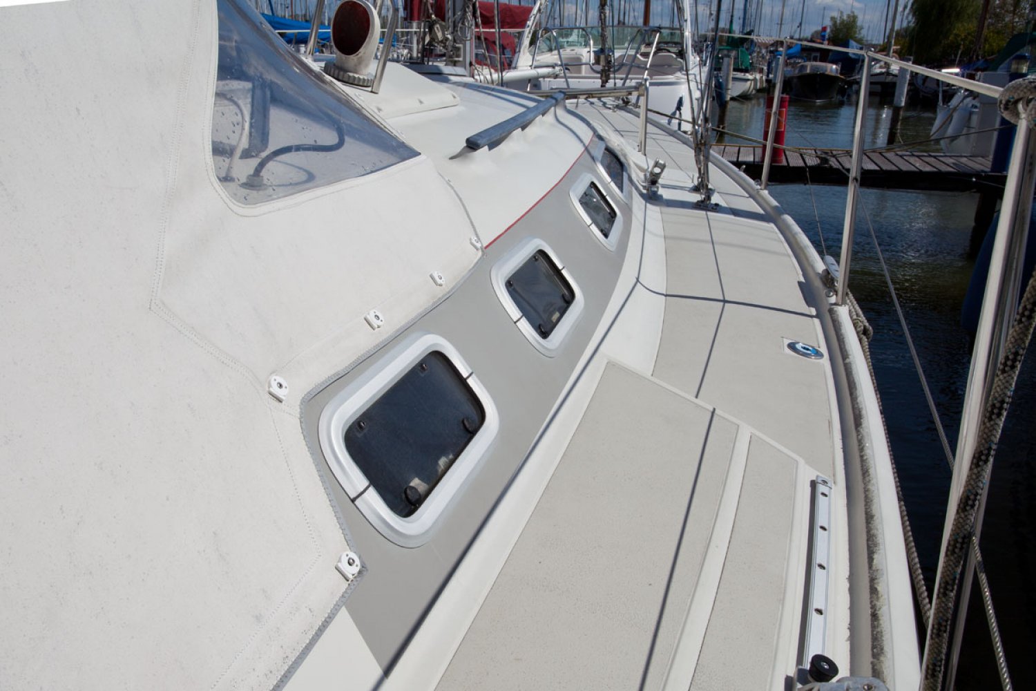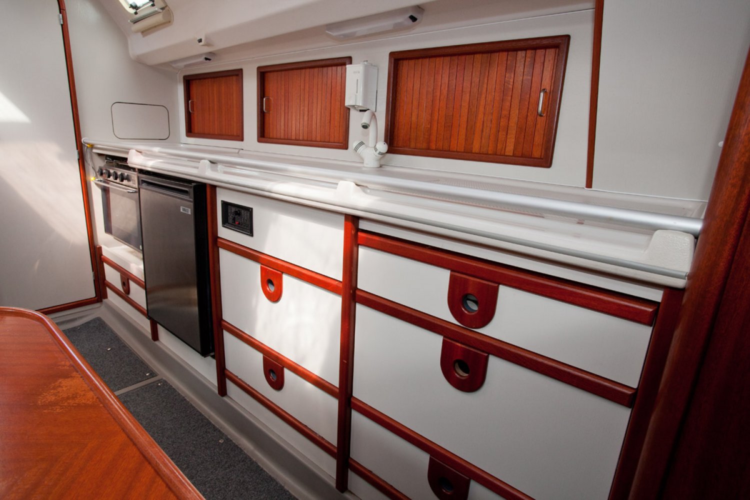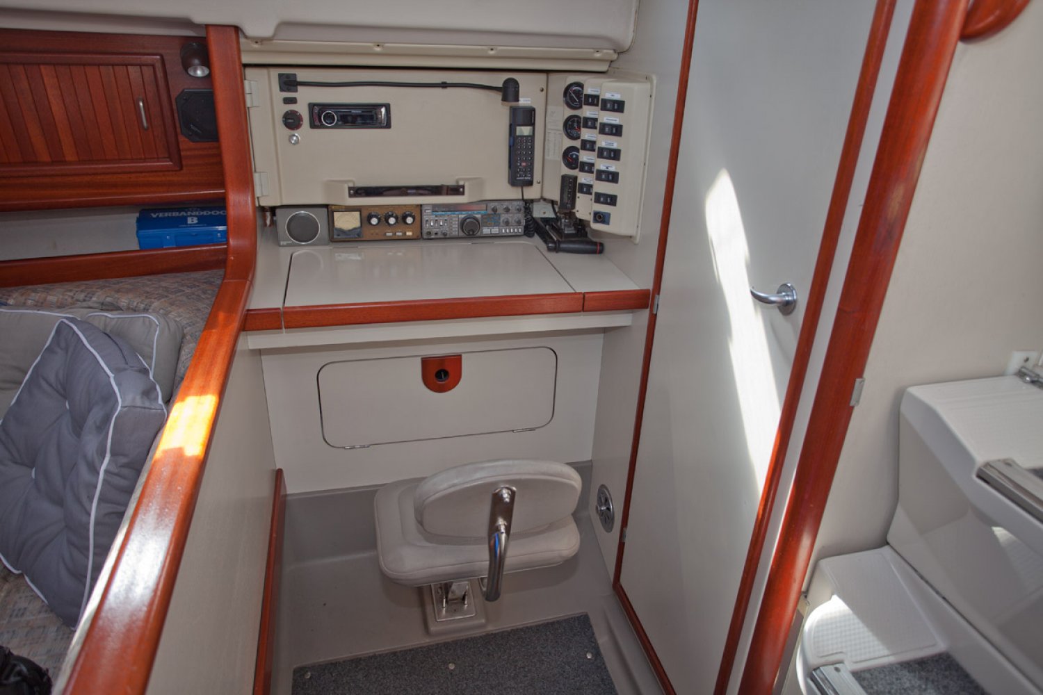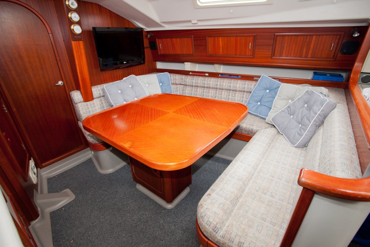 De Dehler 36 CWS mag een echte cruiser racer worden genoemd. Van de Stadt en Partners tekenden deze boot met elegante slanke lijnen en een fraai laag silhouet. Kenmerkend voor de werf is dat veel vernuftige techniek is toegepast. Voorbeeld hiervan is het CWS systeem met elektrische lier, maar bijvoorbeeld ook hoe fraai de trimlijnen onderdeks naar het midden van de kuip zijn geleid. Het dek is erg goed toegankelijk en voorzien van TBS met antislip. De zeilgardarobe bestaat uit recente zeilen van goede kwaliteit. Alleen het grootzeil is nog origineel. De boot laat zich onder zeil zeer eenvoudig bedienen met behulp van het Central Winch System in de kuip, en de zelfkerende fok op het voordek. De huidige 1e eigenaar heeft steeds deugdelijk onderhoud laten uitvoeren. Het interieur is bijzonder licht doordat veel gebruik van kunststof is gemaakt. De langs keuken links voorzien van alle moderne gemakken zoals 3 pits gasstel, oven, koelkast met vriesvak en magnetron. Rond de salontafel is plaats voor een groot gezelschap. In de boeg en in het achterschip is een dubbele kooi met veel kastruimte. Bakboord achter is een ruime natte cel met toilet, wastafel en douche. Ook in de kuip is een mengdouche. Al met al is deze Dehler 36 CWS een zeer plezierig zeiljacht met uitstekende vaareigenschappen. Gezien de staat van onderhoud op dit moment zijn er voor de nieuwe eigenaar veel plezierige uren op het water in het vooruitzicht. Wij nodigen u van harte uit voor een bezichtiging aan boord in Monnickendam. Maakt u een afspraak via [email protected] Uw jachtmakelaar is Robert de Vries, tel. 06-50201336