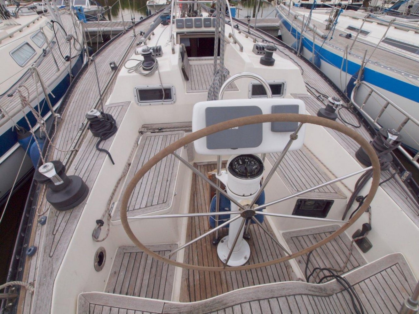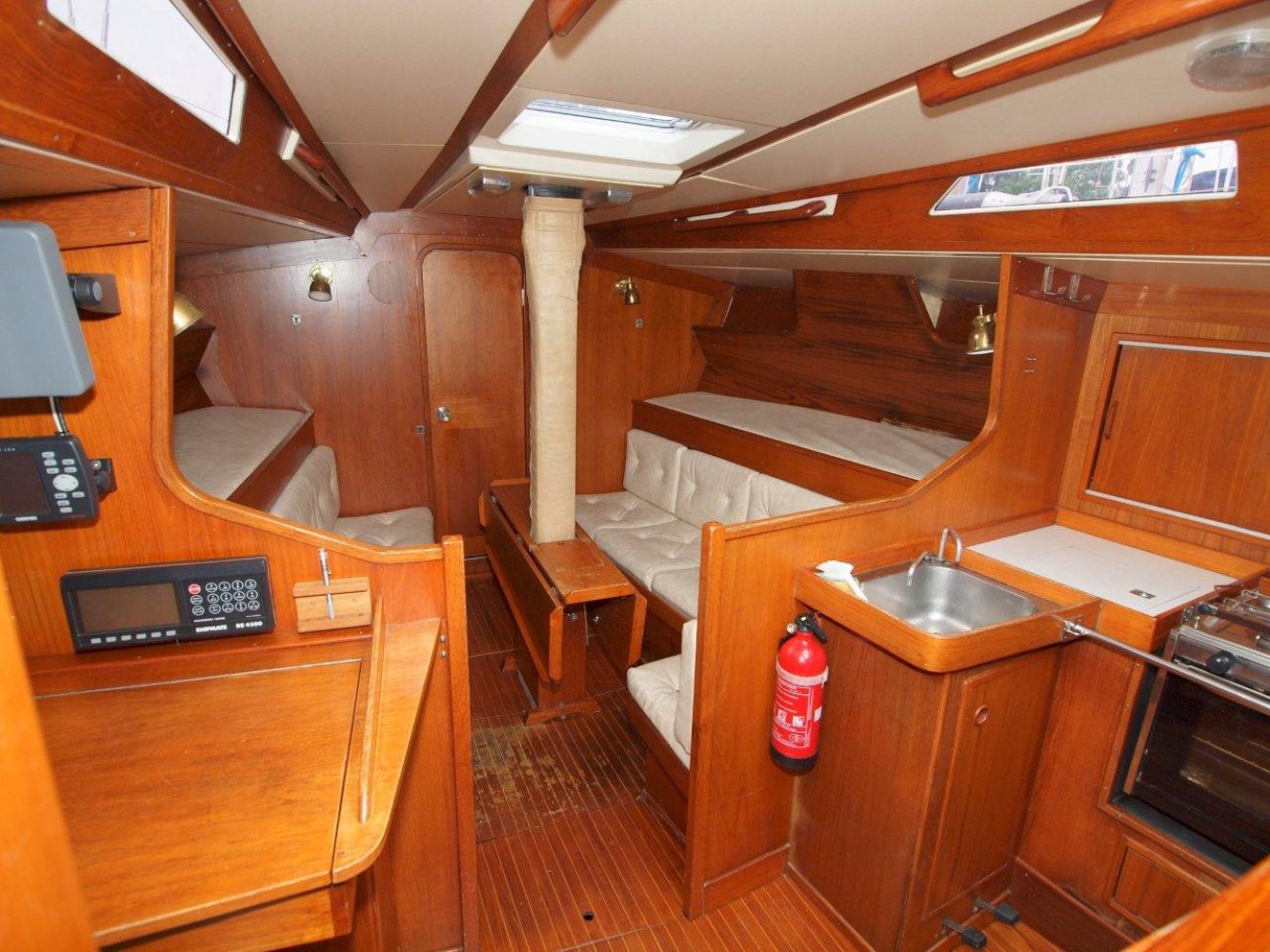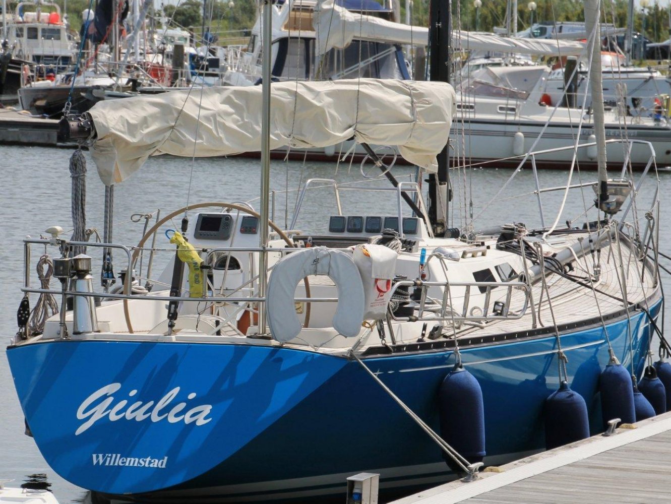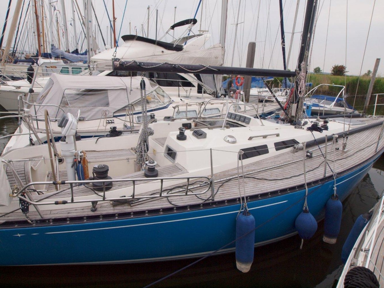 De Baltic 37 is een fraai gelijnde snelle zeiler met een typisch jaren '70 IOR design maar wel met het nodige comfort aan boord. De Baltic die wij aanbieden is voorzien van vele recente up-dates en vaarklaar voor de nieuwe eigenaar. Als u het schip ziet liggen valt direct de fraaie in 2010 geschilderde lichtblauwe romp op. Samen met de teak dekken en het mooie design van het schip maakt het een opvallende verschijning op het water. Aan boord treft u brede gangboorden en een ruime kuip aan. De kuip wordt gekenmerkt door een praktische indeling met voldoende ruimte voor de bemanning. Boven de kajuit ingang vindt u alle belangrijke informatie op de recentelijk geplaatste Raymarine apparatuur. Voor de lange rakken is er een recentelijk nieuw geplaatste autopilot en een kaartplotter voor uw comfort. De kajuit ingang is toegankelijk via het brugdek en eenmaal binnen treft u een fraaie teakhouten afwerking aan zoals we het tegenwoordig niet veel meer zien. Aan stuurboord is een praktisch kombuis en ook de toegang tot de achterhut. Aan bakboord is de natte cel en de kaartentafel. Midscheeps is een gezellige salon met comfortabele banken met daarboven extra bedden. In de voorpiek is de eigenaarshut met dubbel bed en opbergruimte. Deze Baltic 37 is volledig vaarklaar maar heeft cosmetisch nog wel wat liefde nodig. Wij zijn er van overtuigd dat ze het zeker dubbel en dwars waard is om weer in haar oude glorie hersteld te worden. De huidige eigenaar heeft al veel voor u geïnvesteerd en heeft haar nu vanwege gewijzigde plannen met pijn in het hart te koop aangeboden. Daarmee heeft u een mooie kans om met een gering budget een fraai klassieker te bezitten dat zeilt als de brandweer en toch comfortabel is. We horen u dan ook graag om eens een afspraak te maken aan boord van deze Baltic 37. We zijn te bereiken op tel. 0168-820208 of email: [email protected]