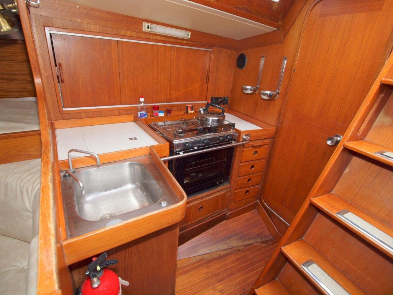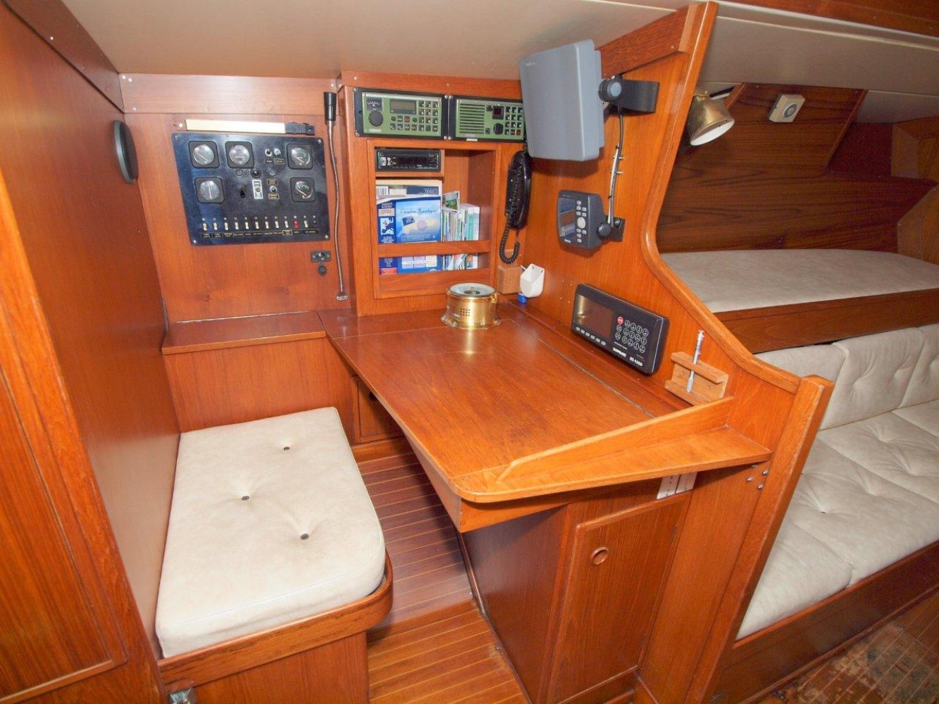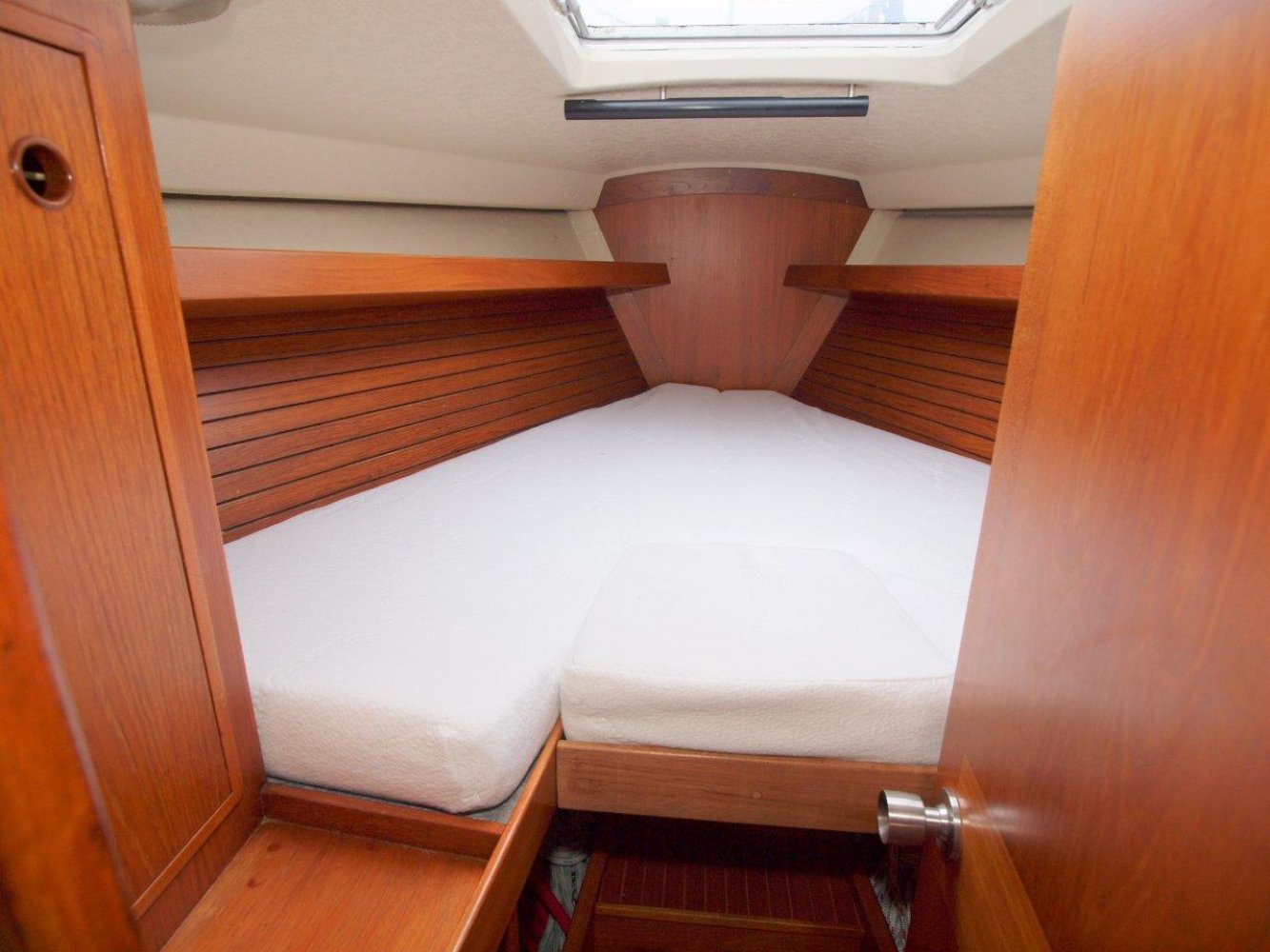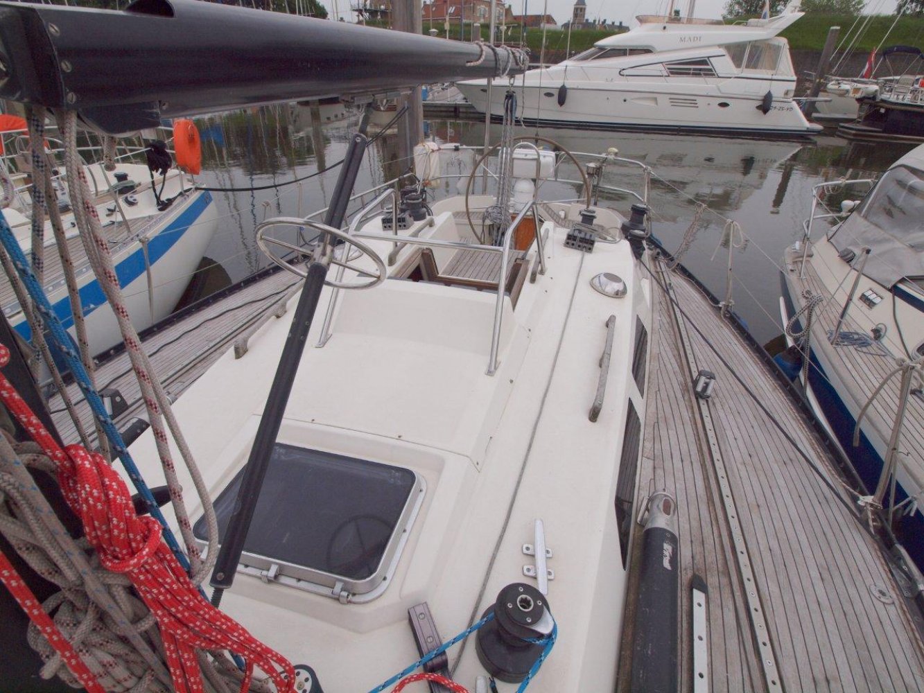 De Baltic 37 is een fraai gelijnde snelle zeiler met een typisch jaren '70 IOR design maar wel met het nodige comfort aan boord. De Baltic die wij aanbieden is voorzien van vele recente up-dates en vaarklaar voor de nieuwe eigenaar. Als u het schip ziet liggen valt direct de fraaie in 2010 geschilderde lichtblauwe romp op. Samen met de teak dekken en het mooie design van het schip maakt het een opvallende verschijning op het water. Aan boord treft u brede gangboorden en een ruime kuip aan. De kuip wordt gekenmerkt door een praktische indeling met voldoende ruimte voor de bemanning. Boven de kajuit ingang vindt u alle belangrijke informatie op de recentelijk geplaatste Raymarine apparatuur. Voor de lange rakken is er een recentelijk nieuw geplaatste autopilot en een kaartplotter voor uw comfort. De kajuit ingang is toegankelijk via het brugdek en eenmaal binnen treft u een fraaie teakhouten afwerking aan zoals we het tegenwoordig niet veel meer zien. Aan stuurboord is een praktisch kombuis en ook de toegang tot de achterhut. Aan bakboord is de natte cel en de kaartentafel. Midscheeps is een gezellige salon met comfortabele banken met daarboven extra bedden. In de voorpiek is de eigenaarshut met dubbel bed en opbergruimte. Deze Baltic 37 is volledig vaarklaar maar heeft cosmetisch nog wel wat liefde nodig. Wij zijn er van overtuigd dat ze het zeker dubbel en dwars waard is om weer in haar oude glorie hersteld te worden. De huidige eigenaar heeft al veel voor u geïnvesteerd en heeft haar nu vanwege gewijzigde plannen met pijn in het hart te koop aangeboden. Daarmee heeft u een mooie kans om met een gering budget een fraai klassieker te bezitten dat zeilt als de brandweer en toch comfortabel is. We horen u dan ook graag om eens een afspraak te maken aan boord van deze Baltic 37. We zijn te bereiken op tel. 0168-820208 of email: [email protected]