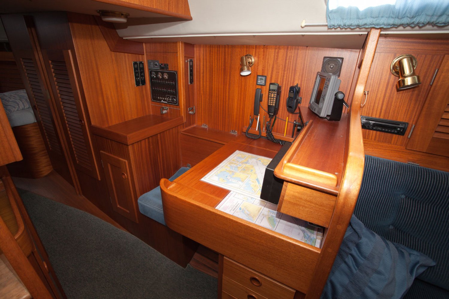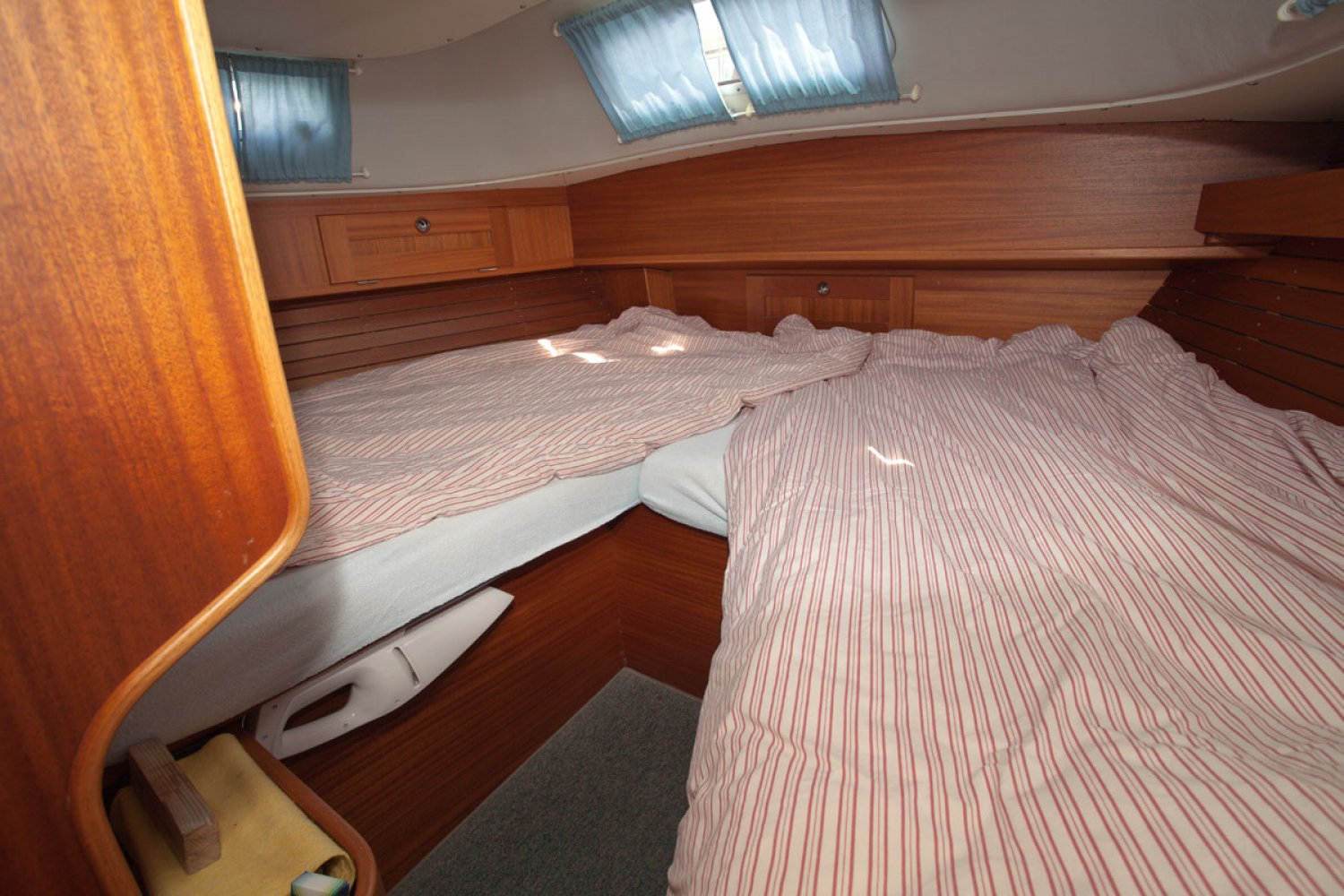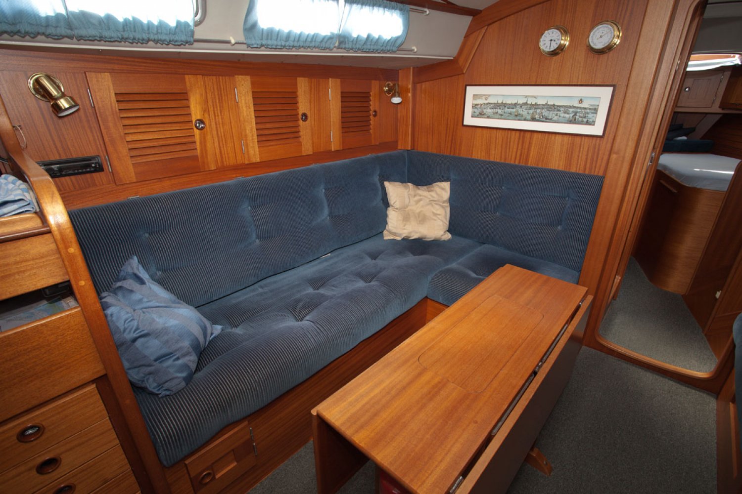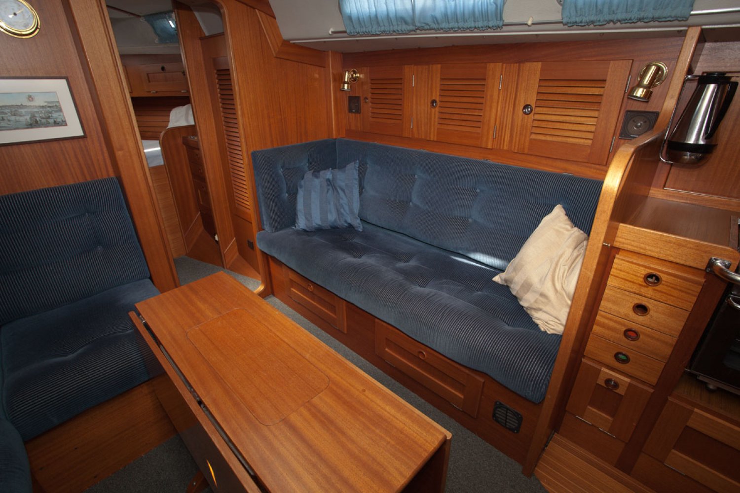 De Hallberg Rassy 36 die wij u aanbieden is van 2e particuliere eigenaar. Dit ontwerp is populair geworden door het goedmoedige karakter; stabiel en beheersbaar op zee, ook bij veel wind en golven. Prettig is ook de centre cockpit waar men veel beschutting vind achter de vaste ramen van de buiskap. De HR 36 is de opvolger van de HR 352, een van de grote successen van de werf. Aan een aantal details kan men herkennen dat het model goed is door-ontwikkeld. Zo is de doorgang naar de achterhut ruimer dan bij de voorganger. Over het algemeen is de boot in goed onderhouden staat en de huidige eigenaar heeft de boot met veel liefde verzorgd. De Volvo motor start vlot en loopt goed. De zeilen van zware kwaliteit zijn in 2003 en 2005 vervangen en in goede staat. Op de kuiprand staan twee elektrische Harken 48 schootlieren zodat de genua spannen een kwestie is van een druk op de knop. Het interieur is zeer netjes met weinig gebruikssporen. Bij binnenkomst is gelijk links de navigatie tafel en rechts de kombuis. De salon in de midscheeps heeft twee ruime banken die ook als bed kunnen dienen. Zowel in boeg als achterschip is een hut met dubbel bed. Onder de mast is links de natte cel,en rechts een kast. De machinekamer is ruim en goed toegankelijk. Voor wie een stoer en degelijk kwaliteitsjacht zoekt is deze Hallberg Rassy 36 een aantrekkelijk jacht. Bent u geïnteresseerd, maakt u een afspraak voor een bezichtiging in Hoorn via [email protected]. Uw jachtmakelaar is Robert de Vries +31(0)6 5020 1336.