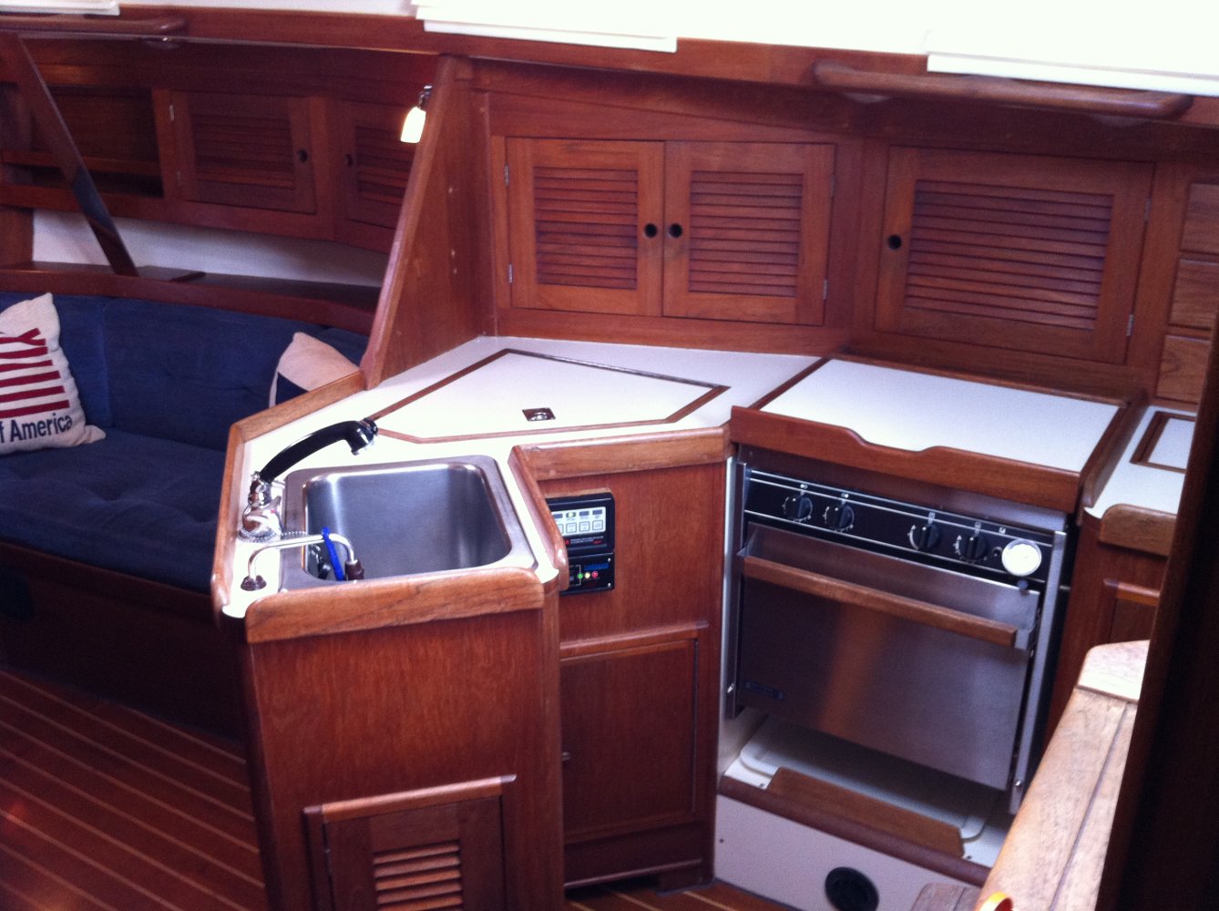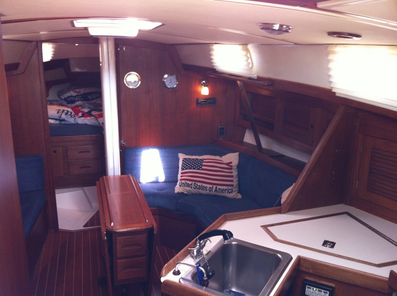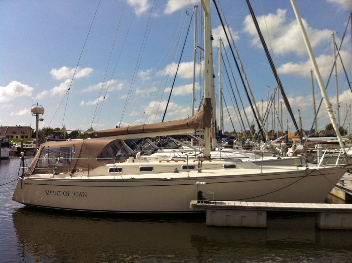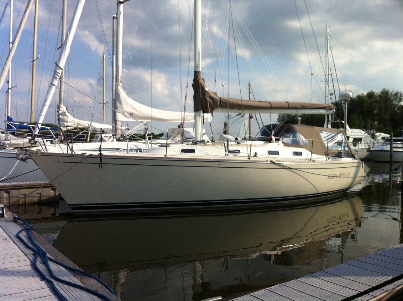 Prachtig zeilschip nu voor een aantrekkelijk prijs nu te koop. Opstappen en echt direct wegzeilen! Zeer fijne, snelle en comfortabele zeiler gebouwd door Tartan - C&C yachts en destijds geleverd door de Nederlandse importeur. Ondanks het relatief hoge zeiloppervlakte (doorgestoken mast) toch veel comfort. Het spade/balansroer geeft goed door hoe de zeilen staan. De ‘beaver tail’ loden kiel geeft een grote vrijheid qua diepgang en vaart ook nog eens 30 graden hoog aan de wind. De kuip is vrij van een onhandige overloop voor meer comfort en de grote Harken lieren zorgen voor gemakkelijk ‘lieren’. De ruime kuip met hoge leuningen geven een beschut en veilig gevoel, de brede gangboorden zijn een genot om op te lopen. De kajuit is anders dan anders. Ruim van opzet met een twee banken waarvan een rondzit. De tafel heeft twee klapbladen en opbergmogelijkheid voor drank. Onder de tafel zit een flinke bilge met automatische pomp. De navigatiehoek is ruim en voorzien van alle benodigde apparatuur. De keuken heeft een groot werkblad, is voorzien van een luxe Force10 gas/over combinatie en op afstand bedienbare gastoevoer, de koelkast is via de boven- en zijkant bereikbaar en is Amerikaans groot. De voorpiek is zeer ruim te noemen. Het bed is 2 meter diep en op het breedste punt ca. 190 cm! Voorzien van nieuwe memoryfoam matrassen voor heerlijk uitgerust slapen. De achterhut meet 2 bij 160 en is d.m.v. twee patrijspoorten lekker te luchten. De beide hutten zijn voorzien van toegangsdeuren die ‘inklapbaar’ zijn. Een ideale oplossing en zeer ruimtelijk werkend. Door het gehele jacht zijn meer dan voldoende opbergmogelijkheden. Alles kan netjes opgeborgen worden achter de louvre-deurtjes. Samen met de geforceerde ventilatie op het dek zorgt dit voor een fris ruikende boot. Alle elektrische bedrading is bereikbaar. Ook al het leidingwerk is goed te inspecteren d.m.v. vele luiken die zijn aangebracht. Het gehele zeiljacht is met slechts 6.400 mijl en ca. 650 uur op de motor in uitstekend staat van onderhoud en direct klaar voor gebruik. Kwalitatief zeker vergelijkbaar met de boten van de bekende Scandinavische werven. Uitgebreide documentatie (foto’s bouw, gebruiksaanwijzingen en facturen etc. aanwezig alsmede een BTW verklaring van de douane). Wordt geleverd met compleet kommaliewant, nieuwe landvasten, 4 stootwillen en een stootbal en de Reeds Nautical 2013. De huidige eigenaar heeft de afgelopen jaren veel aan onderhoud gedaan. Door een verandering van de plannen wordt het schip (met recent keuringsrapport) nu met pijn in het hart te koop aangeboden. Wij nodigen u dan ook van harte uit om een afspraak te maken voor een bezichtiging aan boord van dit schip.
