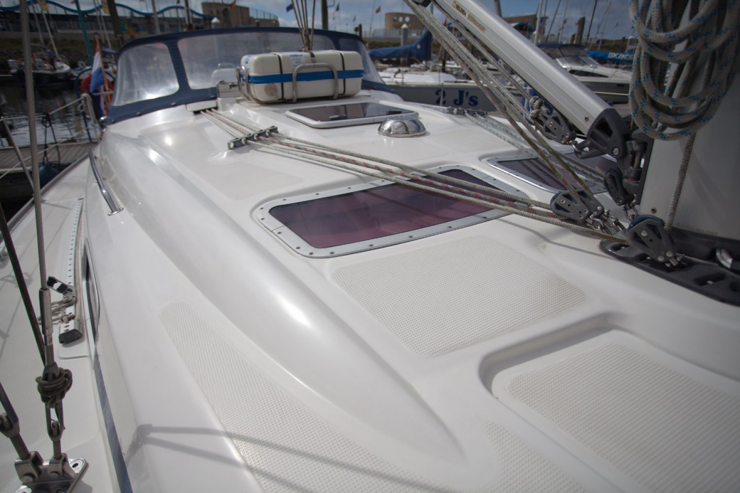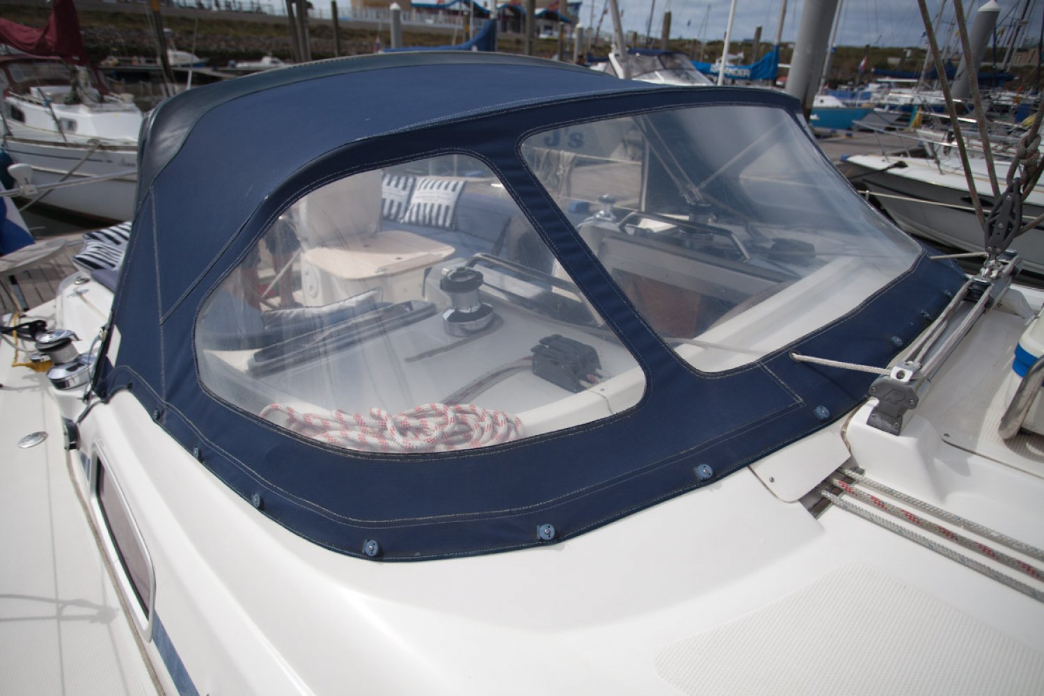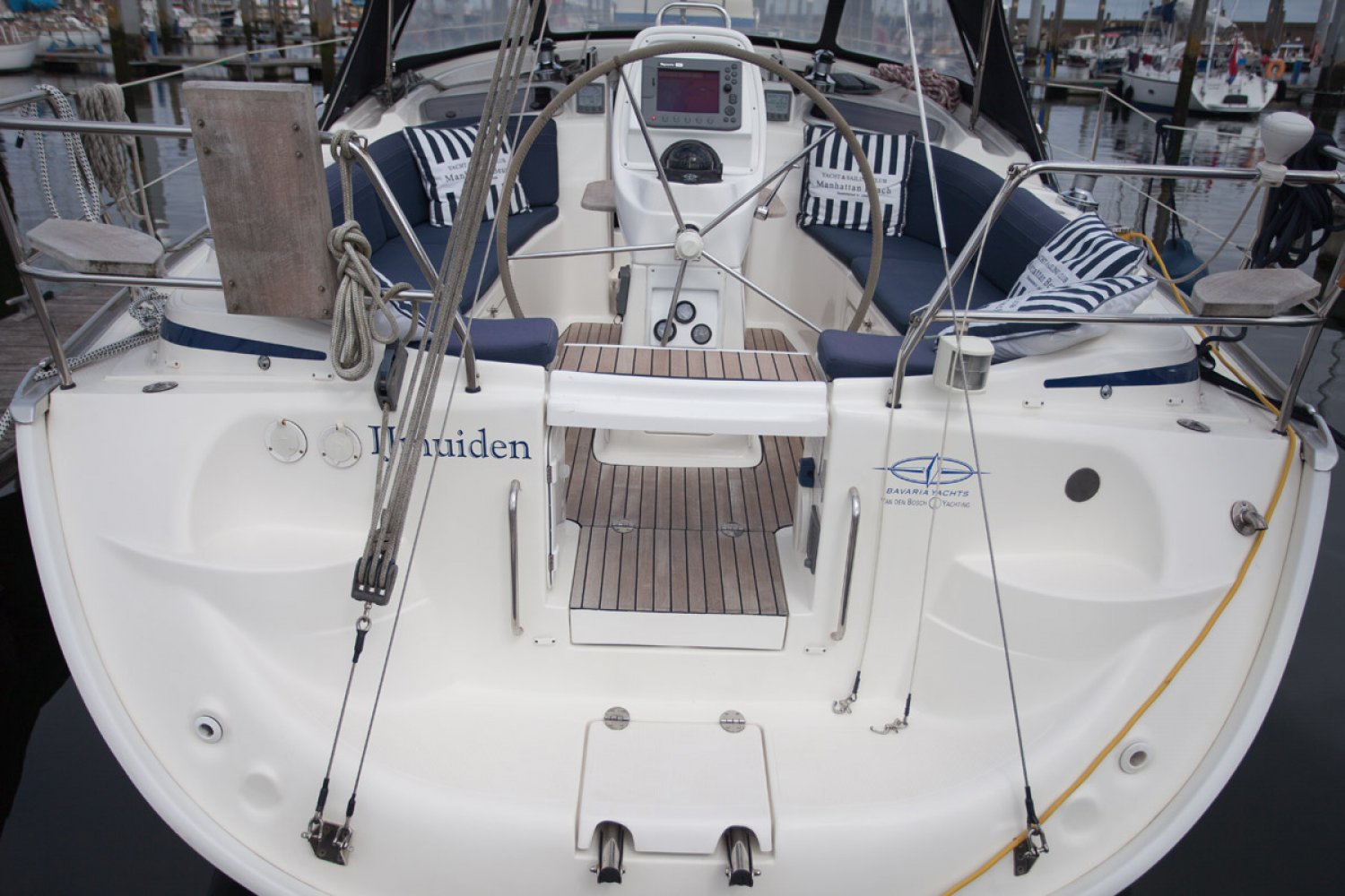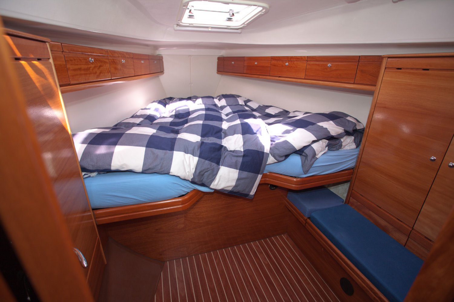 Deze Bavaria 37 in 2 hutten uitvoering van eerste particuliere eigenaar is bijzonder goed onderhouden en zeer volledig uitgevoerd. Zij is gebouwd in najaar 2005 en in gebruik genomen in 2006. De boot is zeer ruim en praktisch ingedeeld en heeft prima vaareigenschappen zowel onder zeil als op de motor. De kuip is voorzien van teakhout op de banken, en fraaie buitenkussens. Aan stuurboord treft u een diepe bakskist met daarin voldoende ruimte voor grote zaken als vouwfietsen. Aan bakboord en in de kuiptafel is eveneens bergruimte. Op de stuurstand hebt u goed overzicht en controle over het jacht. Op de stuurstand bevinden zich het kompas, stuurautomaat en het C80 plotter/radar scherm. Het zwemplatform is gemakkelijk bereikbaar via de demontabele achterbank. Aan de sprayhood kan eenvoudig een kuiptent worden geritst zodat er extra leefruimte ontstaat voor minder mooie dagen. Bij uw afwezigheid is de kuip met zijn teakhout en instrumenten eveneens goed beschermd. Het interieur is erg ruim met een uitstekende afwerking van het hout en heel veel kastruimte. Er zijn 4 vaste slaapplaatsen in de twee dubbele hutten. De voorhut is voorzien van een groot bed met latex matrassen en een grote kledingkast. Aan stuurboord naast de kajuitingang is een de natte cel met douche en bergruimte voor zeilkleding. De achterhut is voorzien van een groot bed en voldoende bergruimte. In het midden van het schip is de gezellige salon welke is voorzien van een rechte en royale U-vormige bank. De keuken in L-vorm is voorzien van alle gemakken. Aan stuurboord is de kaartentafel met onder andere marifoon en Webasto bediening. Deze Bavaria 37-2 is in een prima staat van onderhoud en volledig vaarklaar. Als u een ruim en comfortabel schip zoekt voor een aantrekkelijke prijs, dan is deze Bavaria zeker de moeite waard. Bent u geïnteresseerd, maakt u dan een afspraak voor een bezichtiging in IJmuiden via [email protected]. Uw jachtmakelaar is Robert de Vries, +31(0)6 5020 1336.