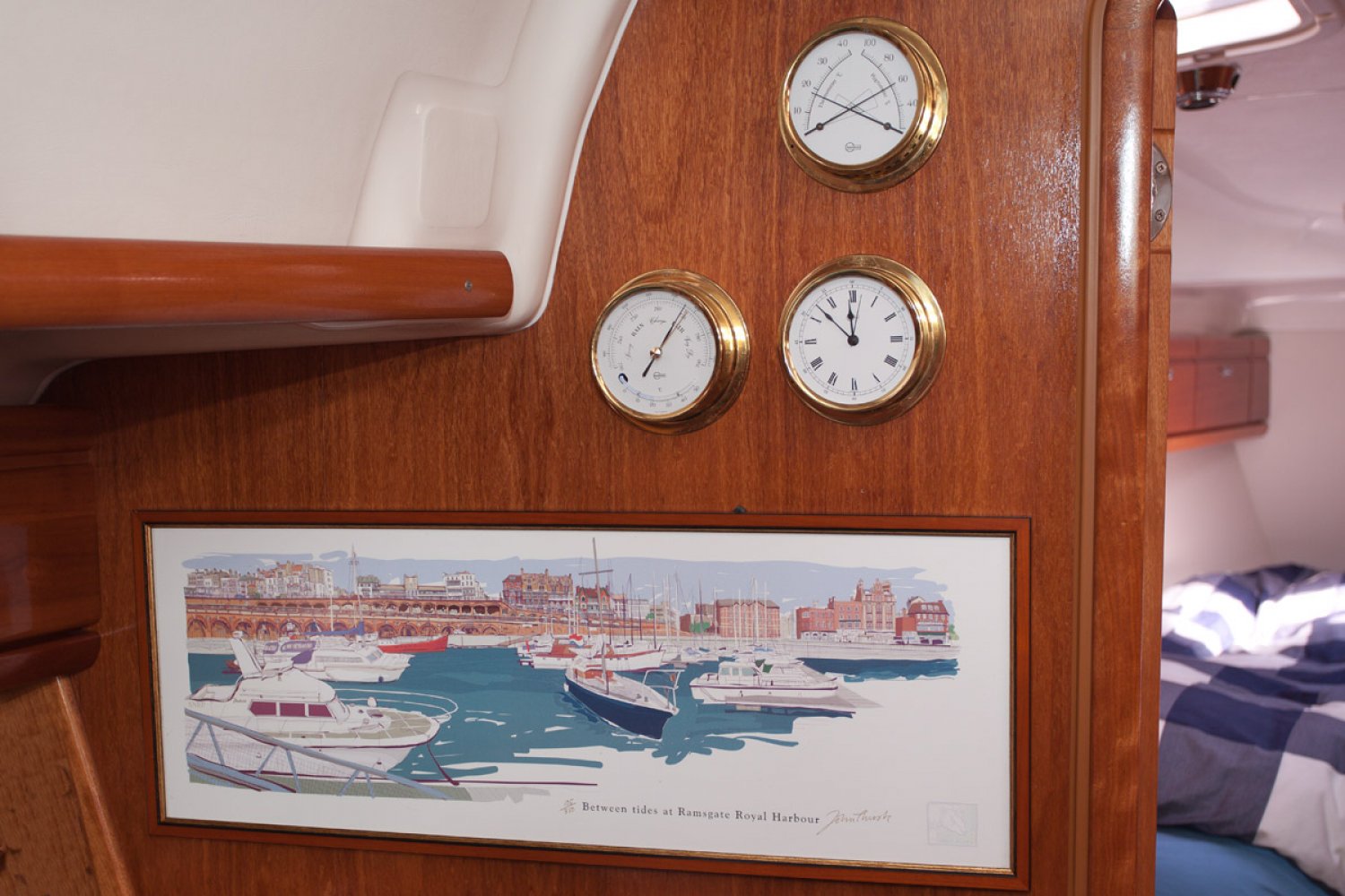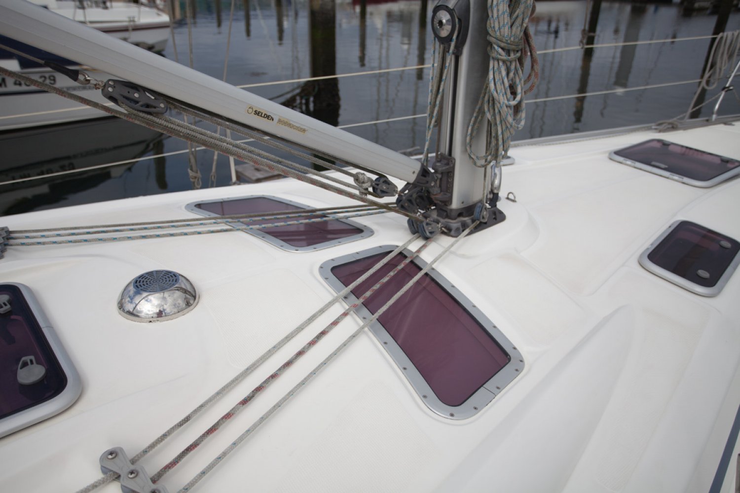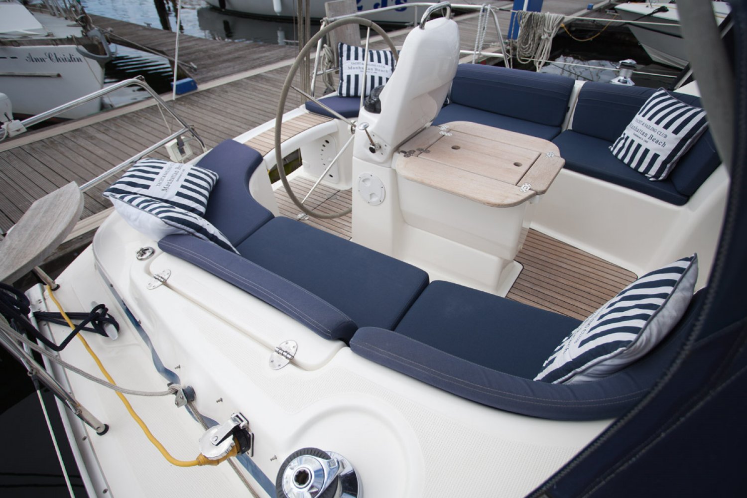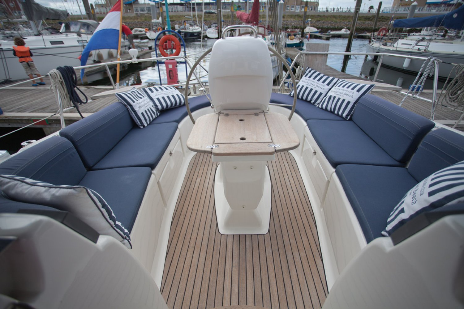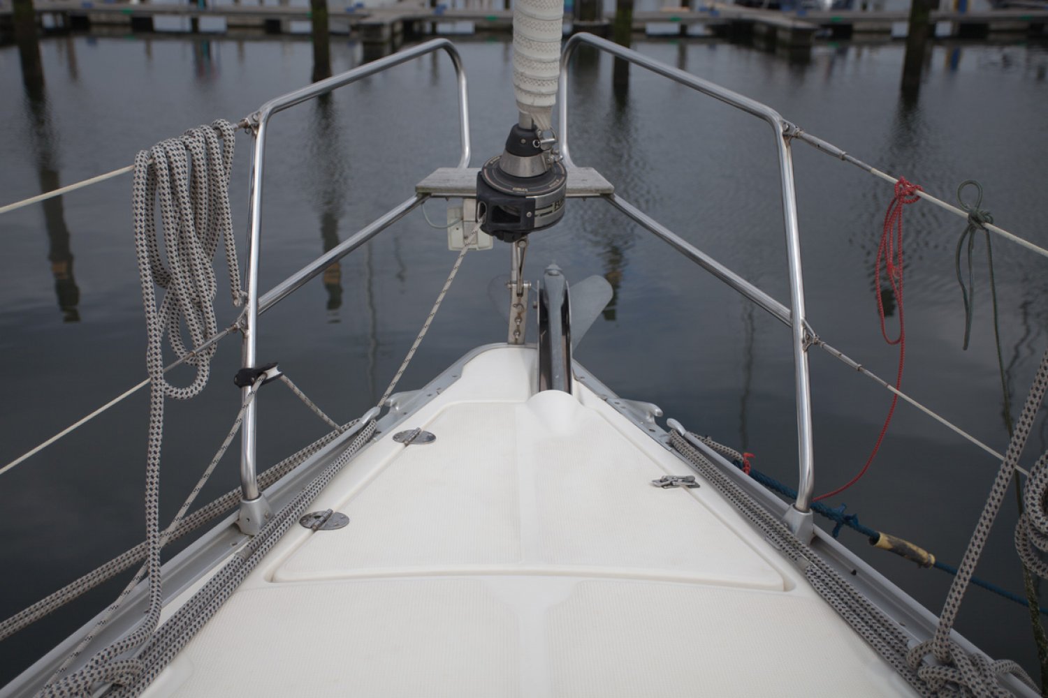 Deze Bavaria 37 in 2 hutten uitvoering van eerste particuliere eigenaar is bijzonder goed onderhouden en zeer volledig uitgevoerd. Zij is gebouwd in najaar 2005 en in gebruik genomen in 2006. De boot is zeer ruim en praktisch ingedeeld en heeft prima vaareigenschappen zowel onder zeil als op de motor. De kuip is voorzien van teakhout op de banken, en fraaie buitenkussens. Aan stuurboord treft u een diepe bakskist met daarin voldoende ruimte voor grote zaken als vouwfietsen. Aan bakboord en in de kuiptafel is eveneens bergruimte. Op de stuurstand hebt u goed overzicht en controle over het jacht. Op de stuurstand bevinden zich het kompas, stuurautomaat en het C80 plotter/radar scherm. Het zwemplatform is gemakkelijk bereikbaar via de demontabele achterbank. Aan de sprayhood kan eenvoudig een kuiptent worden geritst zodat er extra leefruimte ontstaat voor minder mooie dagen. Bij uw afwezigheid is de kuip met zijn teakhout en instrumenten eveneens goed beschermd. Het interieur is erg ruim met een uitstekende afwerking van het hout en heel veel kastruimte. Er zijn 4 vaste slaapplaatsen in de twee dubbele hutten. De voorhut is voorzien van een groot bed met latex matrassen en een grote kledingkast. Aan stuurboord naast de kajuitingang is een de natte cel met douche en bergruimte voor zeilkleding. De achterhut is voorzien van een groot bed en voldoende bergruimte. In het midden van het schip is de gezellige salon welke is voorzien van een rechte en royale U-vormige bank. De keuken in L-vorm is voorzien van alle gemakken. Aan stuurboord is de kaartentafel met onder andere marifoon en Webasto bediening. Deze Bavaria 37-2 is in een prima staat van onderhoud en volledig vaarklaar. Als u een ruim en comfortabel schip zoekt voor een aantrekkelijke prijs, dan is deze Bavaria zeker de moeite waard. Bent u geïnteresseerd, maakt u dan een afspraak voor een bezichtiging in IJmuiden via [email protected]. Uw jachtmakelaar is Robert de Vries, +31(0)6 5020 1336.