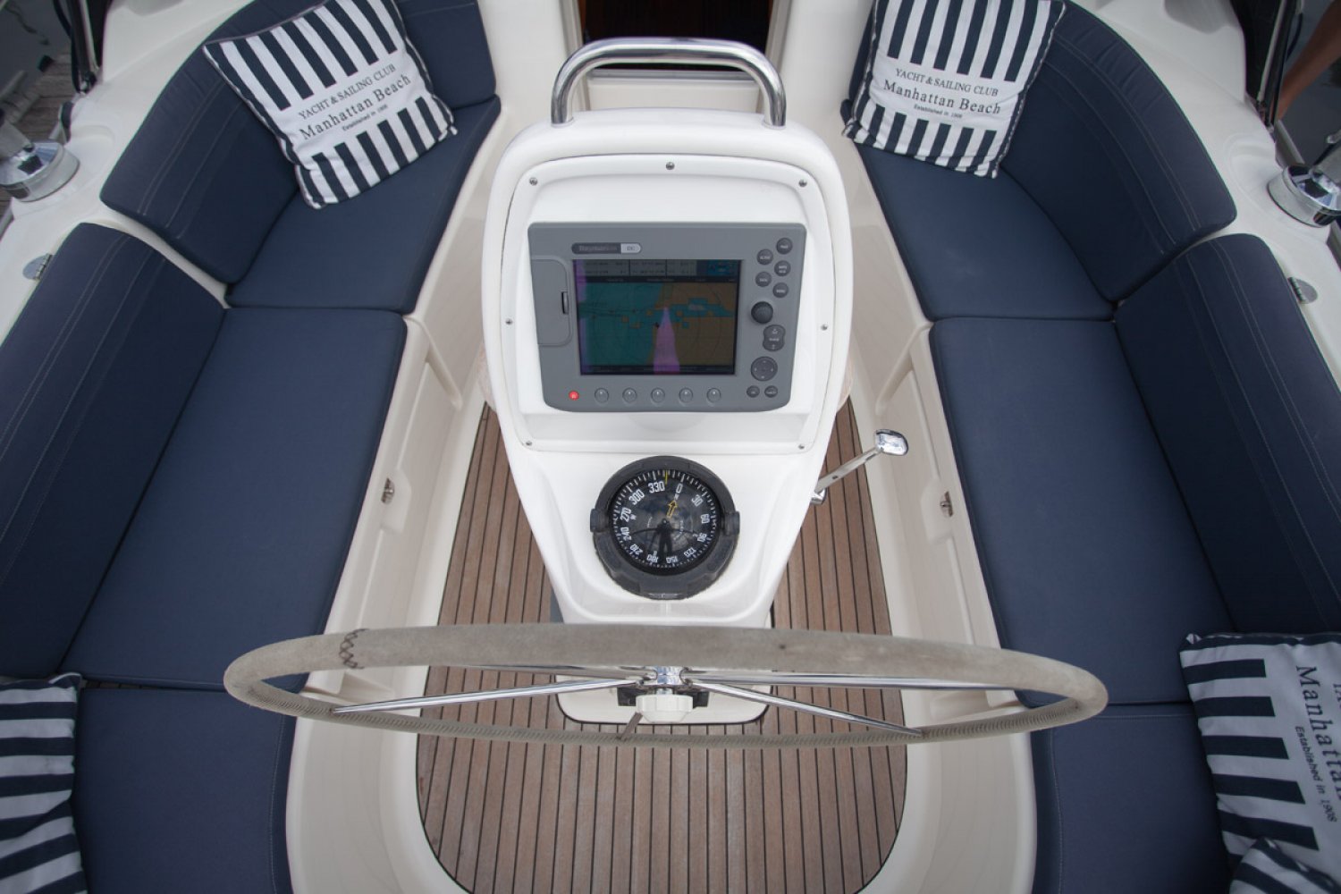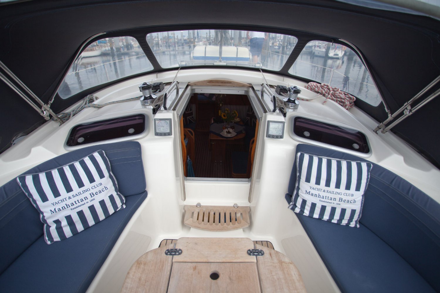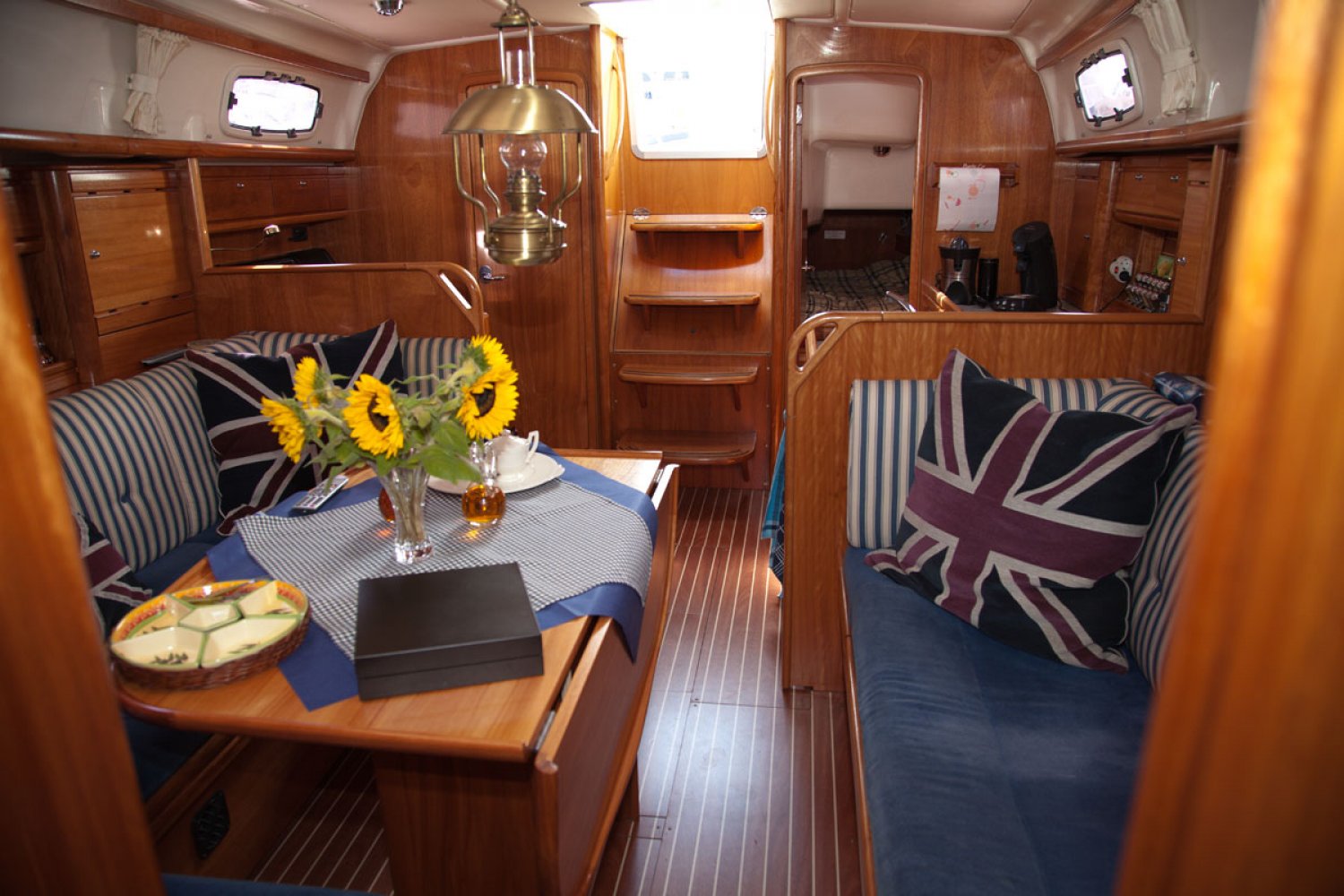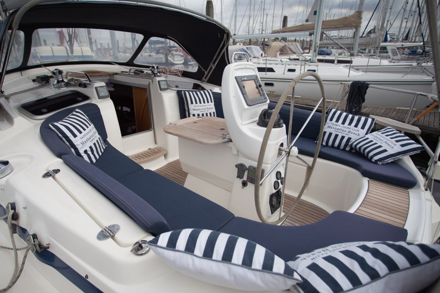 Deze Bavaria 37 in 2 hutten uitvoering van eerste particuliere eigenaar is bijzonder goed onderhouden en zeer volledig uitgevoerd. Zij is gebouwd in najaar 2005 en in gebruik genomen in 2006. De boot is zeer ruim en praktisch ingedeeld en heeft prima vaareigenschappen zowel onder zeil als op de motor. De kuip is voorzien van teakhout op de banken, en fraaie buitenkussens. Aan stuurboord treft u een diepe bakskist met daarin voldoende ruimte voor grote zaken als vouwfietsen. Aan bakboord en in de kuiptafel is eveneens bergruimte. Op de stuurstand hebt u goed overzicht en controle over het jacht. Op de stuurstand bevinden zich het kompas, stuurautomaat en het C80 plotter/radar scherm. Het zwemplatform is gemakkelijk bereikbaar via de demontabele achterbank. Aan de sprayhood kan eenvoudig een kuiptent worden geritst zodat er extra leefruimte ontstaat voor minder mooie dagen. Bij uw afwezigheid is de kuip met zijn teakhout en instrumenten eveneens goed beschermd. Het interieur is erg ruim met een uitstekende afwerking van het hout en heel veel kastruimte. Er zijn 4 vaste slaapplaatsen in de twee dubbele hutten. De voorhut is voorzien van een groot bed met latex matrassen en een grote kledingkast. Aan stuurboord naast de kajuitingang is een de natte cel met douche en bergruimte voor zeilkleding. De achterhut is voorzien van een groot bed en voldoende bergruimte. In het midden van het schip is de gezellige salon welke is voorzien van een rechte en royale U-vormige bank. De keuken in L-vorm is voorzien van alle gemakken. Aan stuurboord is de kaartentafel met onder andere marifoon en Webasto bediening. Deze Bavaria 37-2 is in een prima staat van onderhoud en volledig vaarklaar. Als u een ruim en comfortabel schip zoekt voor een aantrekkelijke prijs, dan is deze Bavaria zeker de moeite waard. Bent u geïnteresseerd, maakt u dan een afspraak voor een bezichtiging in IJmuiden via [email protected]. Uw jachtmakelaar is Robert de Vries, +31(0)6 5020 1336.
