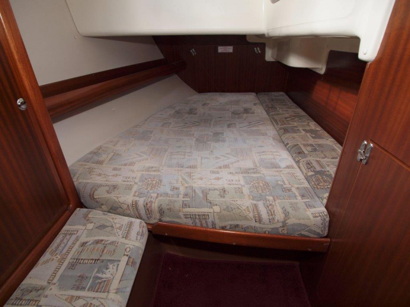 Fraai onderhouden en goed uitgeruste Bavaria 35 Holiday. Dit schip is reeds vele jaren in bezit van de huidige eigenaar welke er altijd zeer netjes mee om is gegaan. De Bavaria 35 Holiday wordt gekenmerkt door de praktische gebruiksmogelijkheden en de ruime indeling van het interieur. Verder heeft het schip compacte buitenmaten en toch drie ruime hutten wat het een perfect schip maakt voor een gezin. De kuip van het schip is lekker ruim en is voorzien van een kuiptafel en een recente kuiptent met sprayhood. De eigenaar heeft deze kuiptent zo laten maken dat het mogelijk is de zijwanden op te laten staan en alleen het "dak" te verwijderen. Hiermee kunt u wel van de buitenlucht genieten maar zit u niet in de wind. Verder valt aan dek op op dat de gangboorden ruim zijn wat een rondgang over het dek gemakkelijk maakt. En als u helemaal niet aan dek wilt zijn, is dat ook geen probleem. Dit schip is voorzien van een rolgrootzeil en genua zodat u in principe de kuip helemaal niet meer uithoeft. Dit maakt het zeilen met dit schip een gemakkelijke en veilige onderneming. Binnen in het schip wordt u ontvangen door een warme en nautische salon. Alles is mooi afgewerkt met mahonie en valt op door de praktische indeling. Aan stuurboord vind u de kaartentafel met apparatuur en schakel paneel. Hier tegenover is de natte cel met douche gelegenheid. Midscheeps is aan stuurboord een ruime rondzit met tafel waar alle opvarende gezellig aankunnen schuiven. Aan bakboord het in lengte geplaatste kombuis voorzien van fornuis, warm en koud stromend water, koelkast en veel opberg ruimte. In de voorpiek is de eigenaarshut, met dubbel bed, kastruimte en zelfs een bankje. In het achterschip zijn de twee dubbele hutten. Samen heeft deze 35 voeter dus 6 vaste slaapplaatsen. Mocht een ruim schip zoeken met voor iedereen een eigen hut maar wel graag met overzichtelijk buitenmaten, dan is deze Bavaria 35 Holiday een perfect schip voor u. Het schip is uitstekend onderhouden, compleet uitgerust en vaarklaar voor de nieuwe eigenaar. We horen u dan ook graag om een afspraak te maken voor een bezichtiging.
