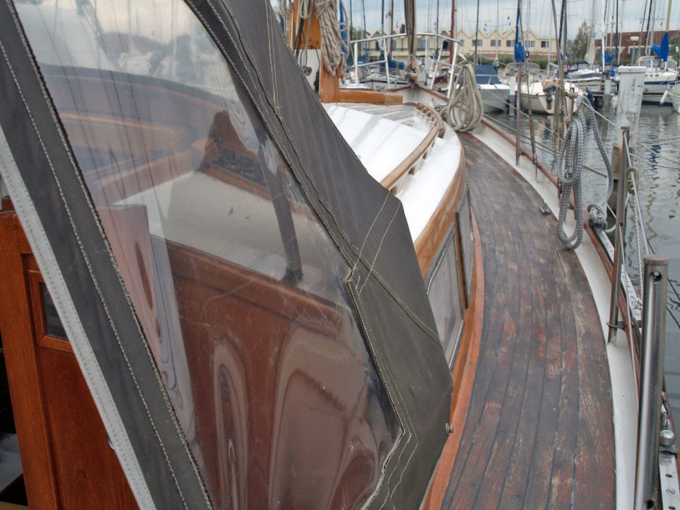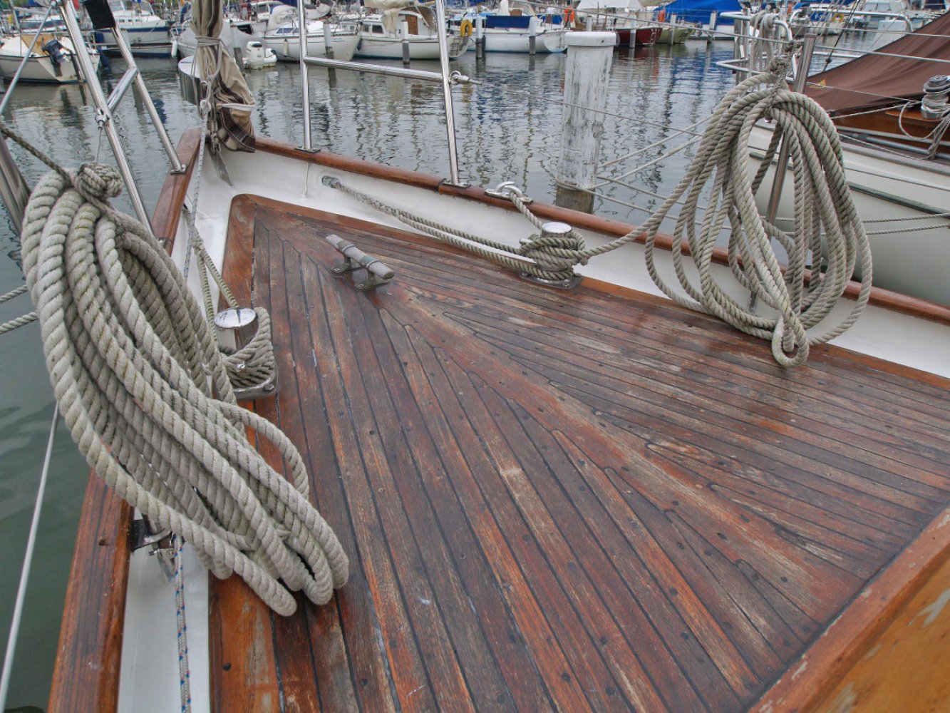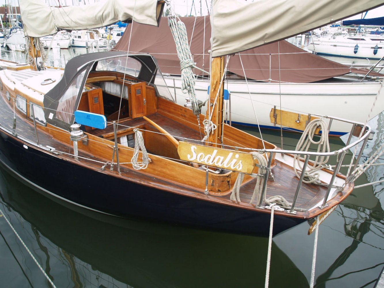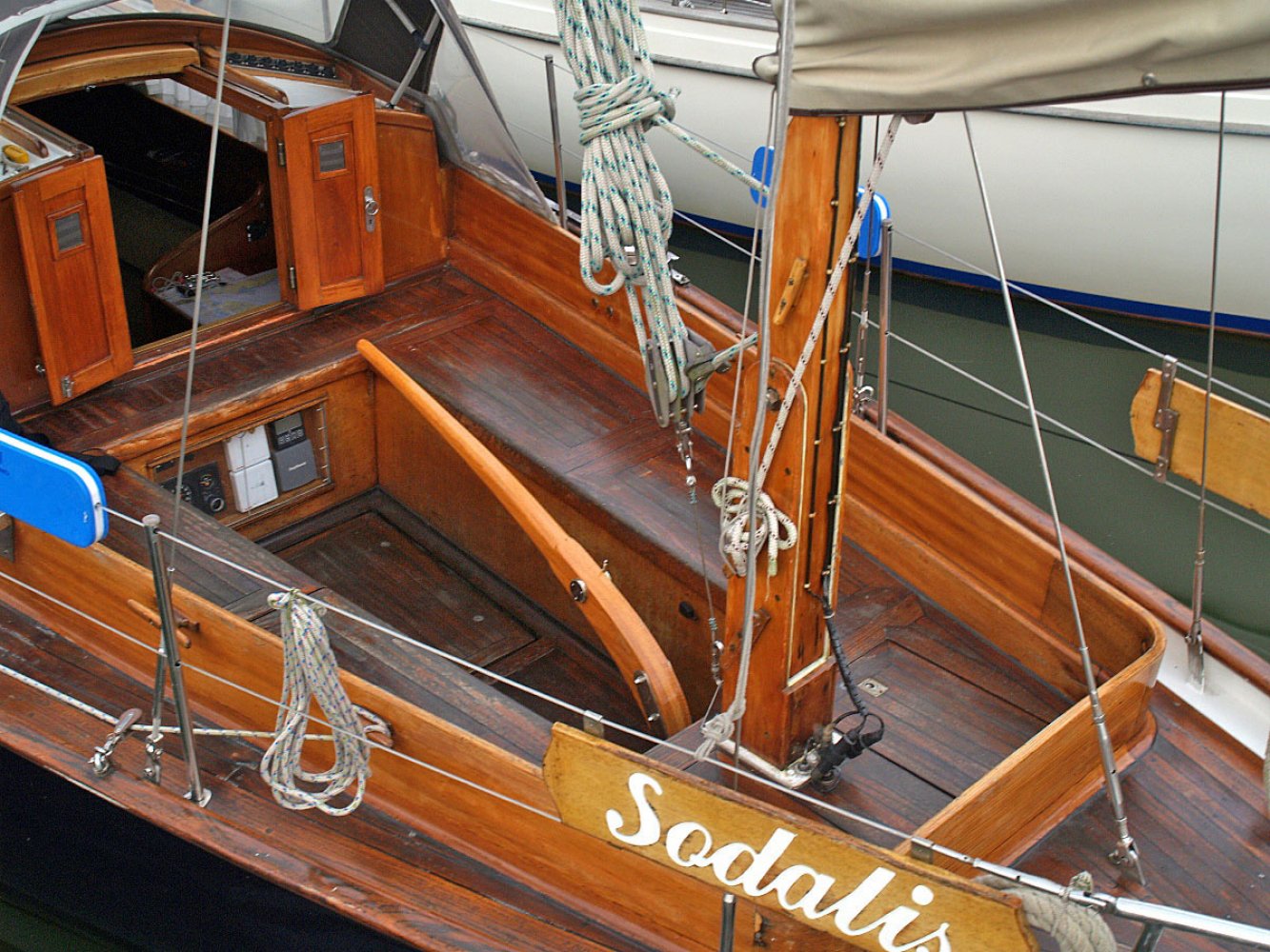 De Marken III die wij u aanbieden is een ontwerp van Alan Buchanan. Zij is gebouwd in 1972 bij jachtwerf Dekker aan de Diemerzeedijk in Amsterdam. De boot is met veel liefde en toewijding verzorgd door de huidige eigenaar die haar vele jaren in bezit heeft gehad. De Sodalis mag met recht een moderne klassieker worden genoemd en is volledig vaarklaar. De yawl tuigage, de achterste mast staat achter het roer, en de s-spant rompvorm maken deze boot zeer koersvast onder zeil. Ze is daarmee geschikt voor groot open water. De romp is van staal, het dek van teak en interieur en opbouw van Bruynzeel hechthout. Het teak dek is behandeld met het Owatrol systeem en heeft wat lak onderhoud nodig. De houten masten zijn in goede staat net als de zeilen al zijn de laatste al wel wat ouder. Het hijsen en reven van grootzeil en bezaan gebeurt bij de mast en de genua heeft een rolreef. Er zijn ook nog een stormfok en spinnaker. De kuip biedt voldoende plaats aan een bemanning van 4 tot 5 personen. Onder de vloer is de motorruimte. De Volvo Penta van 36 pk is in 1985 geplaatst en de elektronica is vervangen en netjes aangelegd. Het interieur is opvallend ruim met voldoende sta hoogte ook voor lange mensen. Er is een eenvoudige kombuis en navigatie tafel. In het vooronder is een tweepersoons hut en toilet ruimte met er tegenover een hangkast. Stuurboord achter is een loodskooi. De banken in de salon zijn ook geschikt als slaapplaats zodat er maar liefst 5 slaapplaatsen zijn. Voor wie gevoelig is voor de charme van klassieke jachten is dit een interessant jacht. De boot heeft s winters altijd binnen gestaan en is in Monnickendam te bezichtigen. Deze boot wordt bemiddeld via kantoor White Whale Yachtbrokers Enkhuizen. Heeft u belangstelling neem dan contact op via [email protected] of +31(0)228 855 380 voor meer informatie of het maken van een afspraak voor bezichtiging aan boord. Bezichtigingen zijn mogelijk van maandag t/m zaterdag.
