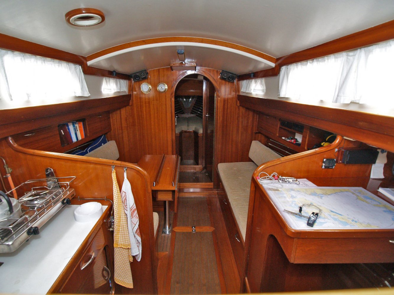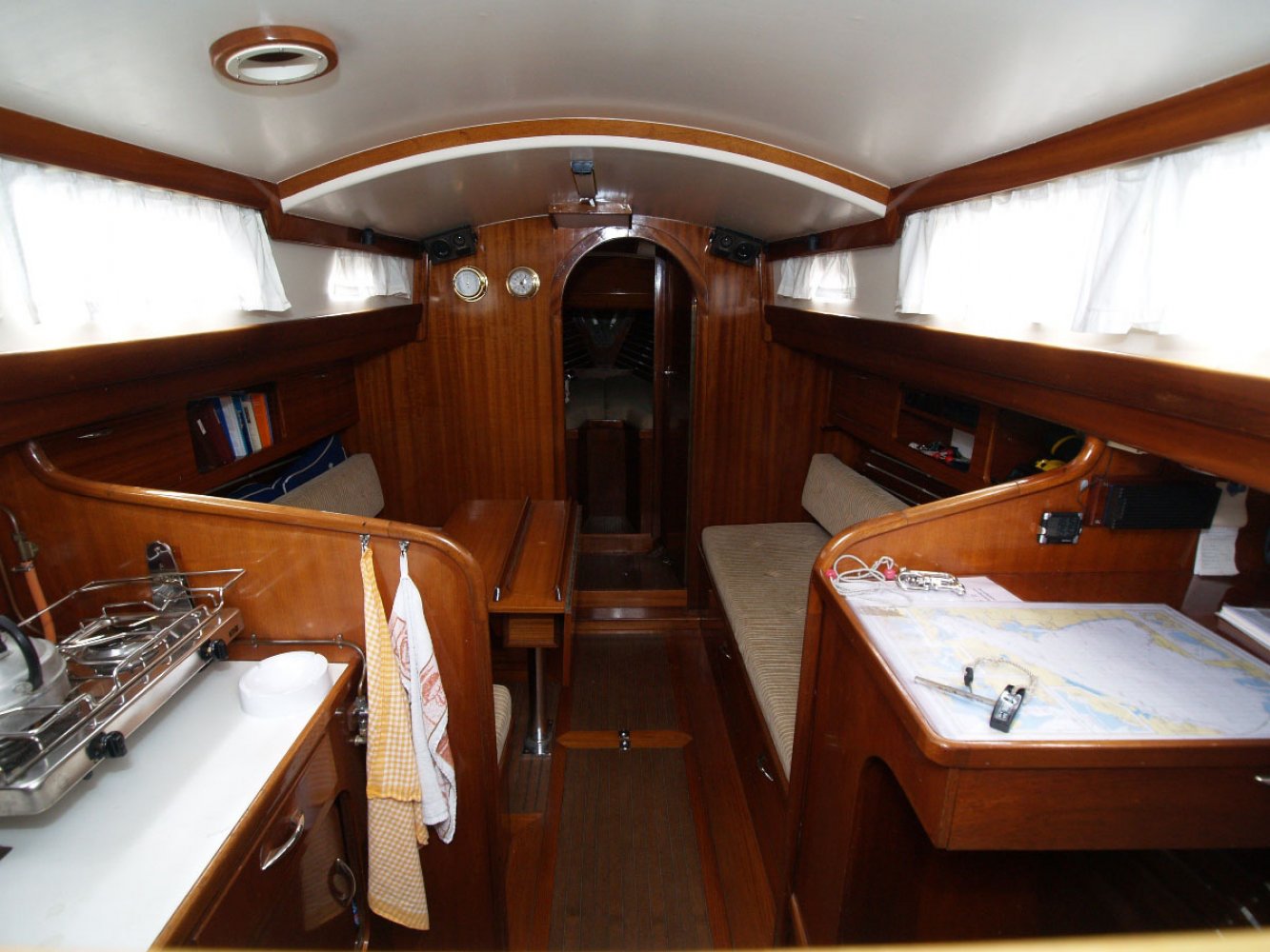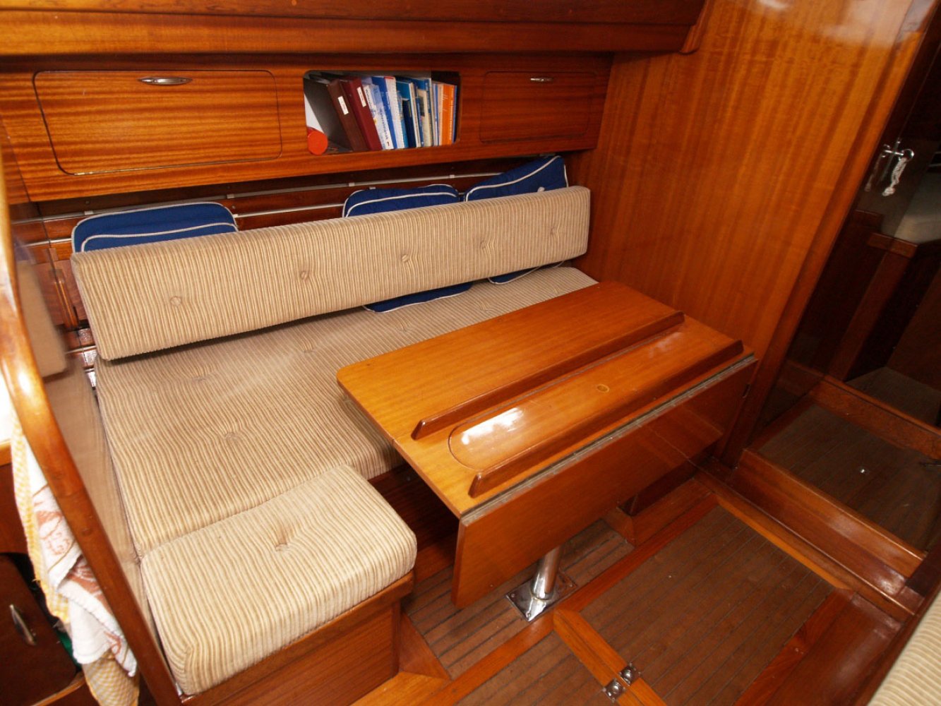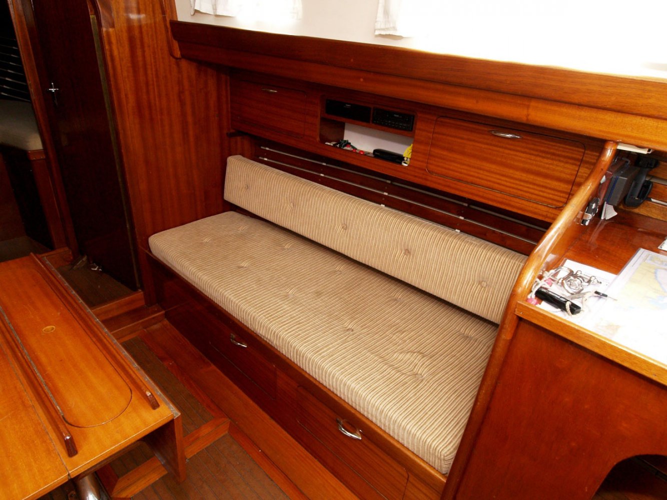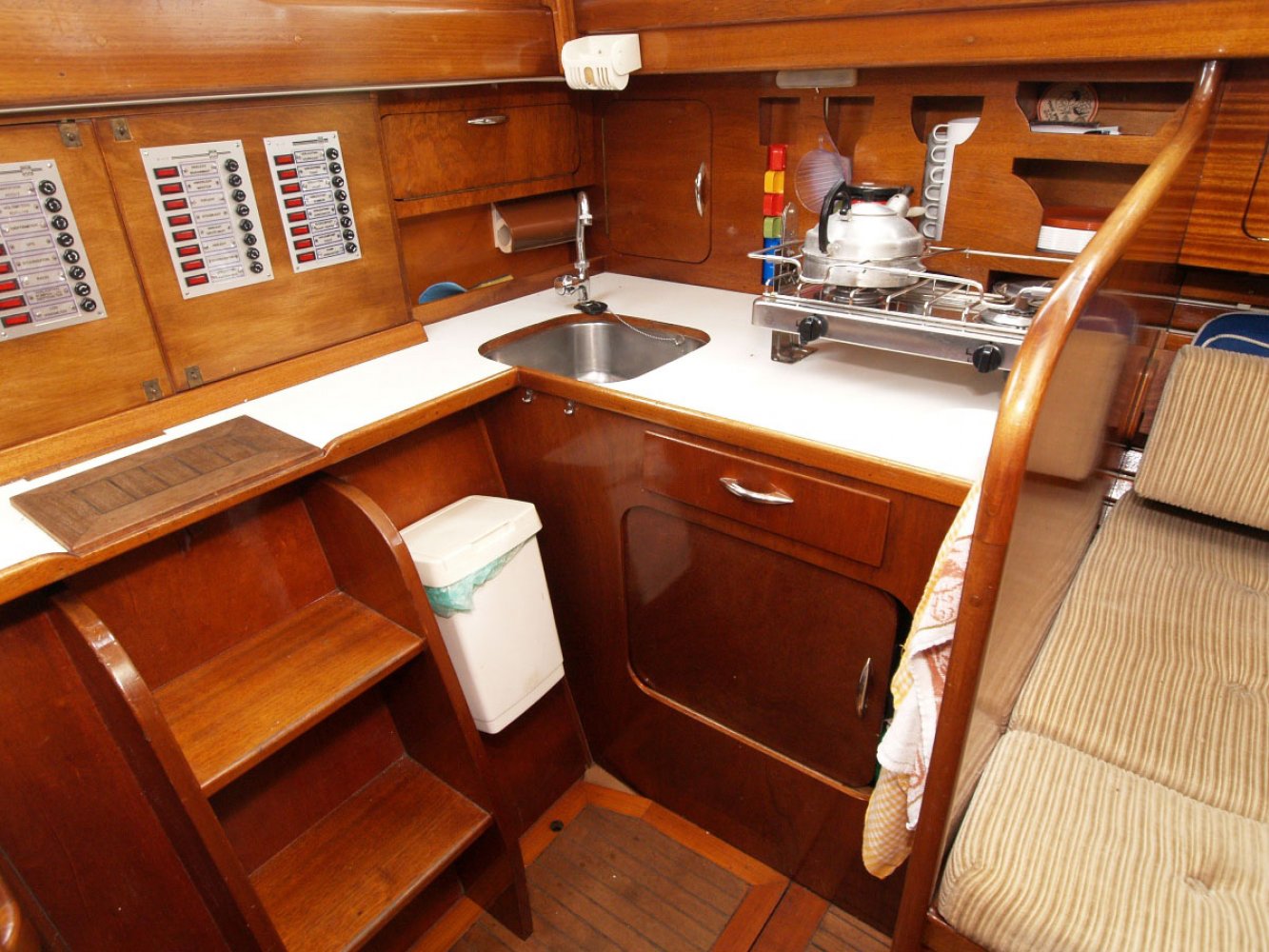 De Marken III die wij u aanbieden is een ontwerp van Alan Buchanan. Zij is gebouwd in 1972 bij jachtwerf Dekker aan de Diemerzeedijk in Amsterdam. De boot is met veel liefde en toewijding verzorgd door de huidige eigenaar die haar vele jaren in bezit heeft gehad. De Sodalis mag met recht een moderne klassieker worden genoemd en is volledig vaarklaar. De yawl tuigage, de achterste mast staat achter het roer, en de s-spant rompvorm maken deze boot zeer koersvast onder zeil. Ze is daarmee geschikt voor groot open water. De romp is van staal, het dek van teak en interieur en opbouw van Bruynzeel hechthout. Het teak dek is behandeld met het Owatrol systeem en heeft wat lak onderhoud nodig. De houten masten zijn in goede staat net als de zeilen al zijn de laatste al wel wat ouder. Het hijsen en reven van grootzeil en bezaan gebeurt bij de mast en de genua heeft een rolreef. Er zijn ook nog een stormfok en spinnaker. De kuip biedt voldoende plaats aan een bemanning van 4 tot 5 personen. Onder de vloer is de motorruimte. De Volvo Penta van 36 pk is in 1985 geplaatst en de elektronica is vervangen en netjes aangelegd. Het interieur is opvallend ruim met voldoende sta hoogte ook voor lange mensen. Er is een eenvoudige kombuis en navigatie tafel. In het vooronder is een tweepersoons hut en toilet ruimte met er tegenover een hangkast. Stuurboord achter is een loodskooi. De banken in de salon zijn ook geschikt als slaapplaats zodat er maar liefst 5 slaapplaatsen zijn. Voor wie gevoelig is voor de charme van klassieke jachten is dit een interessant jacht. De boot heeft s winters altijd binnen gestaan en is in Monnickendam te bezichtigen. Deze boot wordt bemiddeld via kantoor White Whale Yachtbrokers Enkhuizen. Heeft u belangstelling neem dan contact op via [email protected] of +31(0)228 855 380 voor meer informatie of het maken van een afspraak voor bezichtiging aan boord. Bezichtigingen zijn mogelijk van maandag t/m zaterdag.