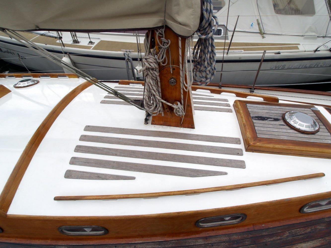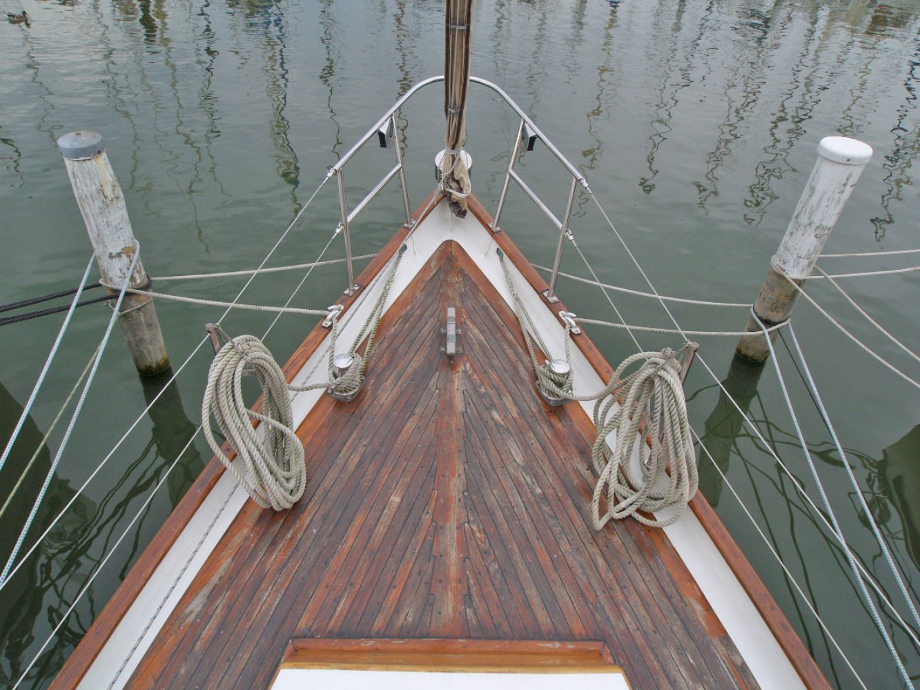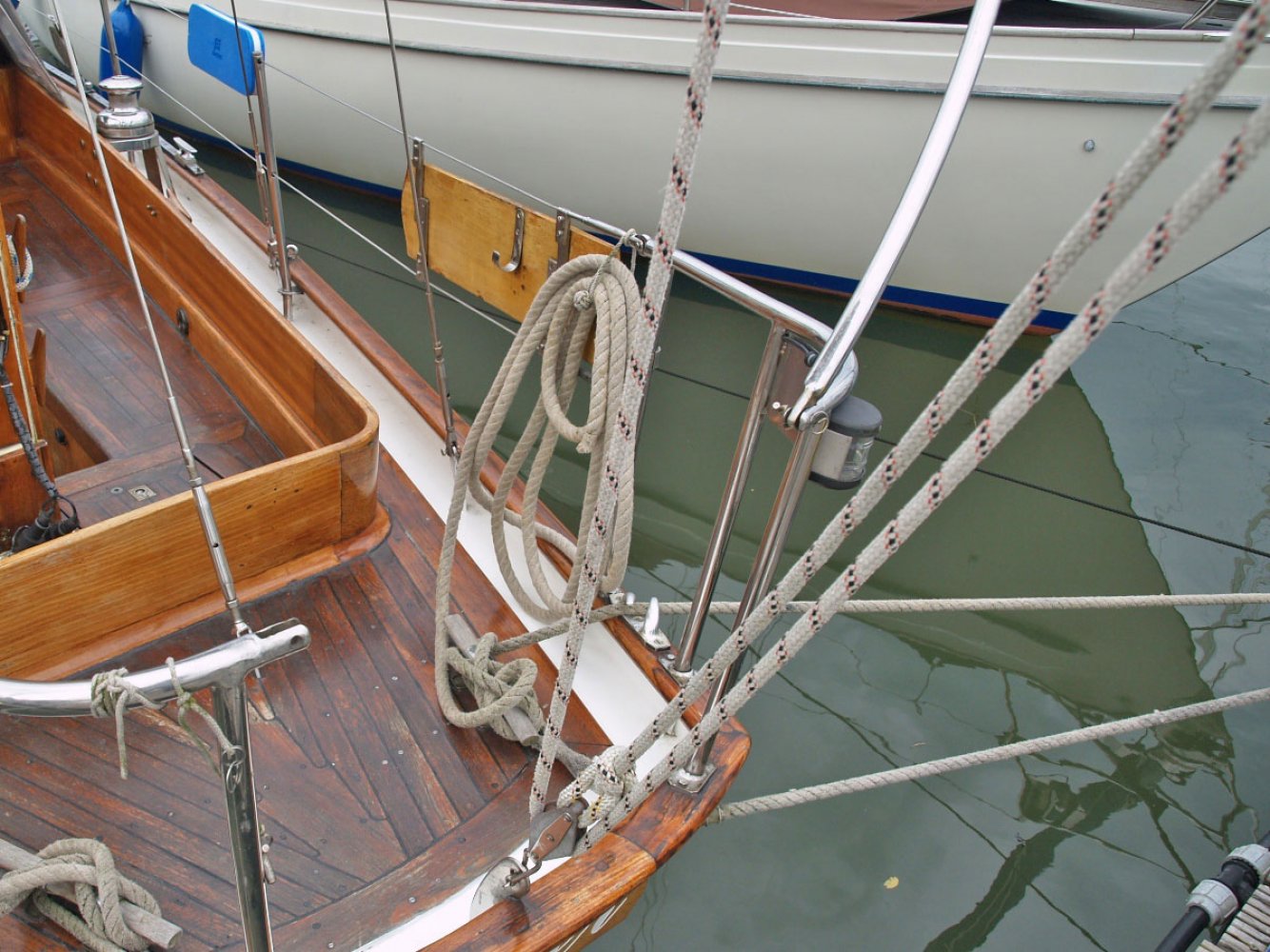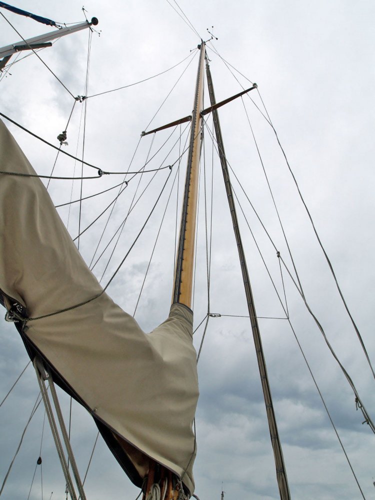 Hout houten masten en gieken, rvs verstaging