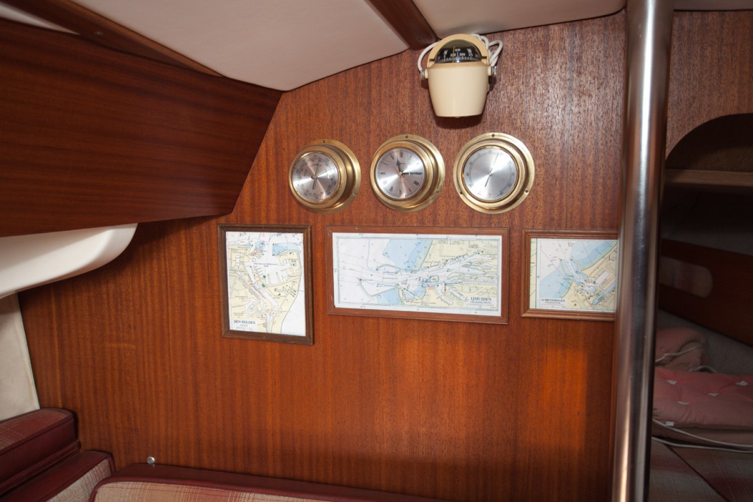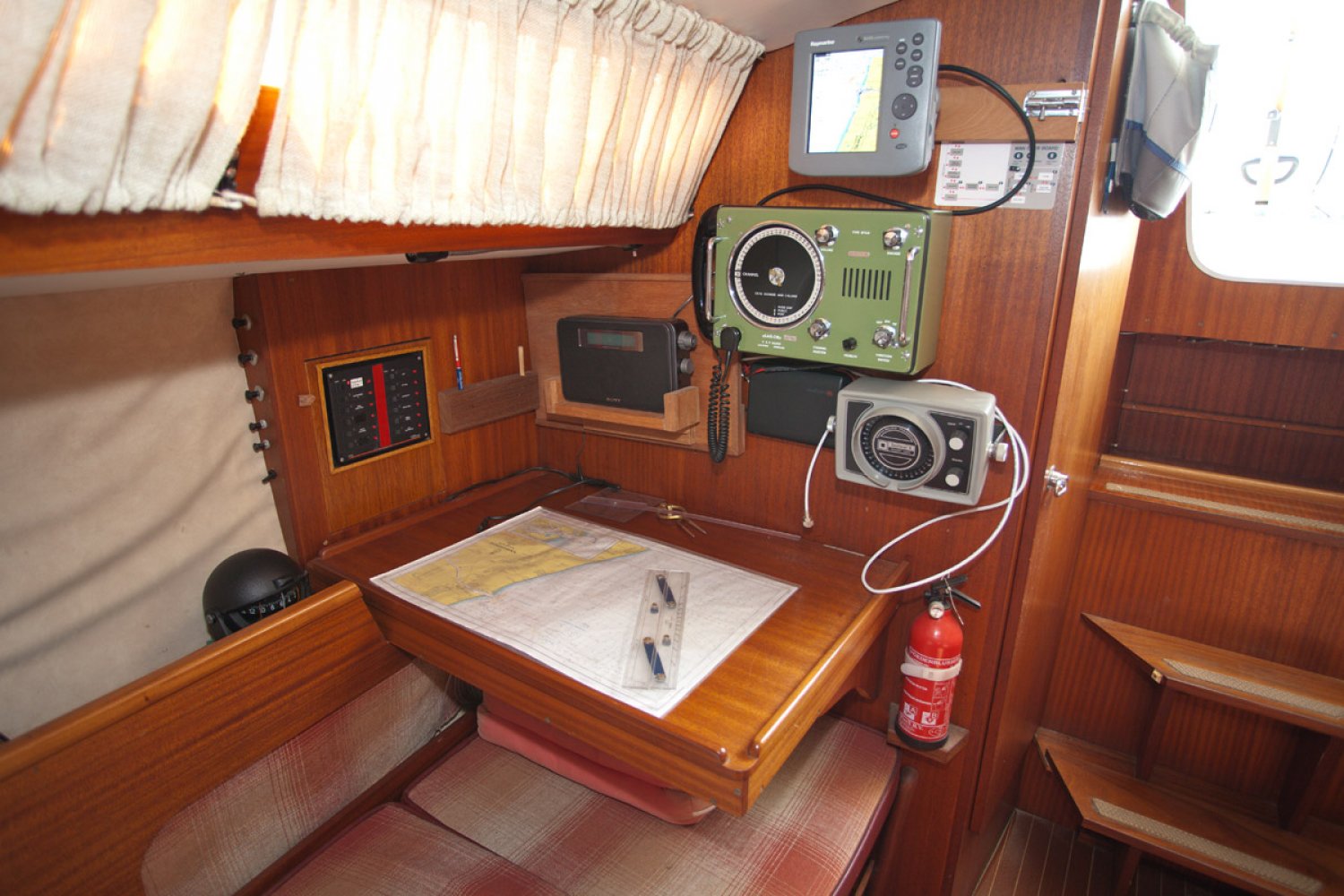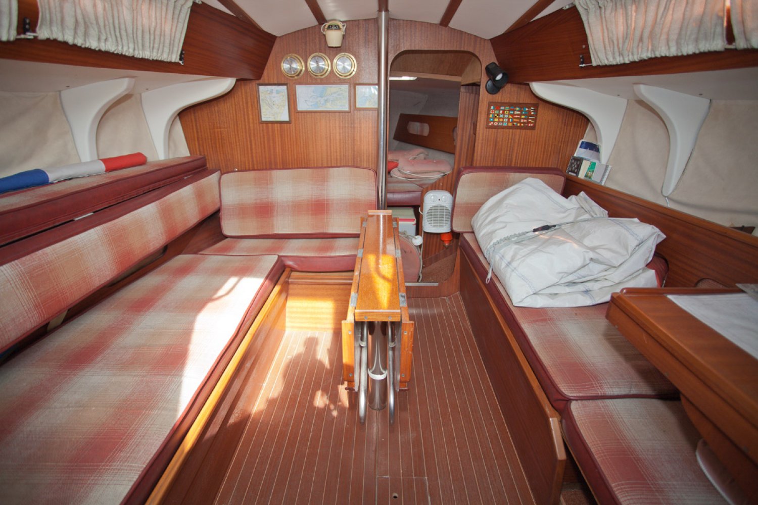 De Jeanneau Aquilla die wij u aanbieden is van de 1e eigenaar (!). Deze heeft netjes op de boot gepast en steeds het noodzakelijke onderhoud verricht. De kuip is lekker ruim en het dek goed begaanbaar. De voorzeilen staan op een furler, en het grootzeil wordt met een bindrif gereefd. Het interieur is praktisch ingedeeld. Er zijn in de salon 2 langsbanken waarvan er één kan worden opgeklapt en tot bed kan worden omgebouwd. Links van de ingang is de kombuis met 2 pits spiritus kookstel. Rechts is de navigatie tafel met o.a. marifoon en plotter. Rechts achter is de natte cel met toilet en wastafel. In de boeg is een tweepersoonskooi en de nodige bergruimte. Er is hier ook een losse koelbox en verwarming op walstroom. De motor is te bereiken door de trap weg te nemen en start vlot. Voor wie een goed zeilend zeewaardig jacht zoekt is deze Aquilla een goede keuze voor een interessante prijs. Hebt u belangstelling neemt u dan contact op via enkhuizen @wwy.nl. Uw jachtmakelaar is Robert de Vries