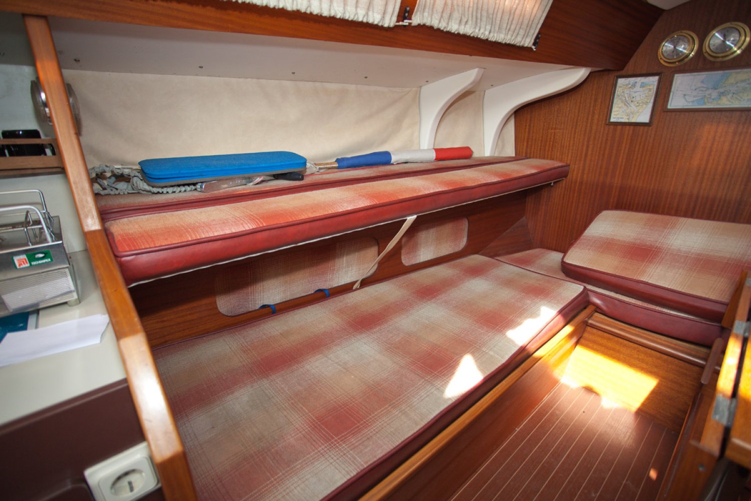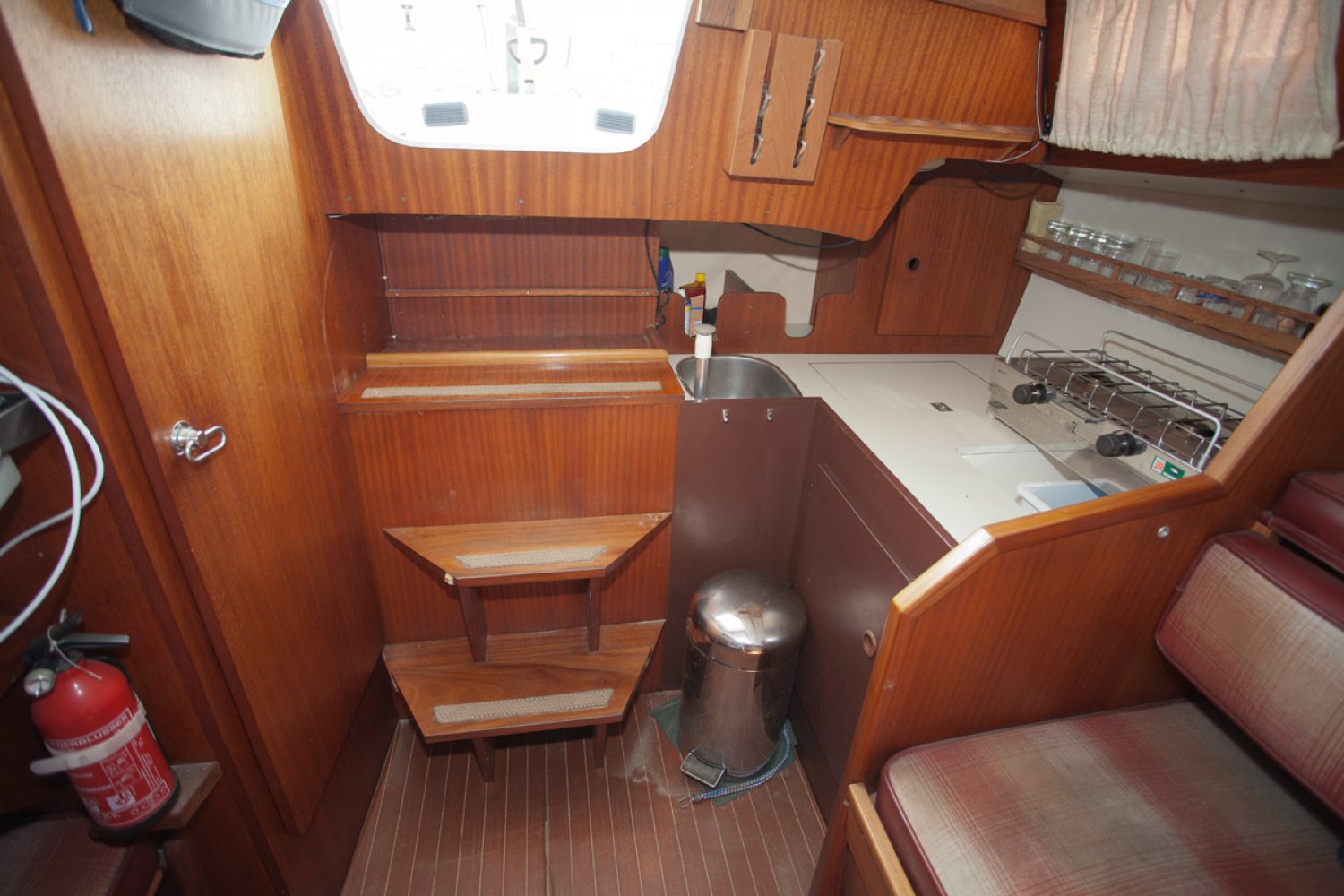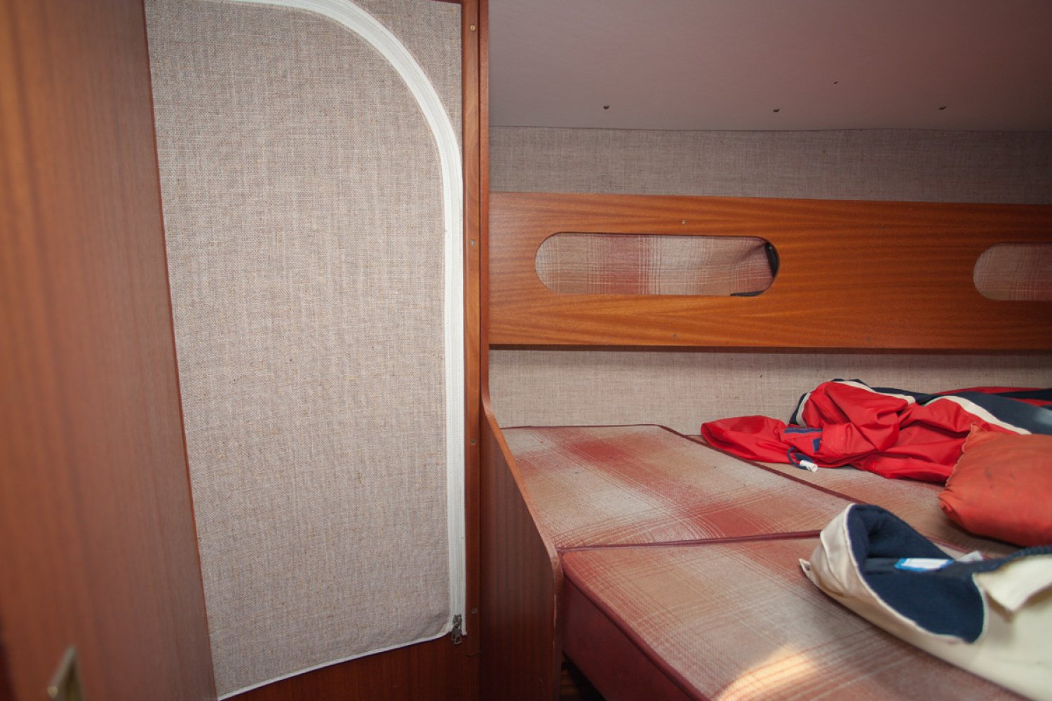 De Jeanneau Aquilla die wij u aanbieden is van de 1e eigenaar (!). Deze heeft netjes op de boot gepast en steeds het noodzakelijke onderhoud verricht. De kuip is lekker ruim en het dek goed begaanbaar. De voorzeilen staan op een furler, en het grootzeil wordt met een bindrif gereefd. Het interieur is praktisch ingedeeld. Er zijn in de salon 2 langsbanken waarvan er één kan worden opgeklapt en tot bed kan worden omgebouwd. Links van de ingang is de kombuis met 2 pits spiritus kookstel. Rechts is de navigatie tafel met o.a. marifoon en plotter. Rechts achter is de natte cel met toilet en wastafel. In de boeg is een tweepersoonskooi en de nodige bergruimte. Er is hier ook een losse koelbox en verwarming op walstroom. De motor is te bereiken door de trap weg te nemen en start vlot. Voor wie een goed zeilend zeewaardig jacht zoekt is deze Aquilla een goede keuze voor een interessante prijs. Hebt u belangstelling neemt u dan contact op via enkhuizen @wwy.nl. Uw jachtmakelaar is Robert de Vries