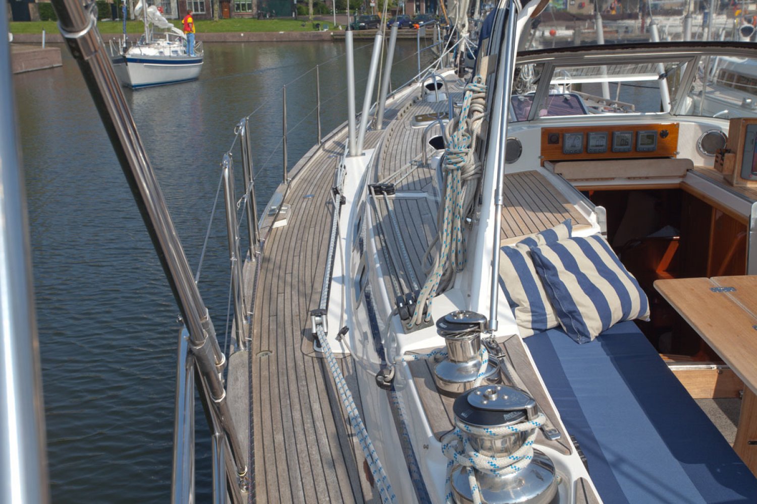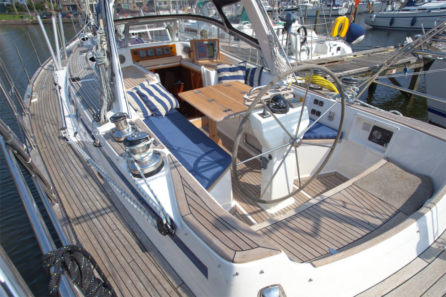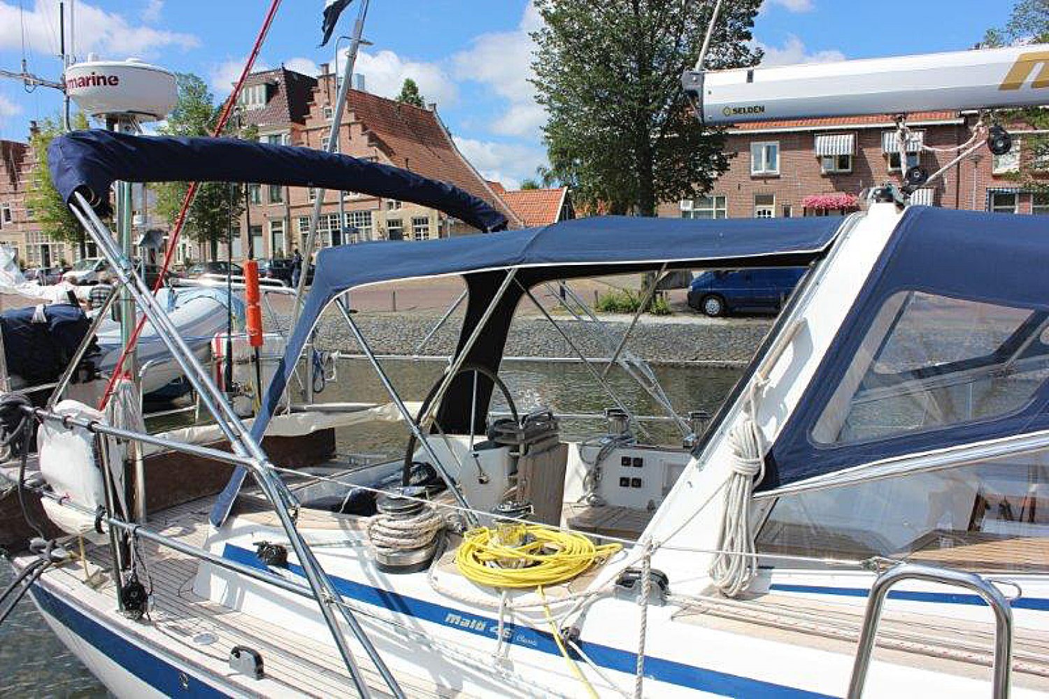 Inruil bespreekbaar. Malö Yachts is een van de oudste en meest ervaren Zweedse jachtbouwers. De werf behoeft zeker geen introductie bij ervaren zeilers. De Malö 46 is een jacht van hoge kwaliteit en gebouwd als een echte offshore zeiljacht voor de veeleisende zeiler. Het is de ideale comfortabele vertrekkers boot. De huidige 1e eigenaar heeft bij de bouw een aantal aanpassingen laten doen die in latere modellen zijn overgenomen door de werf. Ze is ideaal voor serieuze, lange afstand cruisen en lang verblijf aan boord. De centre cockpit is diep, overzichtelijk en men zit er goed beschermd. De targa-boog is multifunctioneel en dient voor de grootschoot traveller en houdt zo losse lijnen uit de weg en de hoofden uit de gevarenzone. Ook dient de boog als de ideale ondersteuning voor handgrepen, de buiskap / cockpit kap en lichtarmaturen. Het teakdek ziet er na nog prachtig uit en de dek-layout is goed uitgekiend. Kikkers, scepters en andere beslag - ze zijn allemaal doorgebout in metalen contraplaten die stevig zijn gelamineerd aan de romp en het dek. Het interieur is zeker zo fraai als de buitenkant. Midscheeps is de salon en hier vindt u weer tal van voorbeelden van het grote vakmanschap. Aan bakboord is de praktische kombuis. Aan stuurboord is de kaartentafel en de ruime natte cel met douche en toilet. In de voorpiek is een dubbele cabine. Afwijkend van de standaard modellen is er hier een gescheiden toilet en douche. In het achterschip zijn nog twee dubbele hutten. De machine kamer is groot en de motor is rondom goed bereikbaar voor service. Voor wie een goed varend, perfect onderhouden en luxueus uitgerust kwaliteitsjacht zoekt is deze Malo 46 een absolute aanrader. Wij nodigen u van harte uit voor een bezichtiging aan boord. Hebt u nog vragen, of wilt u een afspraak maken, neem dan zeker contact met ons op via [email protected]. Uw jachtmakelaar is Robert de Vries, tel. 06-50201336.