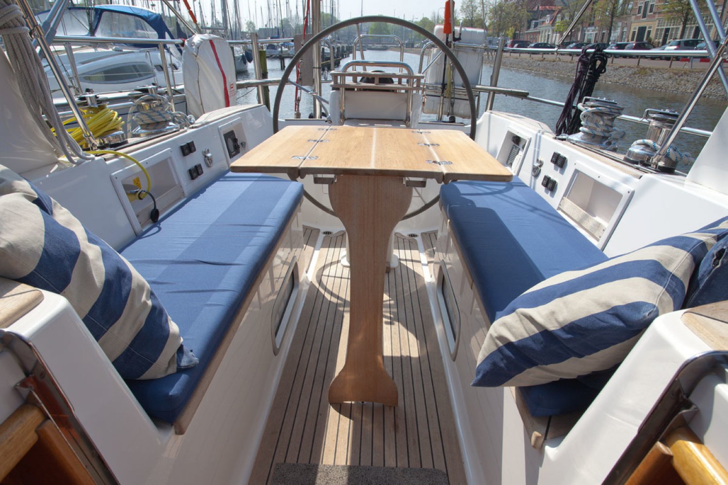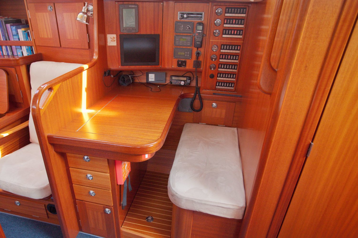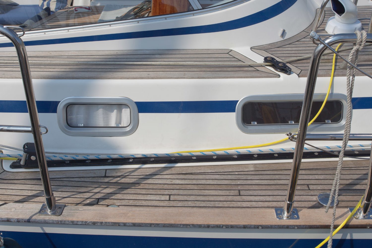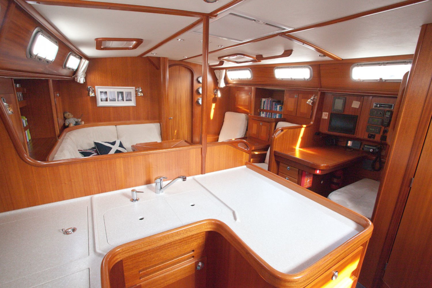 Inruil bespreekbaar. Malö Yachts is een van de oudste en meest ervaren Zweedse jachtbouwers. De werf behoeft zeker geen introductie bij ervaren zeilers. De Malö 46 is een jacht van hoge kwaliteit en gebouwd als een echte offshore zeiljacht voor de veeleisende zeiler. Het is de ideale comfortabele vertrekkers boot. De huidige 1e eigenaar heeft bij de bouw een aantal aanpassingen laten doen die in latere modellen zijn overgenomen door de werf. Ze is ideaal voor serieuze, lange afstand cruisen en lang verblijf aan boord. De centre cockpit is diep, overzichtelijk en men zit er goed beschermd. De targa-boog is multifunctioneel en dient voor de grootschoot traveller en houdt zo losse lijnen uit de weg en de hoofden uit de gevarenzone. Ook dient de boog als de ideale ondersteuning voor handgrepen, de buiskap / cockpit kap en lichtarmaturen. Het teakdek ziet er na nog prachtig uit en de dek-layout is goed uitgekiend. Kikkers, scepters en andere beslag - ze zijn allemaal doorgebout in metalen contraplaten die stevig zijn gelamineerd aan de romp en het dek. Het interieur is zeker zo fraai als de buitenkant. Midscheeps is de salon en hier vindt u weer tal van voorbeelden van het grote vakmanschap. Aan bakboord is de praktische kombuis. Aan stuurboord is de kaartentafel en de ruime natte cel met douche en toilet. In de voorpiek is een dubbele cabine. Afwijkend van de standaard modellen is er hier een gescheiden toilet en douche. In het achterschip zijn nog twee dubbele hutten. De machine kamer is groot en de motor is rondom goed bereikbaar voor service. Voor wie een goed varend, perfect onderhouden en luxueus uitgerust kwaliteitsjacht zoekt is deze Malo 46 een absolute aanrader. Wij nodigen u van harte uit voor een bezichtiging aan boord. Hebt u nog vragen, of wilt u een afspraak maken, neem dan zeker contact met ons op via [email protected]. Uw jachtmakelaar is Robert de Vries, tel. 06-50201336.
