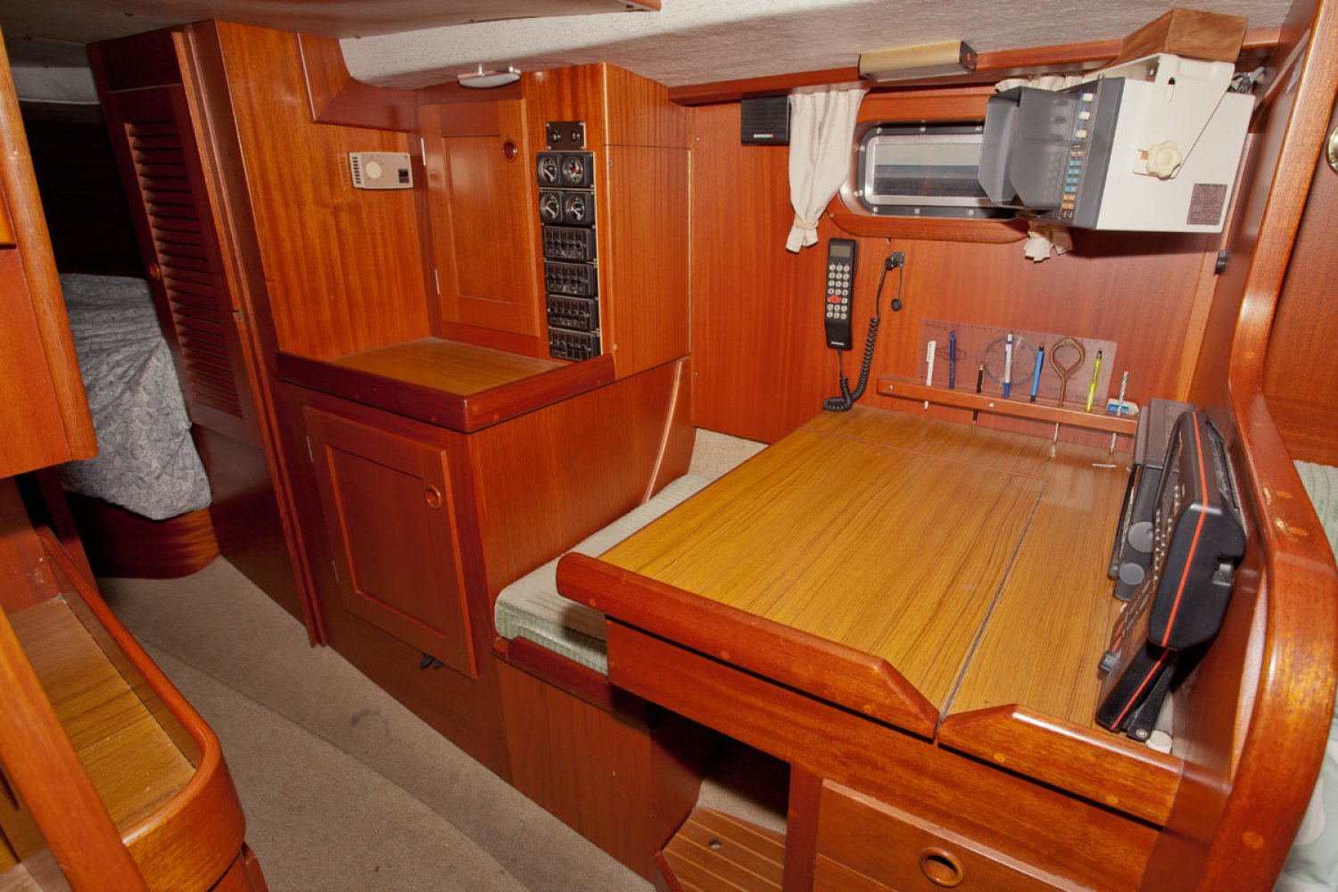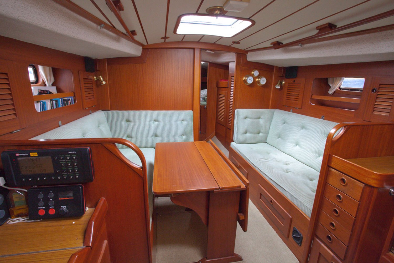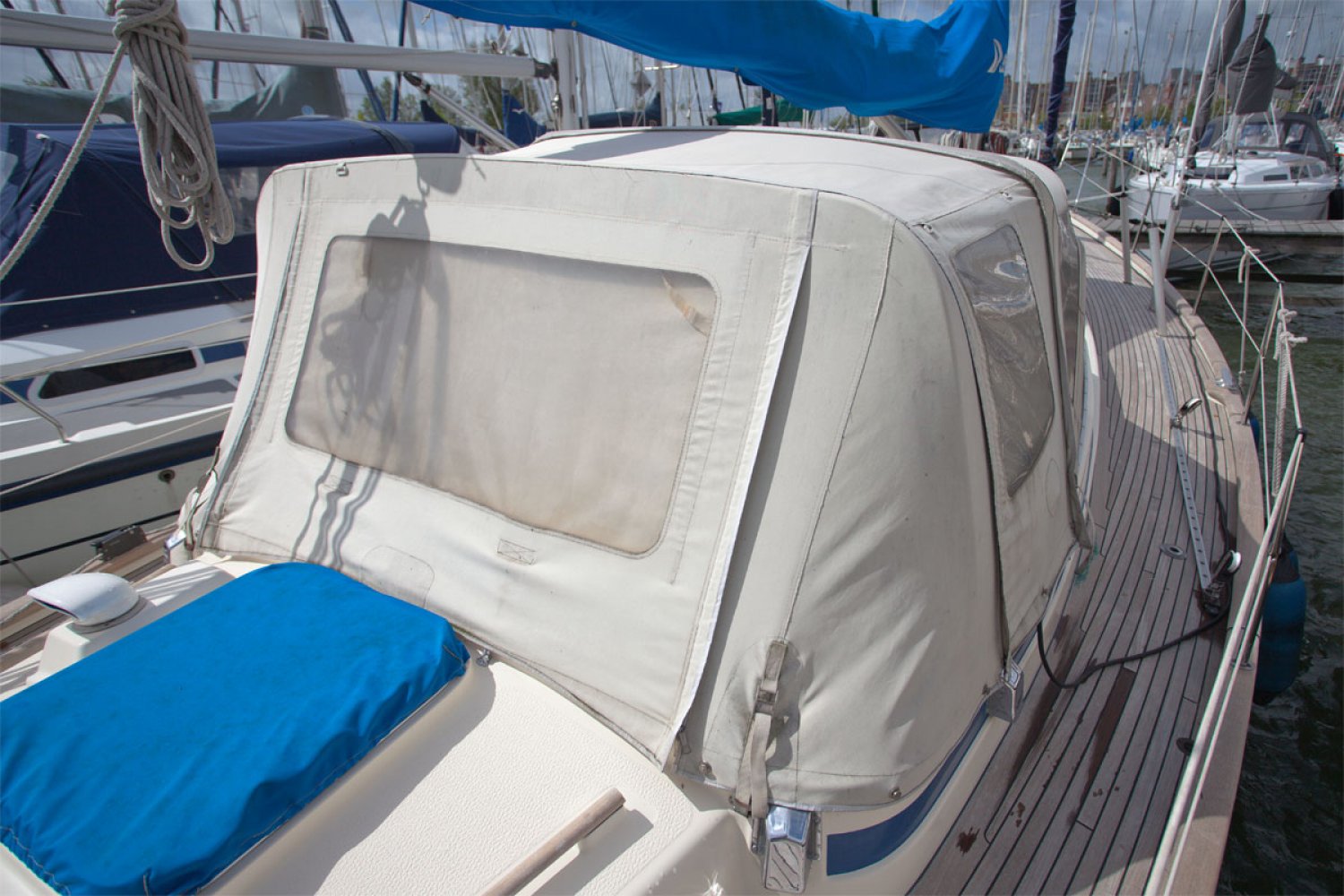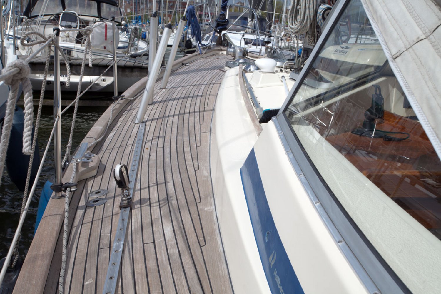 De 352 is één van de succesnummers van Hallberg Rassy. Het ontwerp is vooral populair geworden door het goedmoedige karakter; stabiel en beheersbaar op zee, ook bij veel wind en golven. Prettig is ook de centre cockpit waar men veel beschutting vindt achter de vaste ramen van de buiskap. De boot die wij u aanbieden is een van de laatste uit de serie. Aan een aantal details kan men herkennen dat het model goed is door ontwikkeld. Zo is de doorgang naar de achterhut ruimer dan bij eerdere modellen. Over het algemeen is de boot in goed onderhouden staat. De motor start en loopt goed en het teak dek ziet er zeker nog prima uit gezien de leeftijd. De zeilen zijn van een zware kwaliteit en nog goed te gebruiken. Voor wie een stoer en degelijk kwaliteitsjacht zoekt is deze Hallberg Rassy 352 een interessant jacht. Bent u geïnteresseerd, maakt u een afspraak voor een bezichtiging in Hoorn via [email protected]. Uw jachtmakelaar is Robert de Vries +31(0)6 5020 1336.