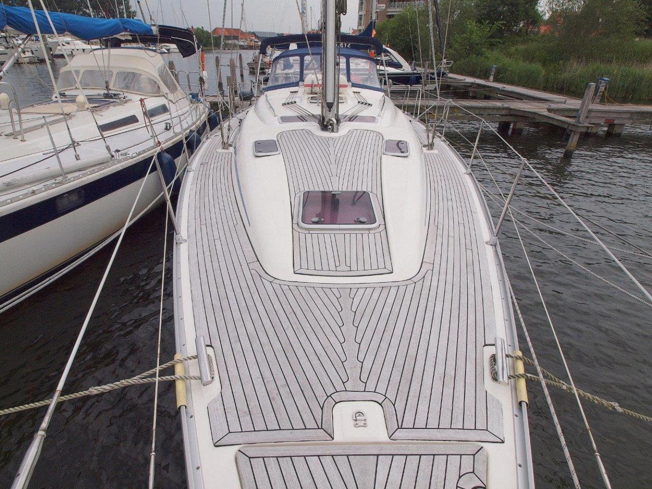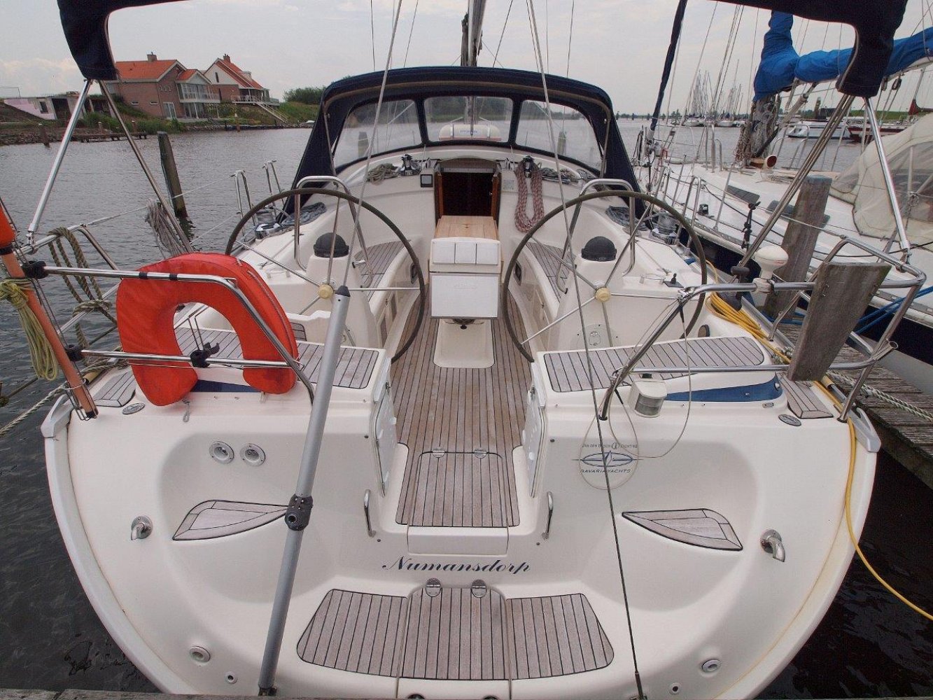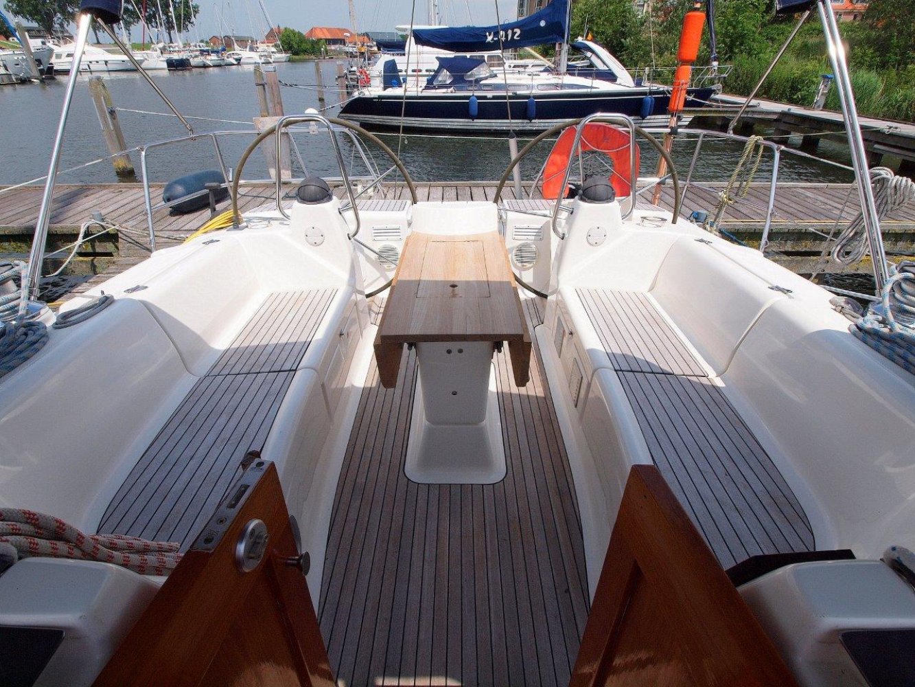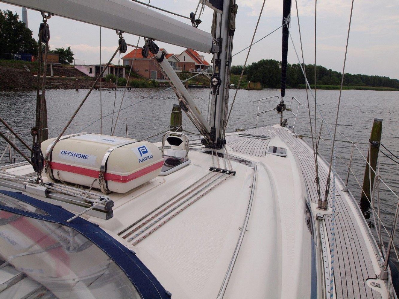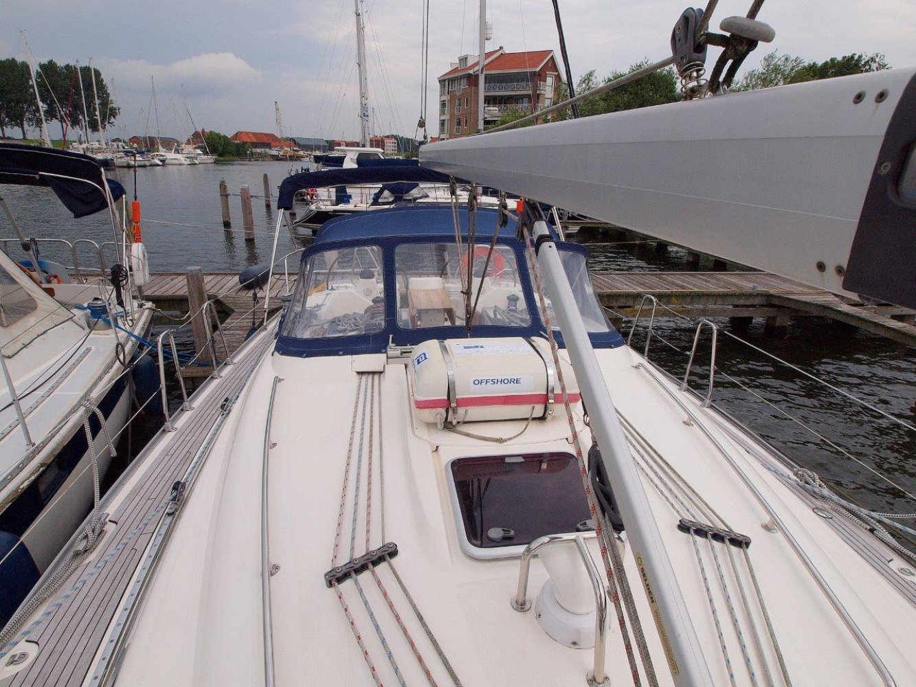 Uitzonderlijk fraaie en complete Bavaria 42 Cruiser met werkelijk alle denkbare opties die de meest verwende zeiler (en bemanning) zich wensen kan. De waslijst aan opties is enorm (van boegschroef tot centrale verwarming), leest u hier verder. De ruime dekken en de enorme kuip zijn geheel voorzien van een fraai teakdek. De kuip heeft ook nog extra op maat gemaakte watervaste kussens voor extra comfort. De veeleisende zeiler zal de hightech rolzeilen (met onder andere 4 verticale latten voor het grootzeil), genua van 2014 en de spinnaker zeker weten te waarderen. Zeilen met dit schip is een waar genoegen, en snelheden van 9 knopen zijn probleemloos haalbaar. Dit komt niet alleen door de fraaie zeilen, maar zeker ook door de diepe loden kiel. Op de motor is natuurlijk ook geen probleem dankzij de lekker lopende Volvo Penta met klapschroef. De extra zwaar uitgevoerde Lewmar 50 lieren (makkelijk elektrisch te maken!) maken de genua beter trimbaar. De stuurman wordt verder verwend met de uitgebreide set aan navigatie apparatuur (met 10" groot draaibaar kleurenscherm voor GPS en radar, gemonteerd bij de stuurwielen) en de aanwezige krachtige boegschroef voor in de haven. Verder zijn er fraaie opties aanwezig als een volledige kuiptent, op maat gemaakte kuipkussens en een bimini. Het interieur is erg fraai en ruim van opzet. Voorzien van 3 ruime dubbele hutten en 2 royale natte cellen. De salon is enorm ruim, evenals het kombuis en de kaartentafel. Ook van binnen is dit schip van werkelijk alle comfort voorzien. Door het gehele schip is een centraal verwarmings systeem van Webasto aangelegd. Dit geeft het comfort van thuis en is niet te vergelijken met een standaard hete lucht verwarming. Verder zijn er extra accu's geïnstalleerd in combinatie met een sterke Mastervolt omvormer van 2KW en een extra 100 Amp dynamo op de motor om bijvoorbeeld de aanwezige magnetron of een koffiezetapparaat ook tijdens het varen te kunnen gebruiken. De eigenaarshut is voorzien van comfort matrassen en een lattenbodem. Verder zijn er ook zaken aanwezig als een flatscreen TV met DVD speler. Een werkelijk fantastisch en zeer compleet zeilschip, direct klaar voor een vakantie of een grote reis. Ook voor wonen aan boord is dit schip zeer geschikt. Wij willen u graag uitnodigen een afspraak met ons te maken om deze zeer bijzondere Bavaria 42 in Tholen te komen bezichtigen.