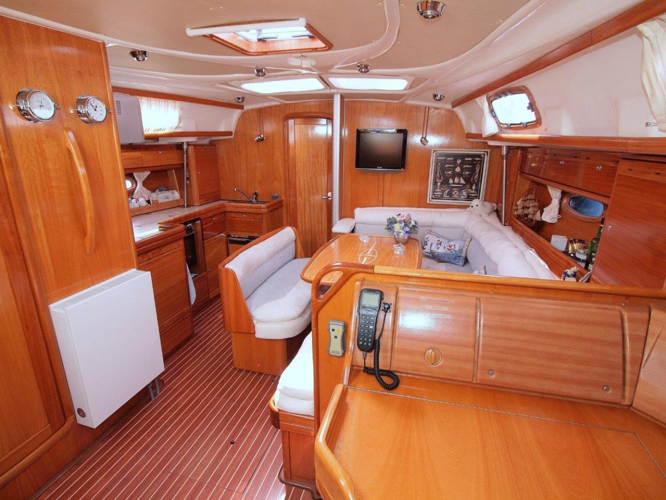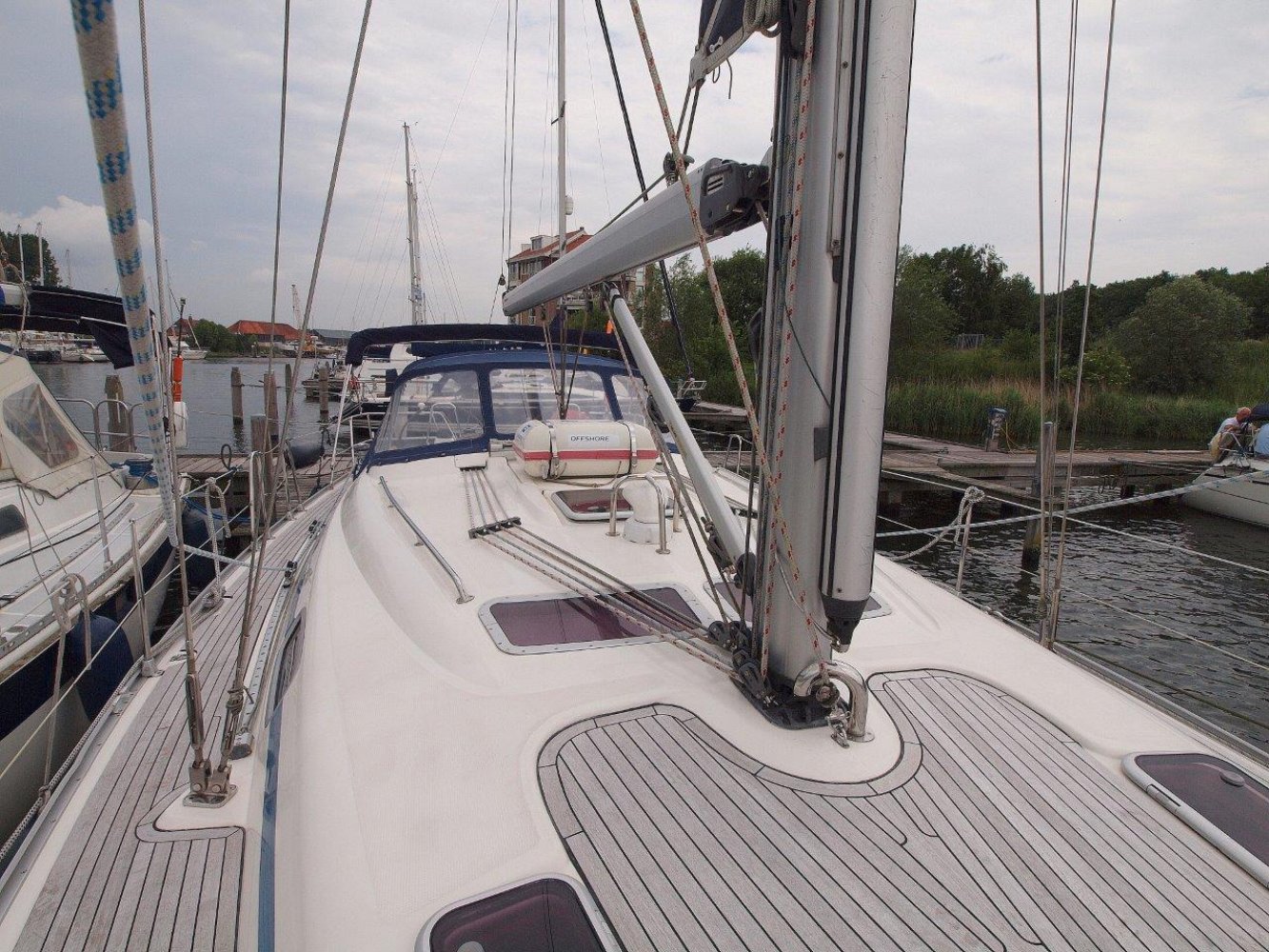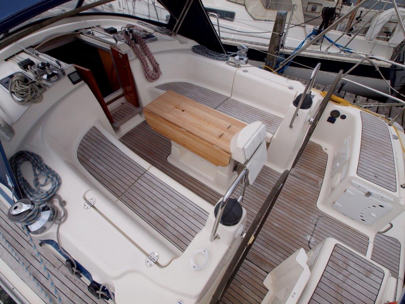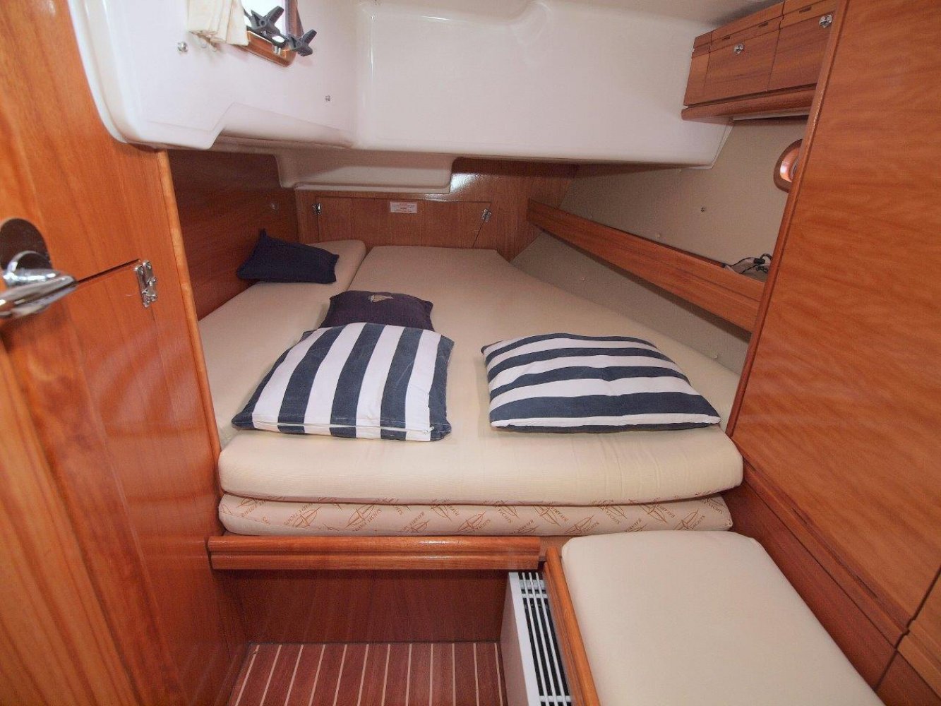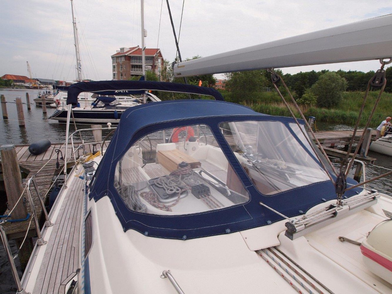 Uitzonderlijk fraaie en complete Bavaria 42 Cruiser met werkelijk alle denkbare opties die de meest verwende zeiler (en bemanning) zich wensen kan. De waslijst aan opties is enorm (van boegschroef tot centrale verwarming), leest u hier verder. De ruime dekken en de enorme kuip zijn geheel voorzien van een fraai teakdek. De kuip heeft ook nog extra op maat gemaakte watervaste kussens voor extra comfort. De veeleisende zeiler zal de hightech rolzeilen (met onder andere 4 verticale latten voor het grootzeil), genua van 2014 en de spinnaker zeker weten te waarderen. Zeilen met dit schip is een waar genoegen, en snelheden van 9 knopen zijn probleemloos haalbaar. Dit komt niet alleen door de fraaie zeilen, maar zeker ook door de diepe loden kiel. Op de motor is natuurlijk ook geen probleem dankzij de lekker lopende Volvo Penta met klapschroef. De extra zwaar uitgevoerde Lewmar 50 lieren (makkelijk elektrisch te maken!) maken de genua beter trimbaar. De stuurman wordt verder verwend met de uitgebreide set aan navigatie apparatuur (met 10" groot draaibaar kleurenscherm voor GPS en radar, gemonteerd bij de stuurwielen) en de aanwezige krachtige boegschroef voor in de haven. Verder zijn er fraaie opties aanwezig als een volledige kuiptent, op maat gemaakte kuipkussens en een bimini. Het interieur is erg fraai en ruim van opzet. Voorzien van 3 ruime dubbele hutten en 2 royale natte cellen. De salon is enorm ruim, evenals het kombuis en de kaartentafel. Ook van binnen is dit schip van werkelijk alle comfort voorzien. Door het gehele schip is een centraal verwarmings systeem van Webasto aangelegd. Dit geeft het comfort van thuis en is niet te vergelijken met een standaard hete lucht verwarming. Verder zijn er extra accu's geïnstalleerd in combinatie met een sterke Mastervolt omvormer van 2KW en een extra 100 Amp dynamo op de motor om bijvoorbeeld de aanwezige magnetron of een koffiezetapparaat ook tijdens het varen te kunnen gebruiken. De eigenaarshut is voorzien van comfort matrassen en een lattenbodem. Verder zijn er ook zaken aanwezig als een flatscreen TV met DVD speler. Een werkelijk fantastisch en zeer compleet zeilschip, direct klaar voor een vakantie of een grote reis. Ook voor wonen aan boord is dit schip zeer geschikt. Wij willen u graag uitnodigen een afspraak met ons te maken om deze zeer bijzondere Bavaria 42 in Tholen te komen bezichtigen.