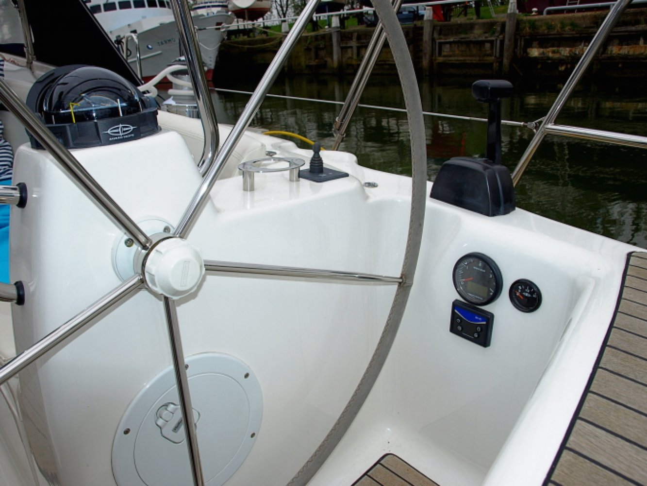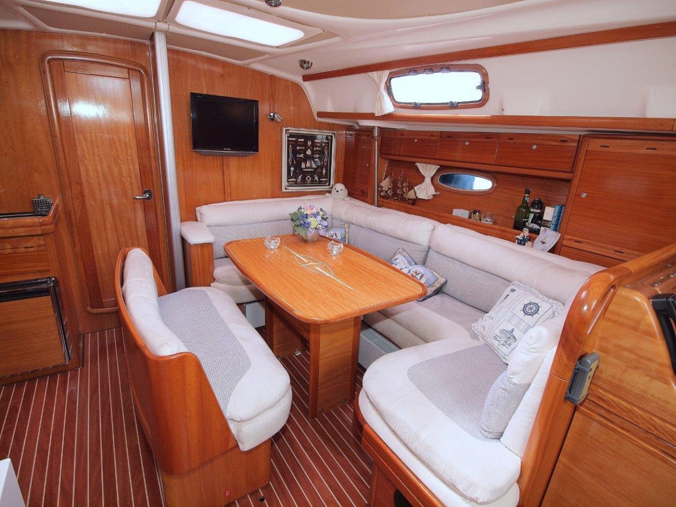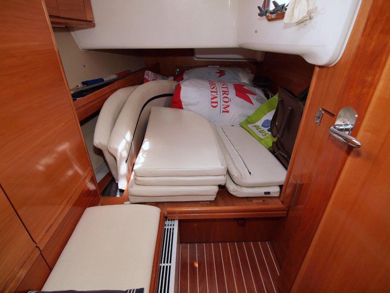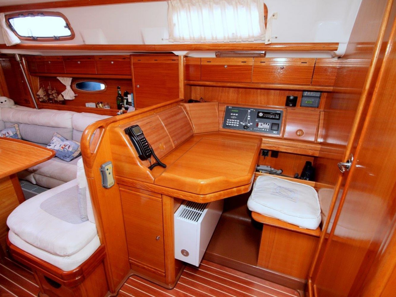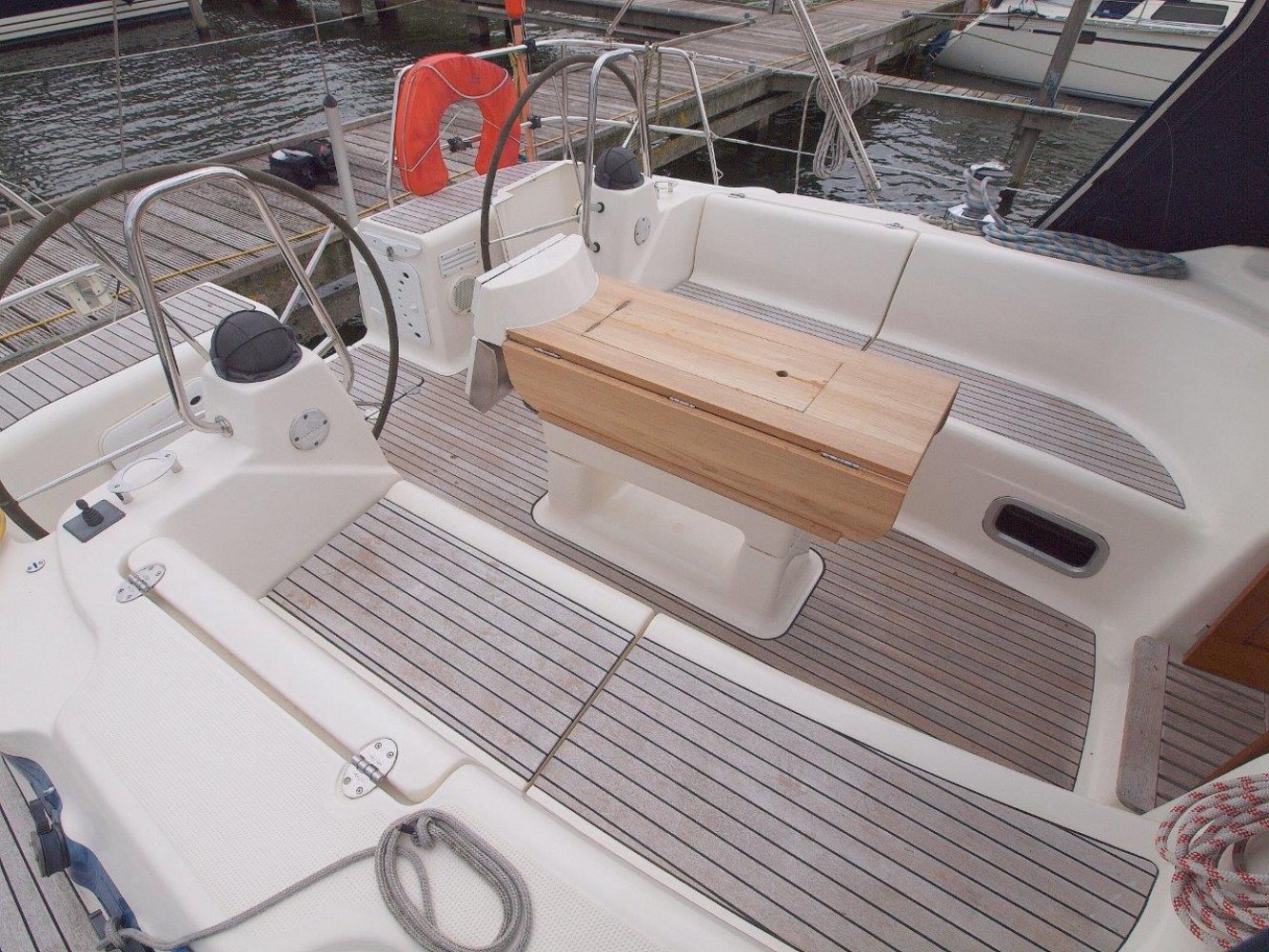 Uitzonderlijk fraaie en complete Bavaria 42 Cruiser met werkelijk alle denkbare opties die de meest verwende zeiler (en bemanning) zich wensen kan. De waslijst aan opties is enorm (van boegschroef tot centrale verwarming), leest u hier verder. De ruime dekken en de enorme kuip zijn geheel voorzien van een fraai teakdek. De kuip heeft ook nog extra op maat gemaakte watervaste kussens voor extra comfort. De veeleisende zeiler zal de hightech rolzeilen (met onder andere 4 verticale latten voor het grootzeil), genua van 2014 en de spinnaker zeker weten te waarderen. Zeilen met dit schip is een waar genoegen, en snelheden van 9 knopen zijn probleemloos haalbaar. Dit komt niet alleen door de fraaie zeilen, maar zeker ook door de diepe loden kiel. Op de motor is natuurlijk ook geen probleem dankzij de lekker lopende Volvo Penta met klapschroef. De extra zwaar uitgevoerde Lewmar 50 lieren (makkelijk elektrisch te maken!) maken de genua beter trimbaar. De stuurman wordt verder verwend met de uitgebreide set aan navigatie apparatuur (met 10" groot draaibaar kleurenscherm voor GPS en radar, gemonteerd bij de stuurwielen) en de aanwezige krachtige boegschroef voor in de haven. Verder zijn er fraaie opties aanwezig als een volledige kuiptent, op maat gemaakte kuipkussens en een bimini. Het interieur is erg fraai en ruim van opzet. Voorzien van 3 ruime dubbele hutten en 2 royale natte cellen. De salon is enorm ruim, evenals het kombuis en de kaartentafel. Ook van binnen is dit schip van werkelijk alle comfort voorzien. Door het gehele schip is een centraal verwarmings systeem van Webasto aangelegd. Dit geeft het comfort van thuis en is niet te vergelijken met een standaard hete lucht verwarming. Verder zijn er extra accu's geïnstalleerd in combinatie met een sterke Mastervolt omvormer van 2KW en een extra 100 Amp dynamo op de motor om bijvoorbeeld de aanwezige magnetron of een koffiezetapparaat ook tijdens het varen te kunnen gebruiken. De eigenaarshut is voorzien van comfort matrassen en een lattenbodem. Verder zijn er ook zaken aanwezig als een flatscreen TV met DVD speler. Een werkelijk fantastisch en zeer compleet zeilschip, direct klaar voor een vakantie of een grote reis. Ook voor wonen aan boord is dit schip zeer geschikt. Wij willen u graag uitnodigen een afspraak met ons te maken om deze zeer bijzondere Bavaria 42 in Tholen te komen bezichtigen.