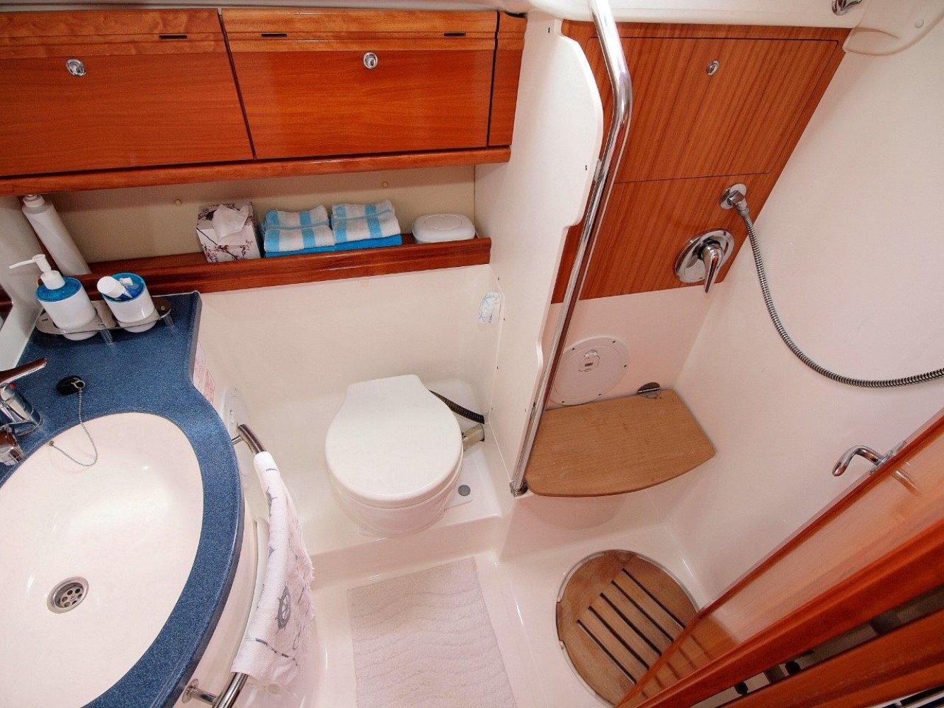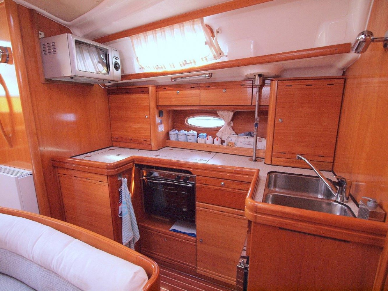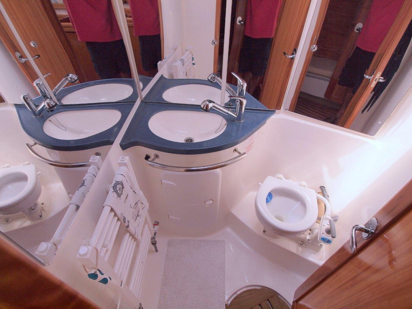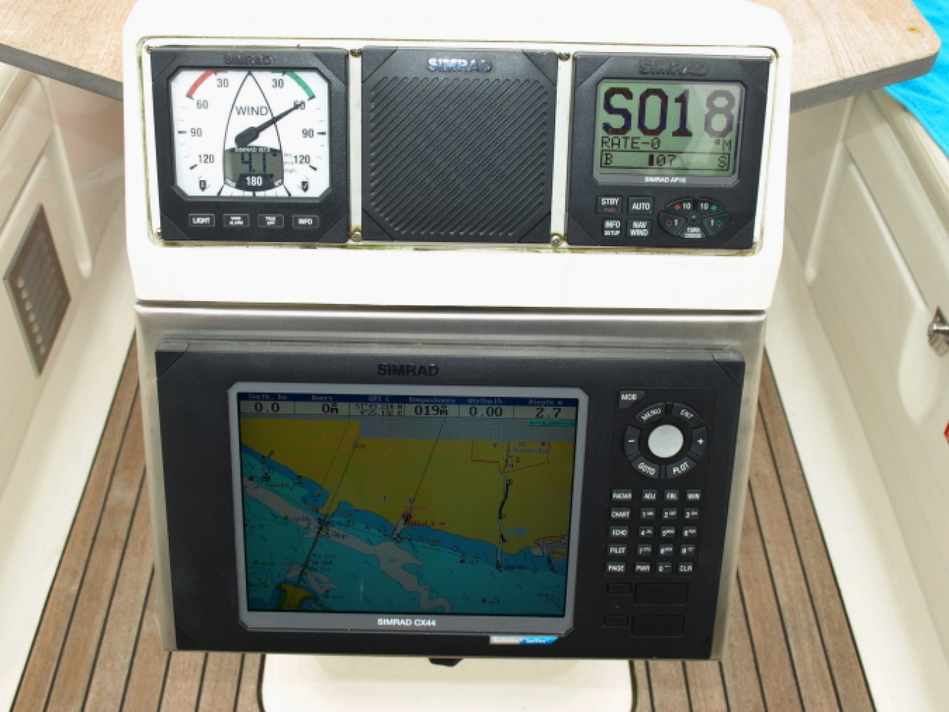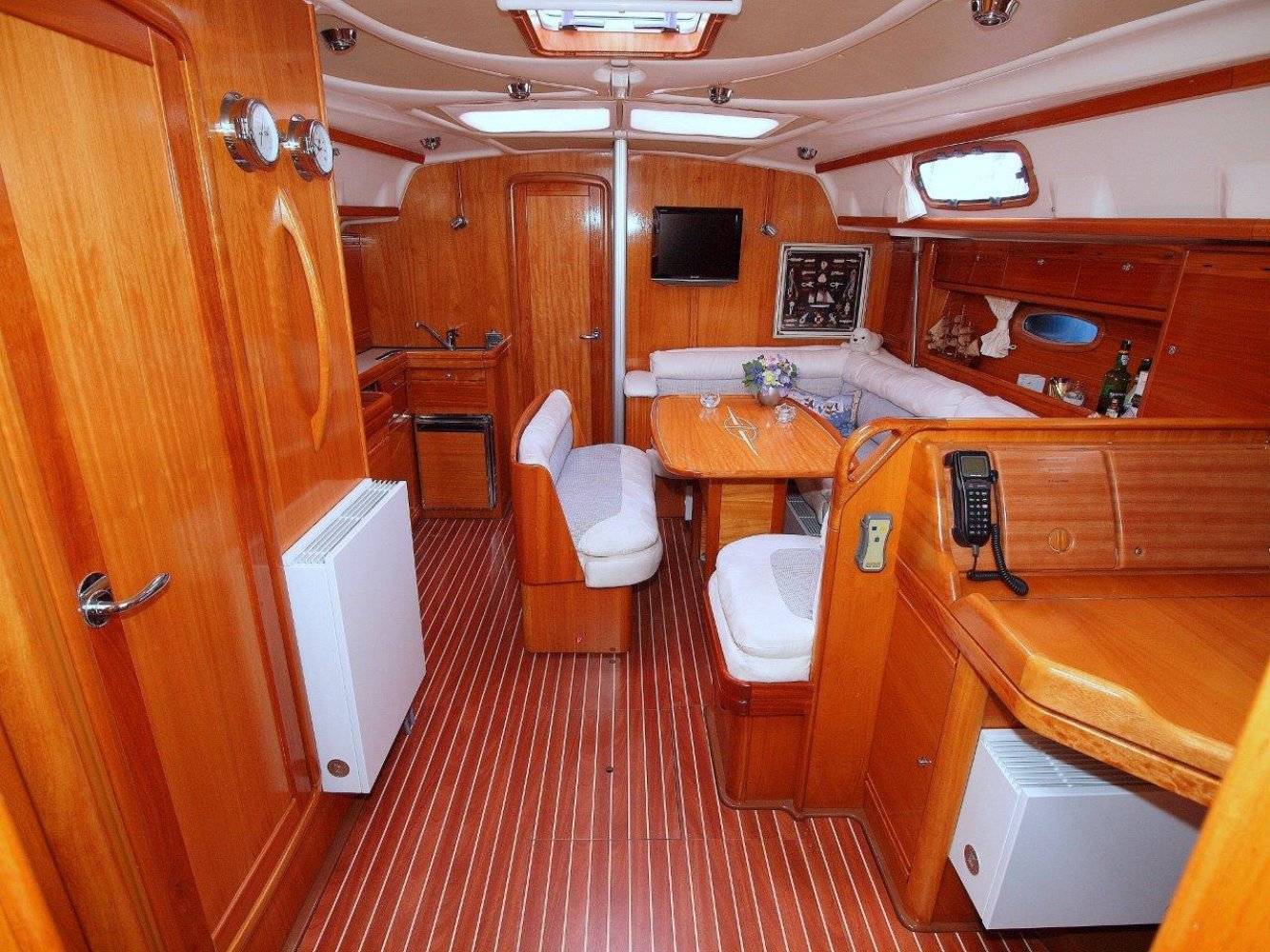 Uitzonderlijk fraaie en complete Bavaria 42 Cruiser met werkelijk alle denkbare opties die de meest verwende zeiler (en bemanning) zich wensen kan. De waslijst aan opties is enorm (van boegschroef tot centrale verwarming), leest u hier verder. De ruime dekken en de enorme kuip zijn geheel voorzien van een fraai teakdek. De kuip heeft ook nog extra op maat gemaakte watervaste kussens voor extra comfort. De veeleisende zeiler zal de hightech rolzeilen (met onder andere 4 verticale latten voor het grootzeil), genua van 2014 en de spinnaker zeker weten te waarderen. Zeilen met dit schip is een waar genoegen, en snelheden van 9 knopen zijn probleemloos haalbaar. Dit komt niet alleen door de fraaie zeilen, maar zeker ook door de diepe loden kiel. Op de motor is natuurlijk ook geen probleem dankzij de lekker lopende Volvo Penta met klapschroef. De extra zwaar uitgevoerde Lewmar 50 lieren (makkelijk elektrisch te maken!) maken de genua beter trimbaar. De stuurman wordt verder verwend met de uitgebreide set aan navigatie apparatuur (met 10" groot draaibaar kleurenscherm voor GPS en radar, gemonteerd bij de stuurwielen) en de aanwezige krachtige boegschroef voor in de haven. Verder zijn er fraaie opties aanwezig als een volledige kuiptent, op maat gemaakte kuipkussens en een bimini. Het interieur is erg fraai en ruim van opzet. Voorzien van 3 ruime dubbele hutten en 2 royale natte cellen. De salon is enorm ruim, evenals het kombuis en de kaartentafel. Ook van binnen is dit schip van werkelijk alle comfort voorzien. Door het gehele schip is een centraal verwarmings systeem van Webasto aangelegd. Dit geeft het comfort van thuis en is niet te vergelijken met een standaard hete lucht verwarming. Verder zijn er extra accu's geïnstalleerd in combinatie met een sterke Mastervolt omvormer van 2KW en een extra 100 Amp dynamo op de motor om bijvoorbeeld de aanwezige magnetron of een koffiezetapparaat ook tijdens het varen te kunnen gebruiken. De eigenaarshut is voorzien van comfort matrassen en een lattenbodem. Verder zijn er ook zaken aanwezig als een flatscreen TV met DVD speler. Een werkelijk fantastisch en zeer compleet zeilschip, direct klaar voor een vakantie of een grote reis. Ook voor wonen aan boord is dit schip zeer geschikt. Wij willen u graag uitnodigen een afspraak met ons te maken om deze zeer bijzondere Bavaria 42 in Tholen te komen bezichtigen.