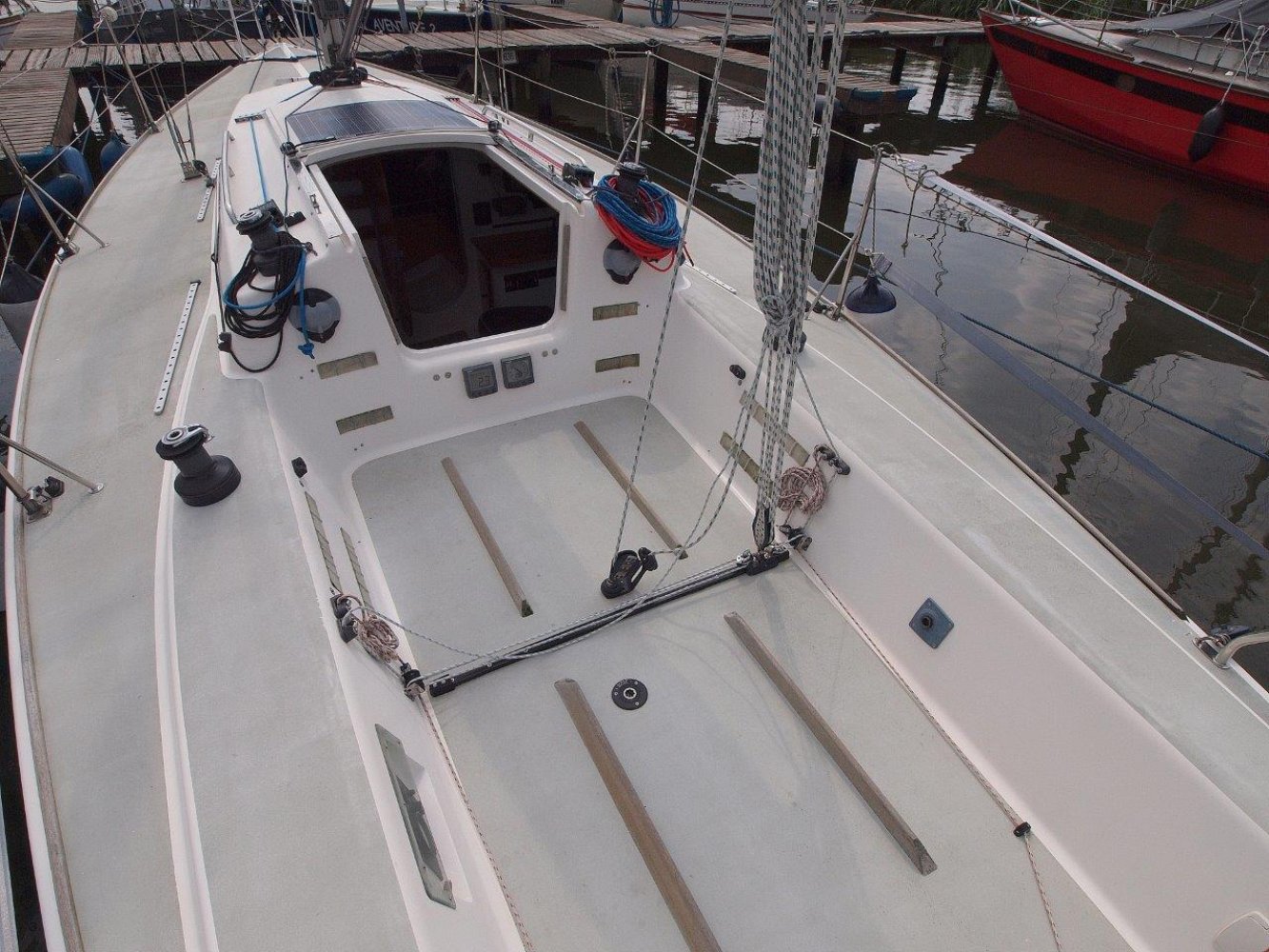 Leuke J-92 uit 2000. Deze J is volledig ready to go voor de nieuwe eigenaar! Dit schip is voorzien van alle benodigde navigatie instrumenten inclusief meters op de mast met afstandbediening. Verder is een uitgebreide zeilgarderobe waarvan de Mylar zeilen iets minder zijn maar de Dacron zeilen zijn nog netjes. Bovendien inclusief een gennaker van 2010 en mooie performance cross-cut genua van juli 2014! De huidige eigenaar heeft het schip als toerschip gebruikt maar wil vanwege het beëindigen van zijn hobby het schip te koop aanbieden. Dit is een ideaal schip voor wie een lekker dagje sportief wil zeilen maar een vakantie is ook geen probleem. Genoeg bergruimte, een prima bed en er is zelfs een kooktoestelletje en een toilet aan boord. Kortom een ideale combinatie van een racer en toch nog wat comfort voor als het allemaal wat meer ontspannen mag. En mocht er nu echt helemaal geen wind staan, dan is er altijd nog de goed lopende Volvo Penta om u weer thuis te brengen. Deze J-92 is op afspraak te bezichtigen in Noordschans. Voor vragen of een afspraak mail naar [email protected] of bel met 0168-820208.