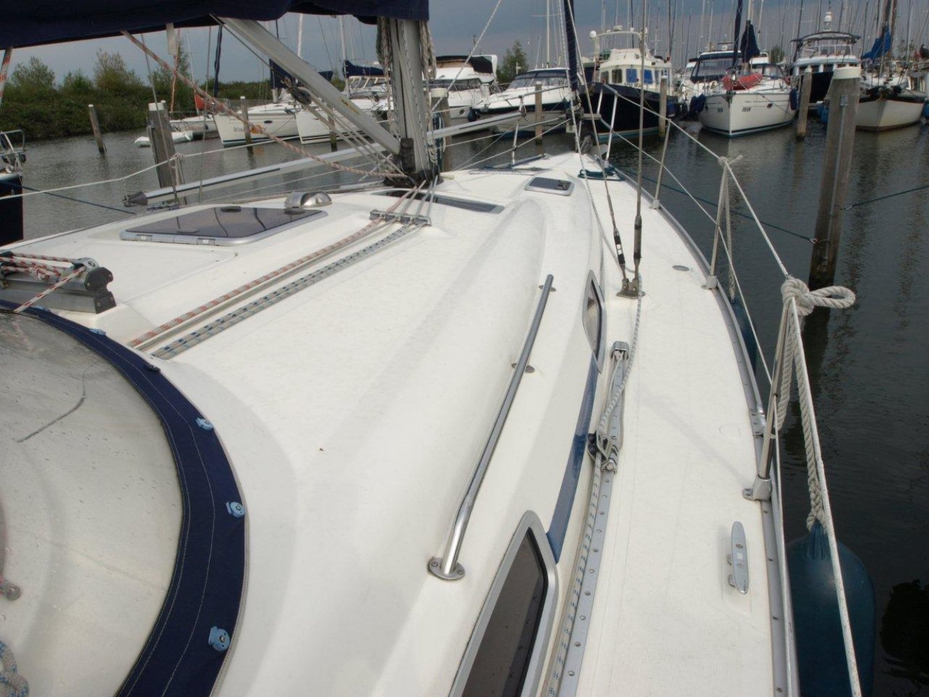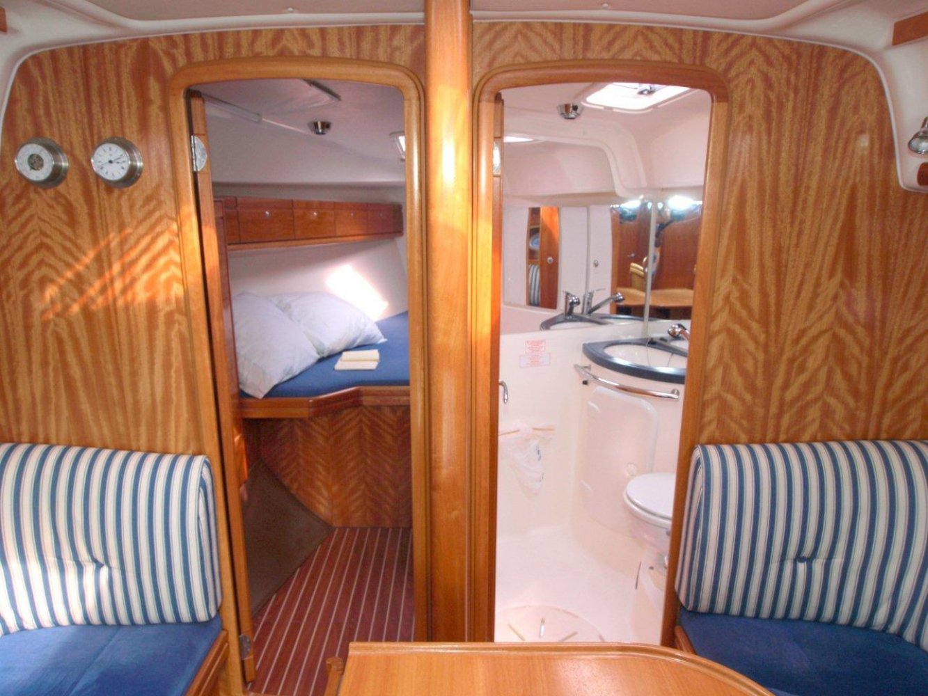 De Bavaria 37 Cruiser (gebouwd eind 2005, geleverd en model 2006) met de diepere kiel is een bovengemiddelde zeiler. En dat terwijl het comfort en de ruimte echt erg goed zijn. Dit schip is uitgevoerd met 3 dubbele hutten. De ruime kuip, welke middels het zwemplatform makkelijk bereikbaar is, biedt volop plaats aan de bemanning. Een vaste kuiptafel geeft ook met zeegang goede houvast. Het grootzeil (met 2 riffen) is vanuit de kuip te bedienen, evenals de rolgenua. Verder is dit schip voorzien van een elektrische ankerlier. Ook de salon is erg ruim. Door het fraaie lichte hout en de moderne bekleding wordt dit nog eens benadrukt. In het achterschip zijn 2 royale dubbele hutten, helemaal voorin is de derde dubbele hut. Hier is ook de toilet/doucheruimte geplaatst. Deze goed onderhouden Bavaria 37 Cruiser is te bezichtigen bij ons in Willemstad.