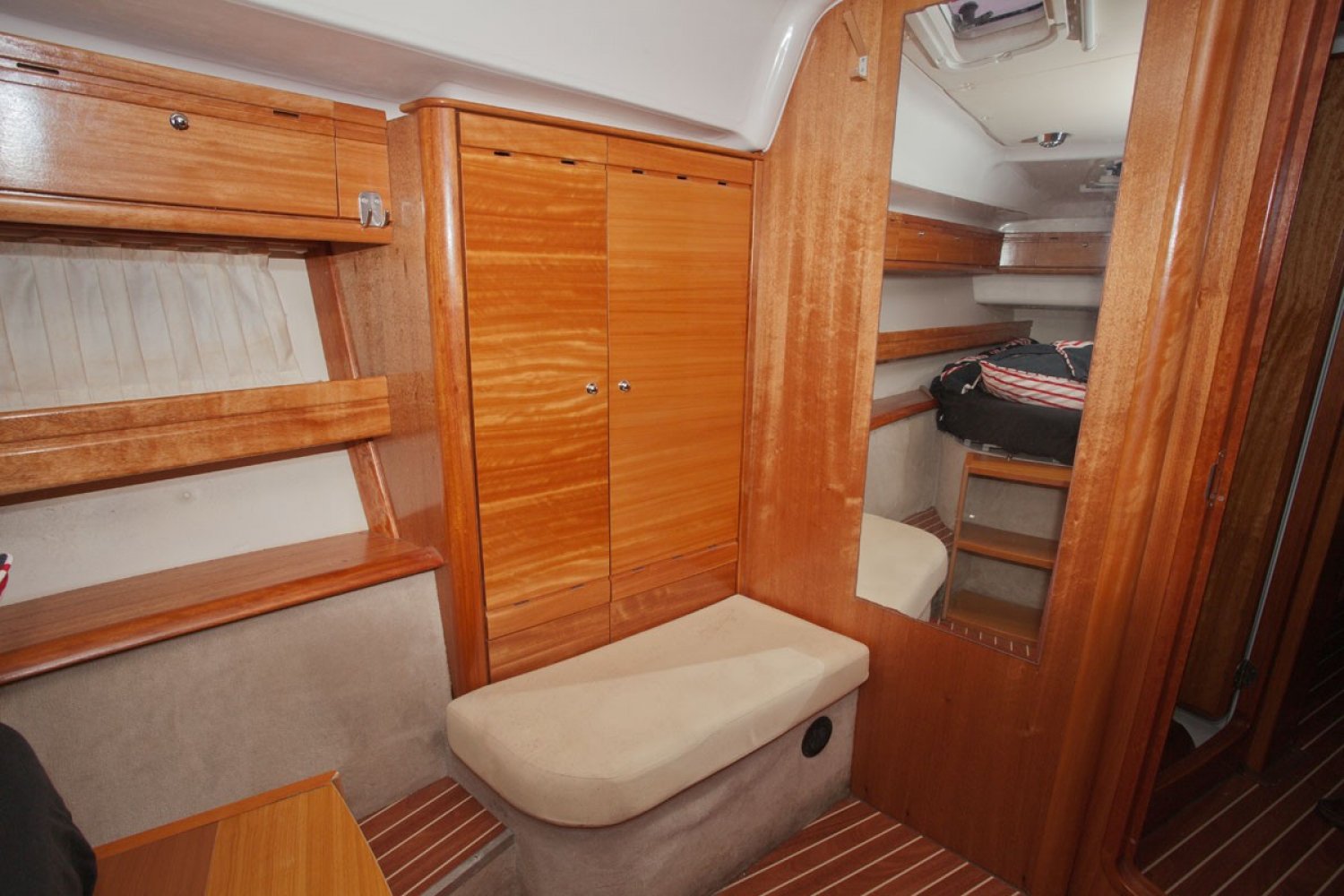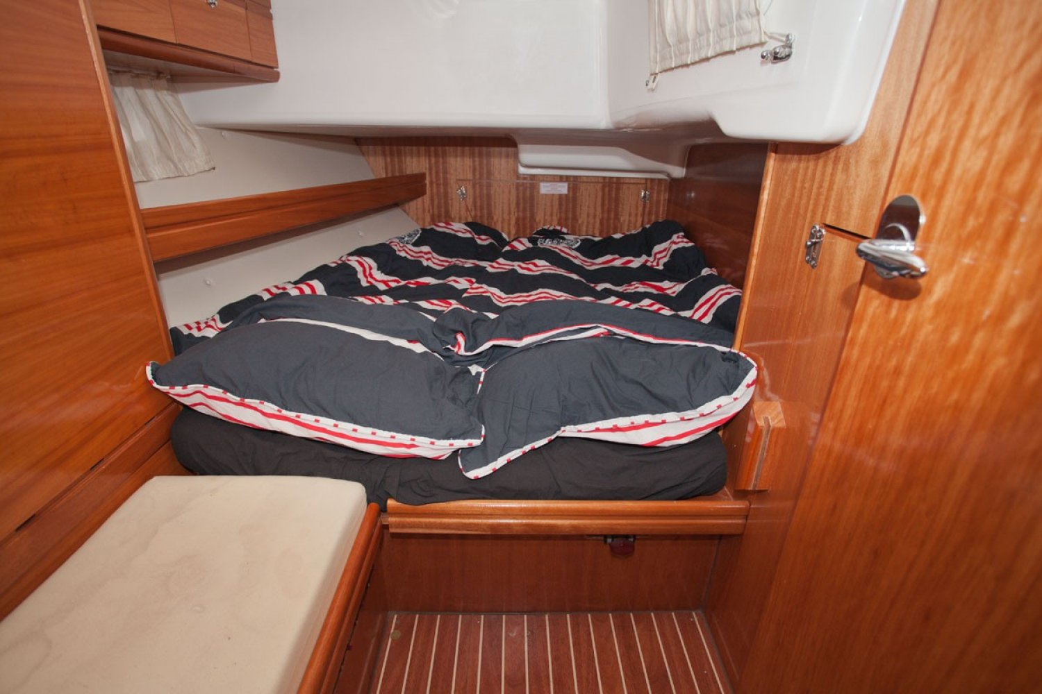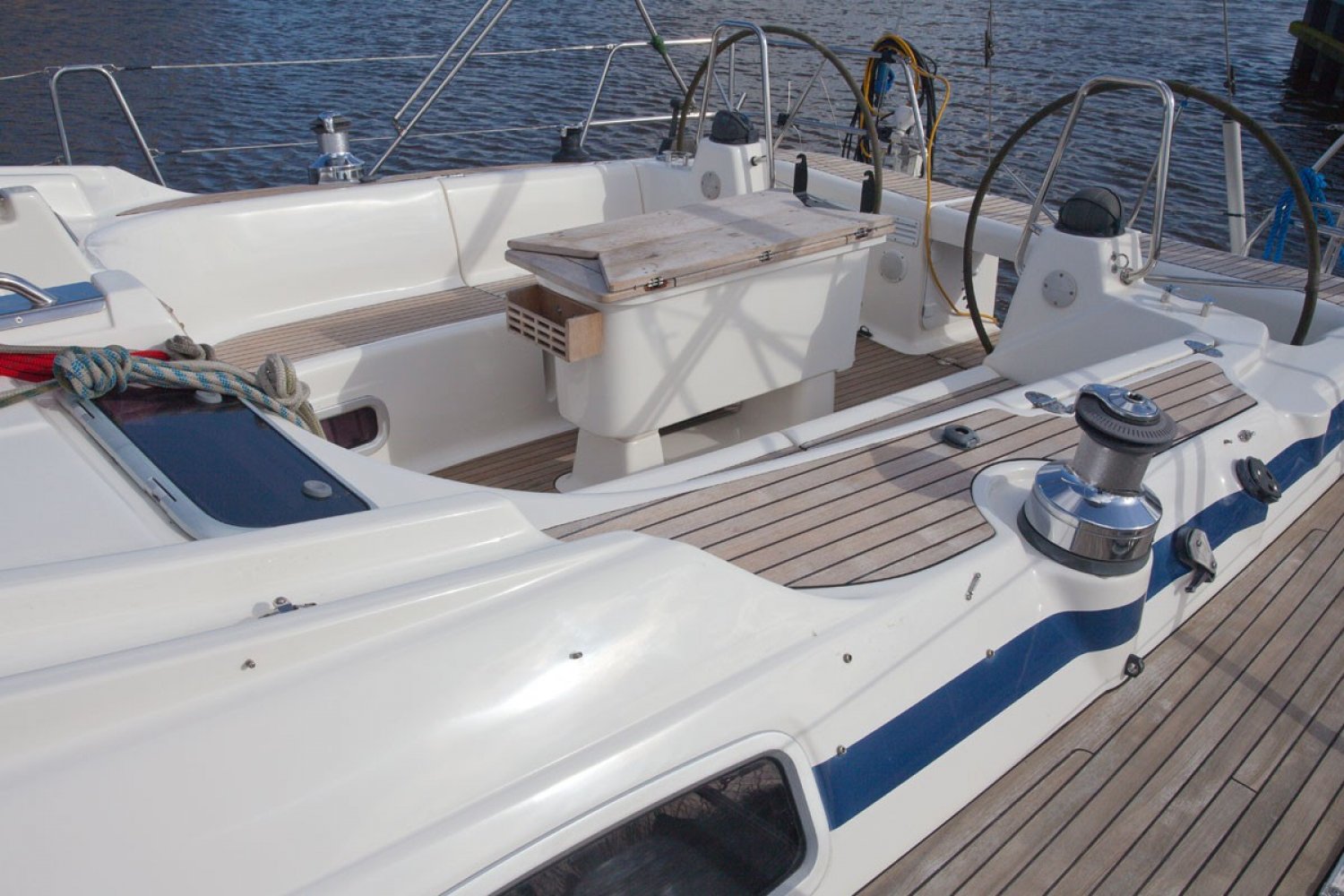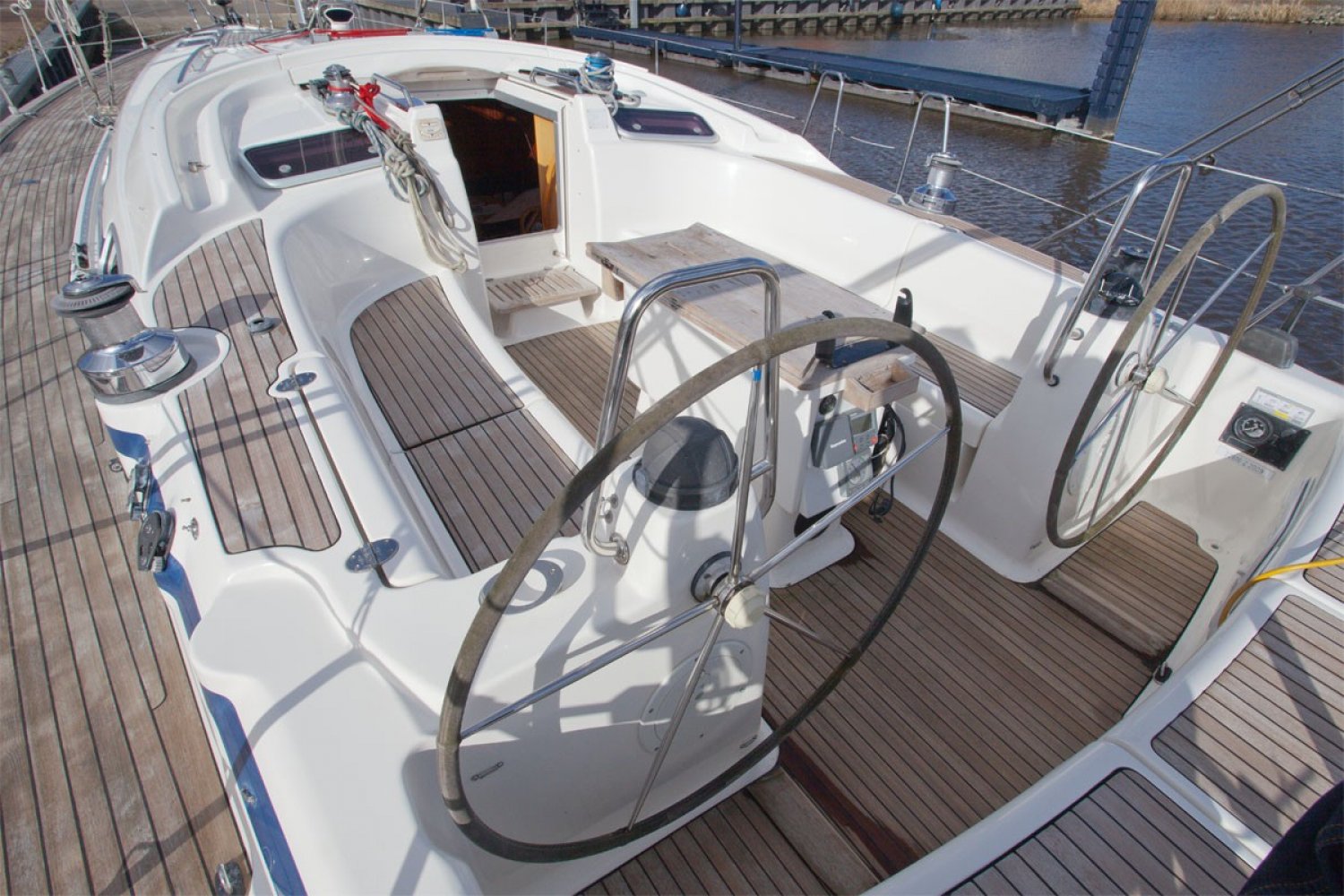 De Bavaria 46 behoort tot één van de grotere jachten uit het programma van de populaire Duitse werf. Zo men op de kleinere Bavaria’s al veel ruimte treft is deze boot werkelijk een ruimteschip. Met haar strakke lijnen oogt de boot modern en levert zij uitstekende vaareigenschappen. De boot die wij u aanbieden is van 2e particuliere eigenaar en geen ex-charter. De riante kuip met dubbele stuurstand biedt gemakkelijk plaats aan een grote bemanning. Vanachter het stuurwiel kan men gemakkelijk de hele boot overzien. De buiskap is eenvoudig neer te klappen zodat een nog beter uitzicht wordt verkregen. Aan de buiskap kan nog een tent worden geritst zodat de gehele kuip is overdekt. De navigatie instrumenten bestaan onder andere uit een groot plotterscherm en een Raymarine ST60 set. Elke stuurstand is apart voorzien van een kompas. De motor en boegschroefbediening zijn aan stuurboord geplaatst. Alle lijnen zijn naar de kuip geleid waar met grote elektrische lieren de zeilen getrimd kunnen worden. De boot heeft een rolgrootzeil en een rolgenua zodat gemakkelijk met een kleine bemanning gevaren kan worden. Door de vele ramen en luiken valt veel daglicht naar binnen en kan de boot goed geventileerd worden. Met zijn recente lichte kussens oogt het interieur bijzonder ruim. In de salon is een gezellige zithoek met een U-vormige en vrijstaande sofa rond de tafel. Aan bakboord is de kombuis geplaatst met dubbele spoelbak, kookstel, oven en koelkast. De boot heeft 4 hutten en 2 natte cellen. De eigenaarshut is in het voorschip, en heeft een riant bed met uitstekende matrassen. Aan bakboord is een dubbele cabine met stapelbed. In het achterschip zijn 2 dubbele hutten. Ook wanneer men niet met zoveel personen aan boord is kunnen de extra hutten praktisch zijn, bijvoorbeeld om koffers weg te zetten. Deze Bavaria 46 biedt zoals we gewend zijn van deze werf ongelofelijk veel ruimte en comfort voor een scherpe prijs. Bovendien zijn Bavaria’s gemakkelijk te varen, zowel onder zeil als op de motor. Dit jacht is in zeer goede staat van onderhoud en wij nodigen u dan ook van harte uit om een afspraak voor een bezichtiging te maken aan boord van dit schip gelegen in Volendam. Maakt u een afspraak via [email protected]. Uw jachtmakelaar is Robert de Vries
