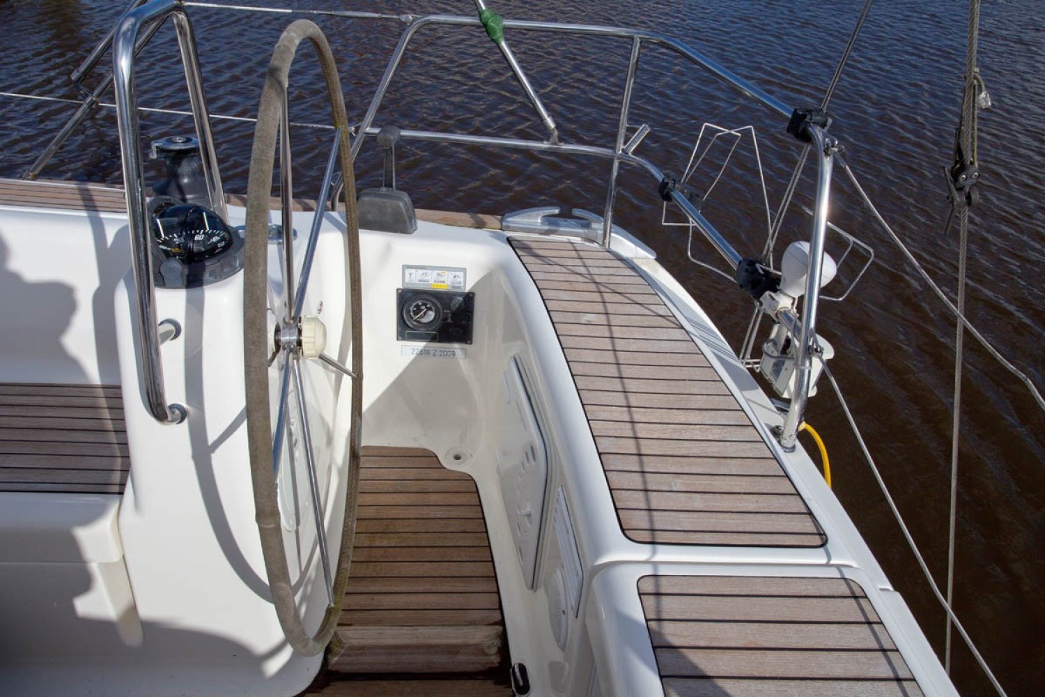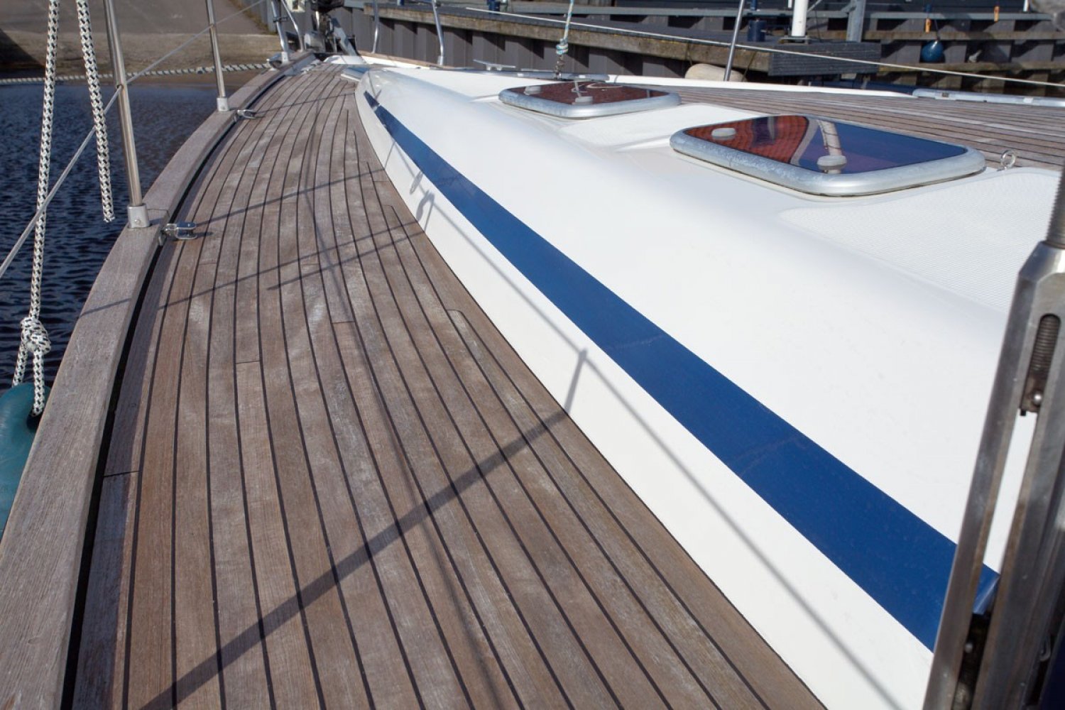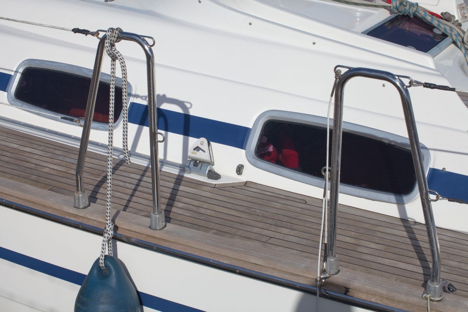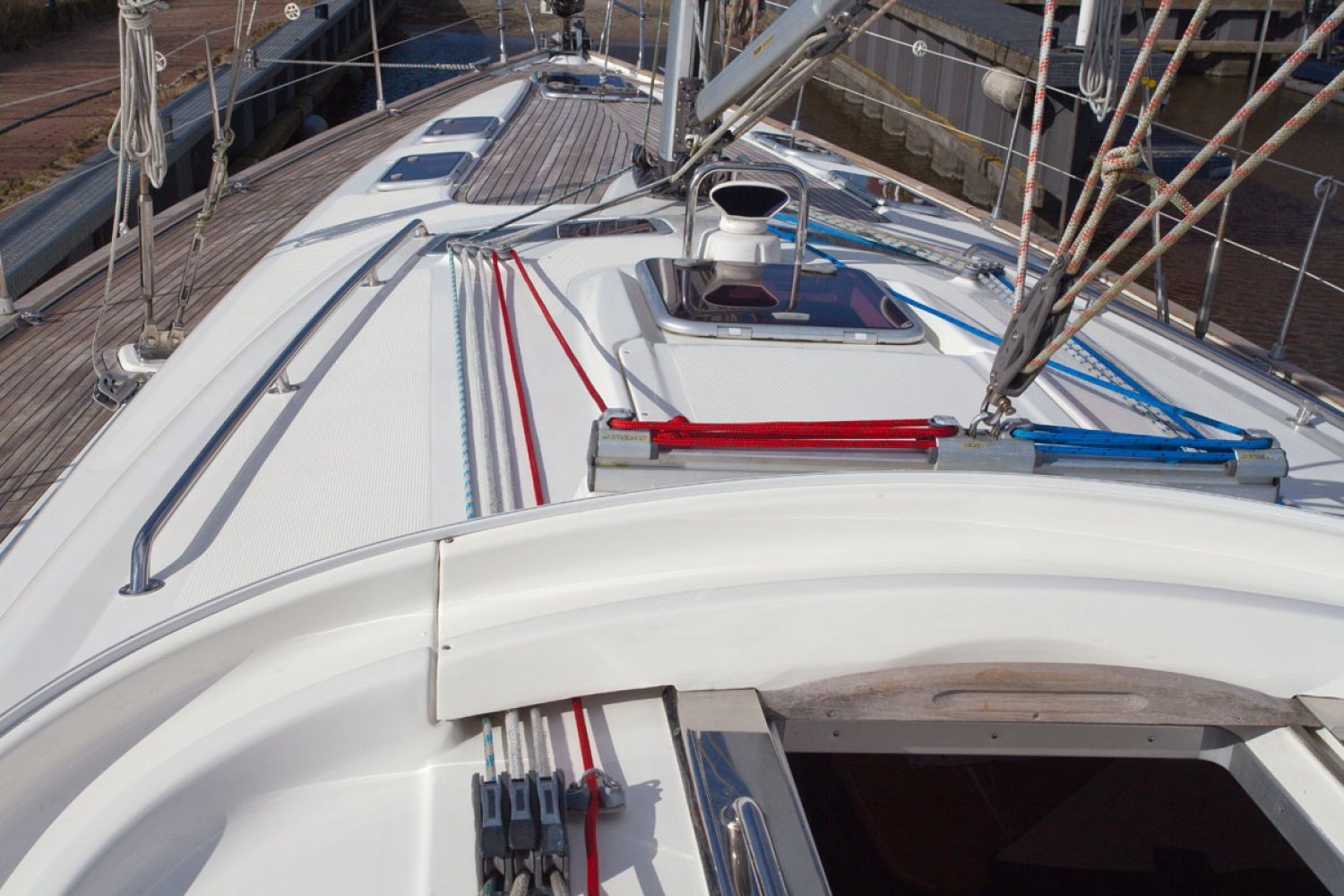De Bavaria 46 behoort tot één van de grotere jachten uit het programma van de populaire Duitse werf. Zo men op de kleinere Bavaria’s al veel ruimte treft is deze boot werkelijk een ruimteschip. Met haar strakke lijnen oogt de boot modern en levert zij uitstekende vaareigenschappen. De boot die wij u aanbieden is van 2e particuliere eigenaar en geen ex-charter. De riante kuip met dubbele stuurstand biedt gemakkelijk plaats aan een grote bemanning. Vanachter het stuurwiel kan men gemakkelijk de hele boot overzien. De buiskap is eenvoudig neer te klappen zodat een nog beter uitzicht wordt verkregen. Aan de buiskap kan nog een tent worden geritst zodat de gehele kuip is overdekt. De navigatie instrumenten bestaan onder andere uit een groot plotterscherm en een Raymarine ST60 set. Elke stuurstand is apart voorzien van een kompas. De motor en boegschroefbediening zijn aan stuurboord geplaatst. Alle lijnen zijn naar de kuip geleid waar met grote elektrische lieren de zeilen getrimd kunnen worden. De boot heeft een rolgrootzeil en een rolgenua zodat gemakkelijk met een kleine bemanning gevaren kan worden. Door de vele ramen en luiken valt veel daglicht naar binnen en kan de boot goed geventileerd worden. Met zijn recente lichte kussens oogt het interieur bijzonder ruim. In de salon is een gezellige zithoek met een U-vormige en vrijstaande sofa rond de tafel. Aan bakboord is de kombuis geplaatst met dubbele spoelbak, kookstel, oven en koelkast. De boot heeft 4 hutten en 2 natte cellen. De eigenaarshut is in het voorschip, en heeft een riant bed met uitstekende matrassen. Aan bakboord is een dubbele cabine met stapelbed. In het achterschip zijn 2 dubbele hutten. Ook wanneer men niet met zoveel personen aan boord is kunnen de extra hutten praktisch zijn, bijvoorbeeld om koffers weg te zetten. Deze Bavaria 46 biedt zoals we gewend zijn van deze werf ongelofelijk veel ruimte en comfort voor een scherpe prijs. Bovendien zijn Bavaria’s gemakkelijk te varen, zowel onder zeil als op de motor. Dit jacht is in zeer goede staat van onderhoud en wij nodigen u dan ook van harte uit om een afspraak voor een bezichtiging te maken aan boord van dit schip gelegen in Volendam. Maakt u een afspraak via [email protected]. Uw jachtmakelaar is Robert de Vries