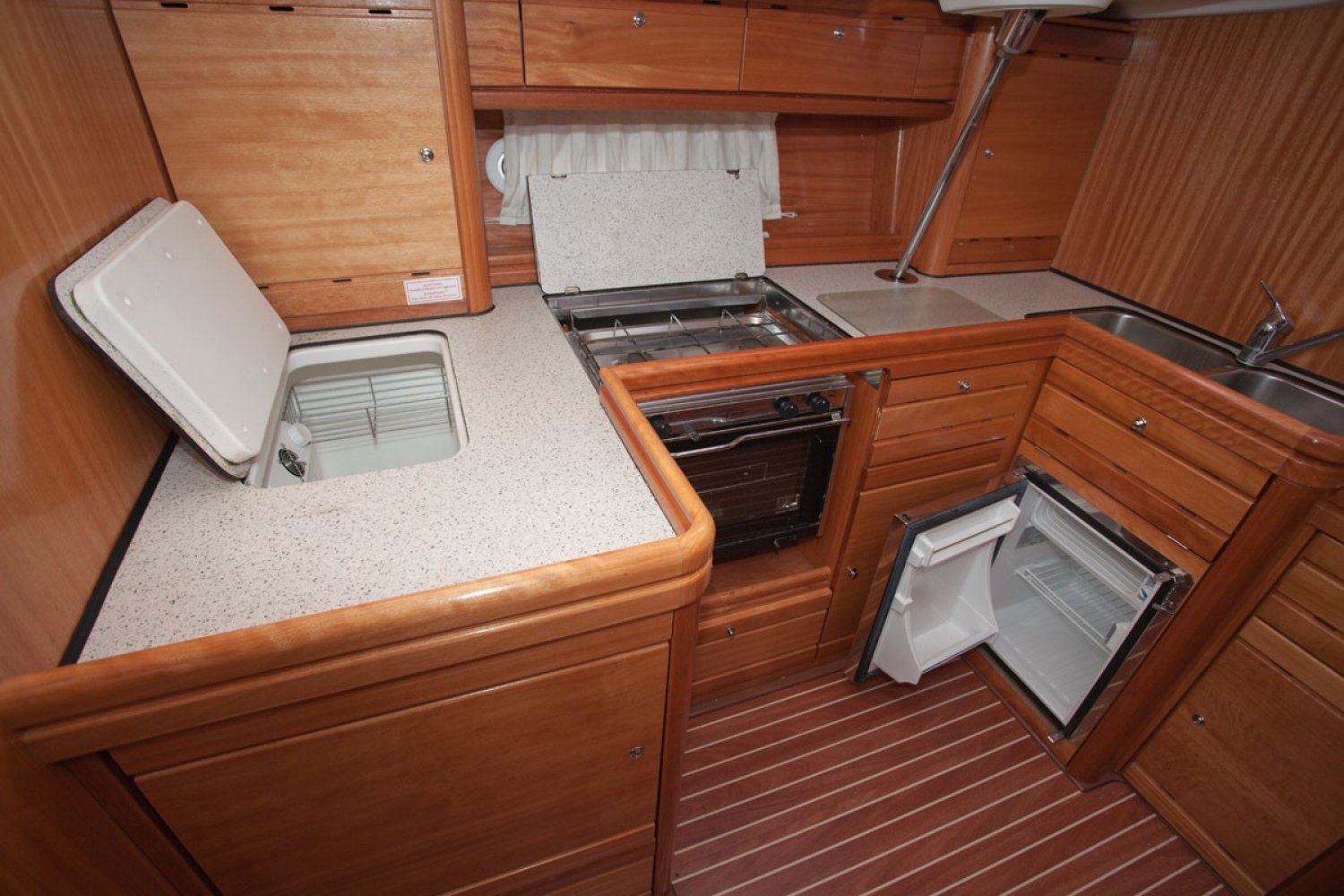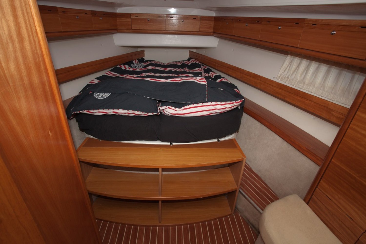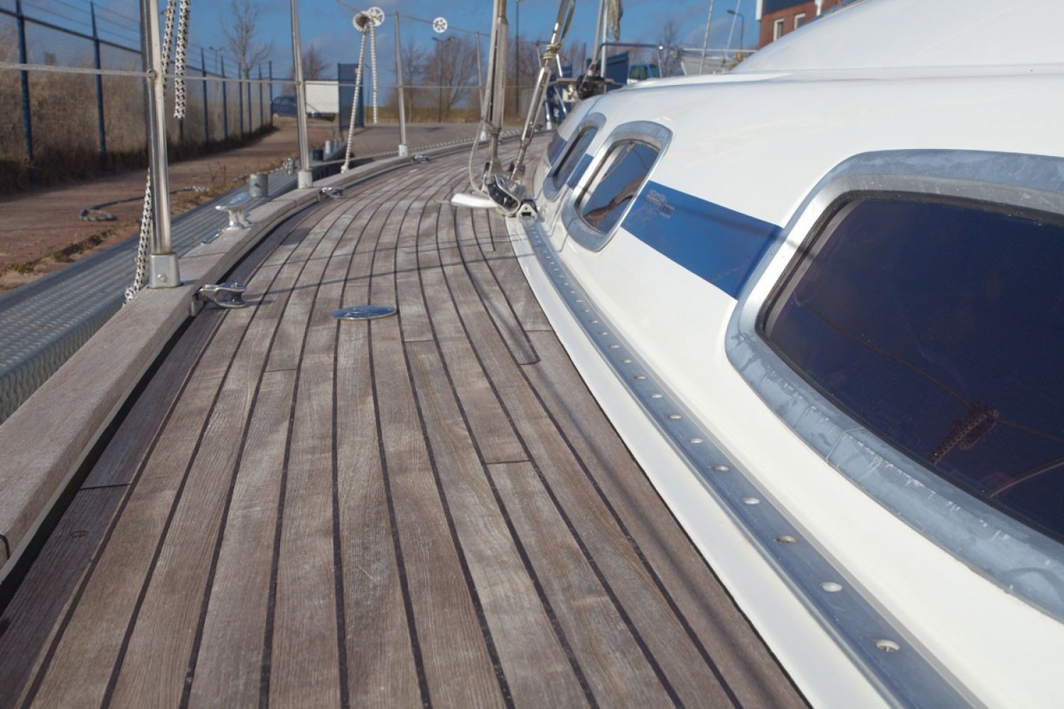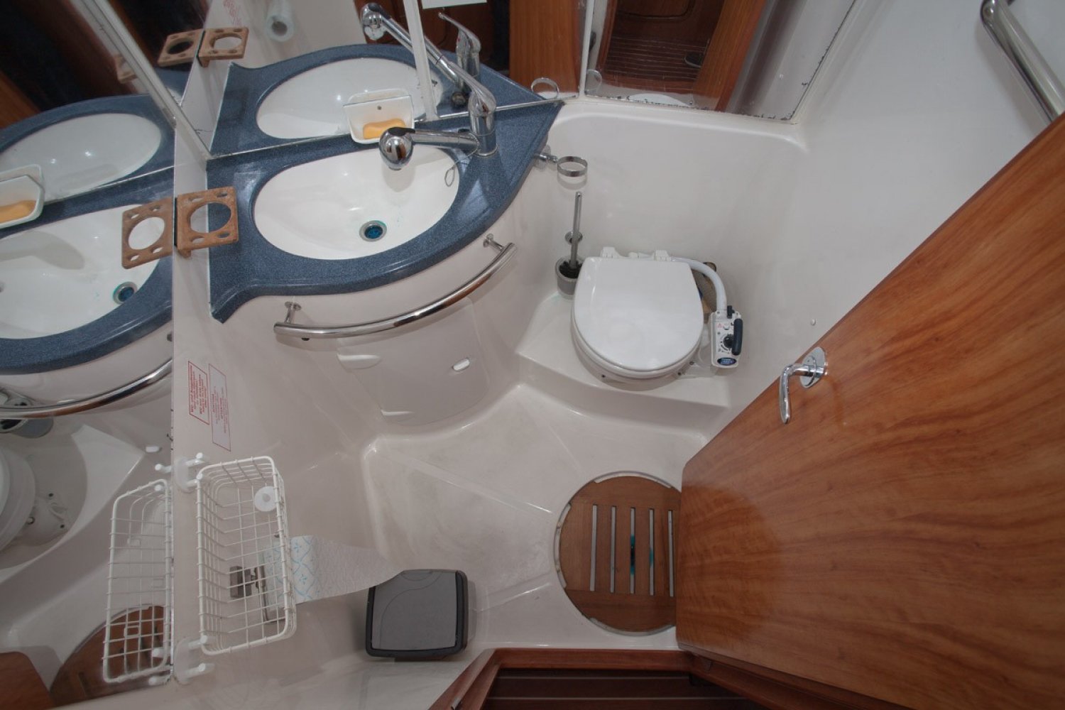 De Bavaria 46 behoort tot één van de grotere jachten uit het programma van de populaire Duitse werf. Zo men op de kleinere Bavaria’s al veel ruimte treft is deze boot werkelijk een ruimteschip. Met haar strakke lijnen oogt de boot modern en levert zij uitstekende vaareigenschappen. De boot die wij u aanbieden is van 2e particuliere eigenaar en geen ex-charter. De riante kuip met dubbele stuurstand biedt gemakkelijk plaats aan een grote bemanning. Vanachter het stuurwiel kan men gemakkelijk de hele boot overzien. De buiskap is eenvoudig neer te klappen zodat een nog beter uitzicht wordt verkregen. Aan de buiskap kan nog een tent worden geritst zodat de gehele kuip is overdekt. De navigatie instrumenten bestaan onder andere uit een groot plotterscherm en een Raymarine ST60 set. Elke stuurstand is apart voorzien van een kompas. De motor en boegschroefbediening zijn aan stuurboord geplaatst. Alle lijnen zijn naar de kuip geleid waar met grote elektrische lieren de zeilen getrimd kunnen worden. De boot heeft een rolgrootzeil en een rolgenua zodat gemakkelijk met een kleine bemanning gevaren kan worden. Door de vele ramen en luiken valt veel daglicht naar binnen en kan de boot goed geventileerd worden. Met zijn recente lichte kussens oogt het interieur bijzonder ruim. In de salon is een gezellige zithoek met een U-vormige en vrijstaande sofa rond de tafel. Aan bakboord is de kombuis geplaatst met dubbele spoelbak, kookstel, oven en koelkast. De boot heeft 4 hutten en 2 natte cellen. De eigenaarshut is in het voorschip, en heeft een riant bed met uitstekende matrassen. Aan bakboord is een dubbele cabine met stapelbed. In het achterschip zijn 2 dubbele hutten. Ook wanneer men niet met zoveel personen aan boord is kunnen de extra hutten praktisch zijn, bijvoorbeeld om koffers weg te zetten. Deze Bavaria 46 biedt zoals we gewend zijn van deze werf ongelofelijk veel ruimte en comfort voor een scherpe prijs. Bovendien zijn Bavaria’s gemakkelijk te varen, zowel onder zeil als op de motor. Dit jacht is in zeer goede staat van onderhoud en wij nodigen u dan ook van harte uit om een afspraak voor een bezichtiging te maken aan boord van dit schip gelegen in Volendam. Maakt u een afspraak via [email protected]. Uw jachtmakelaar is Robert de Vries