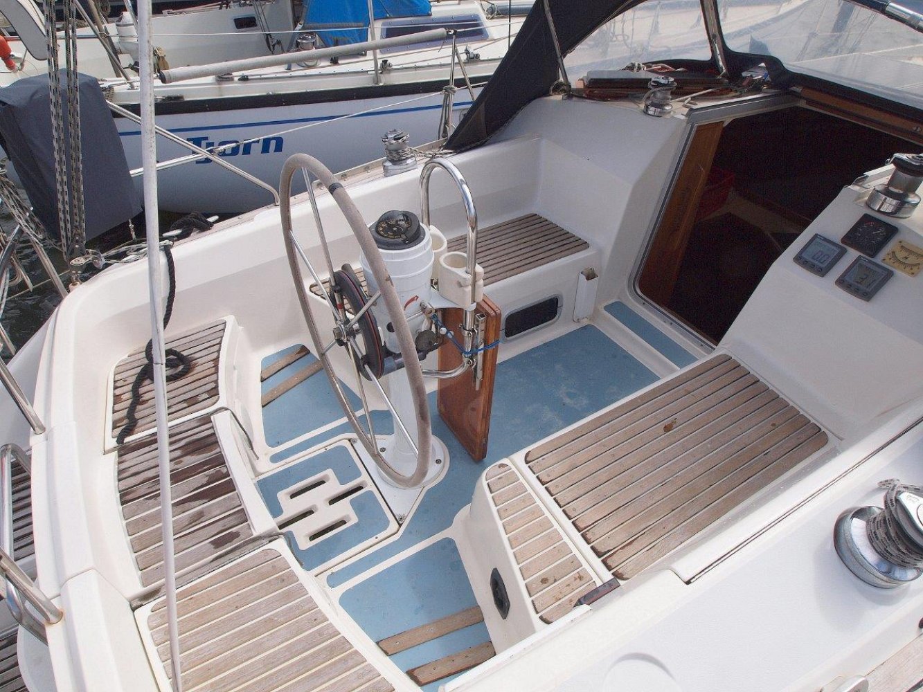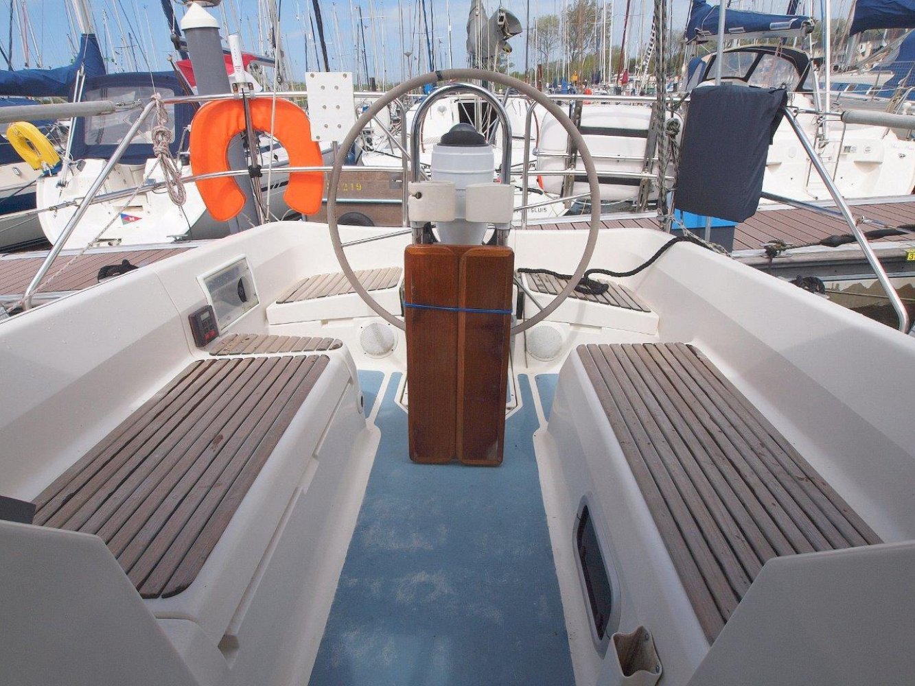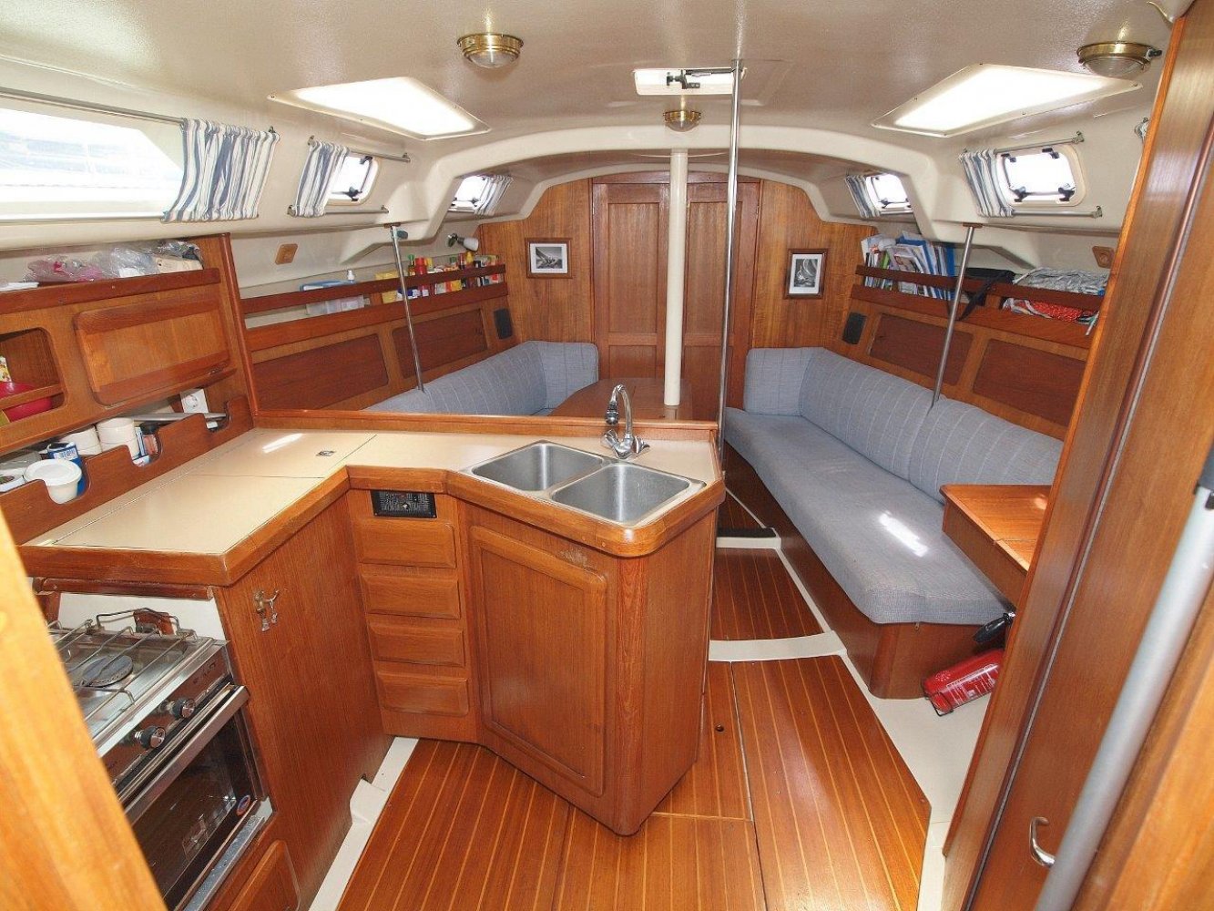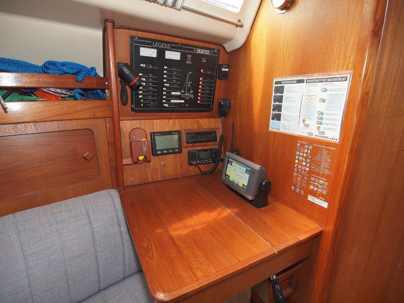 Uitstekend onderhouden Hunter 35.5 Legend. Hunter staat bekend om de comfortabele schepen met opvallend veel ruimte. Deze 35.5 vormt daar zeker geen uitzondering op en het schip geeft binnen het gevoel alsof ze een paar voet groter is. Het dek is afgewerkt met teak wat het een luxe uitstraling geeft maar ook goed grip geeft. Verder zijn deze goed begaanbaar en de hoge reling geeft een veilig gevoel. De kuip is praktisch en ruim. Hier vinden alle opvarende ongetwijfeld een lekker plekje. Binnen in het schip valt de ruimte en lichte sfeer op. In de voorpiek is een dubbel bed en opberg ruimte. Midscheeps de salon met een riante L-bank, een tafel in het midden en een langsbank er tegen over. Verder richting het achterschip treft u aan stuurboord de kaartentafel aan met de nodige apparatuur en het schakelpaneel voor het boordnet. Aan bakboord is de flinke kombuis, hier zal elke keukenprins(es) zich uit kunnen leven. Er is uiteraard warm en koud stromend water, veel bergruimte, een fornuis met oven en een opvallend ruime koelkast. In het achterschip is aan stuurboord een ruime natte cel. Hier is zelfs de mogelijkheid om een lekkere douche te nemen en aan bakboord treft u de eigenaarshut aan. Hier een dubbelbed en de nodige opberg ruimte. Het is opvallend hoe ze een dergelijke ruimte hebben weten te creëren op een schip van dit formaat. Alles wat u op een groter schip verwacht treft u hier ook aan. De ruime salon, de flinke natte cel met douche en natuurlijk het riante kombuis. Het is er allemaal. Bovendien is het allemaal erg netjes afgewerkt en maakt een zeer degelijke indruk. Kortom; een lekker ruim, goed afgewerkt en uitstekend onderhouden schip. Vaarklaar voor de nieuwe eigenaar! Nieuwsgierig geworden? Neem dan zeker contact op via tel.: +31 (0) 168 820 208 of email: [email protected] om een afspraak te maken voor een bezichtiging aan boord deze Hunter 35.5 Legend.