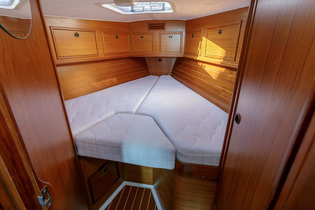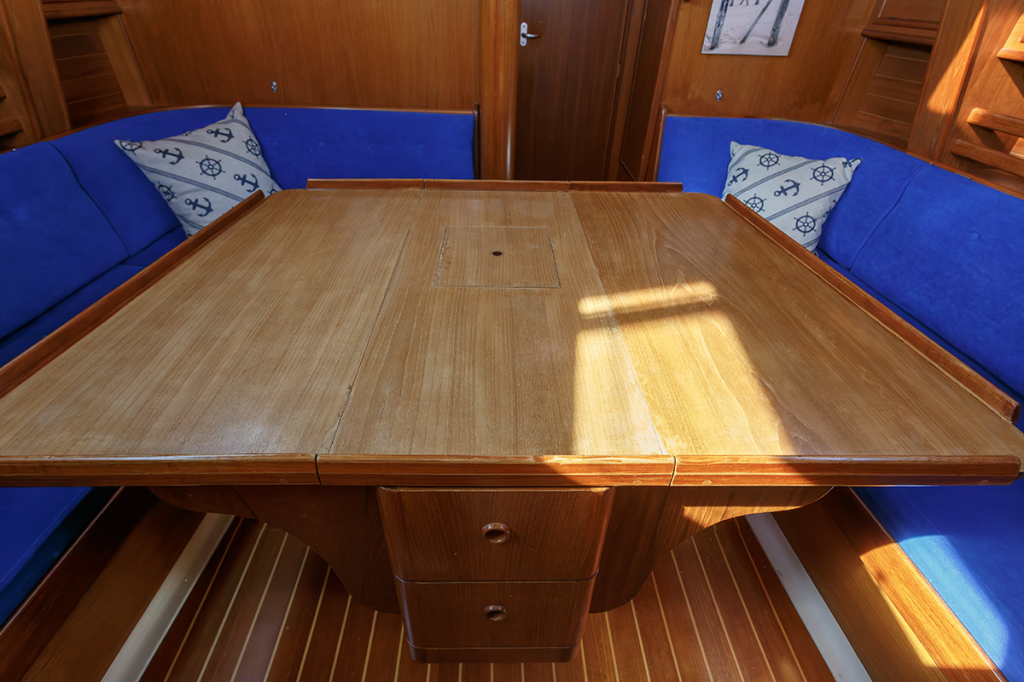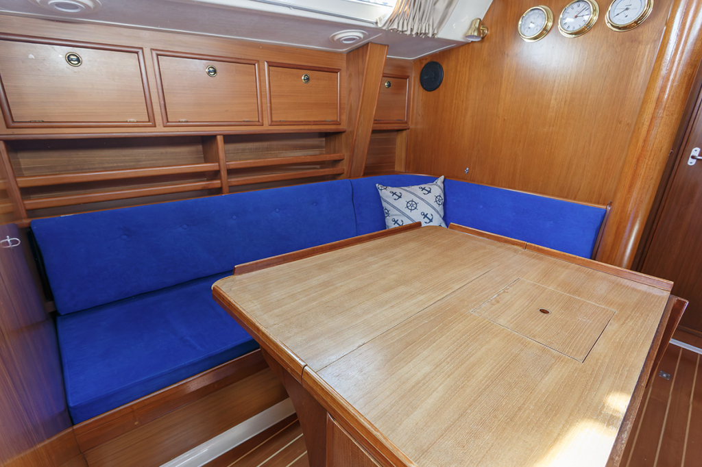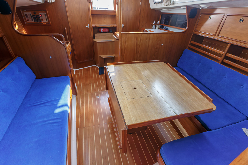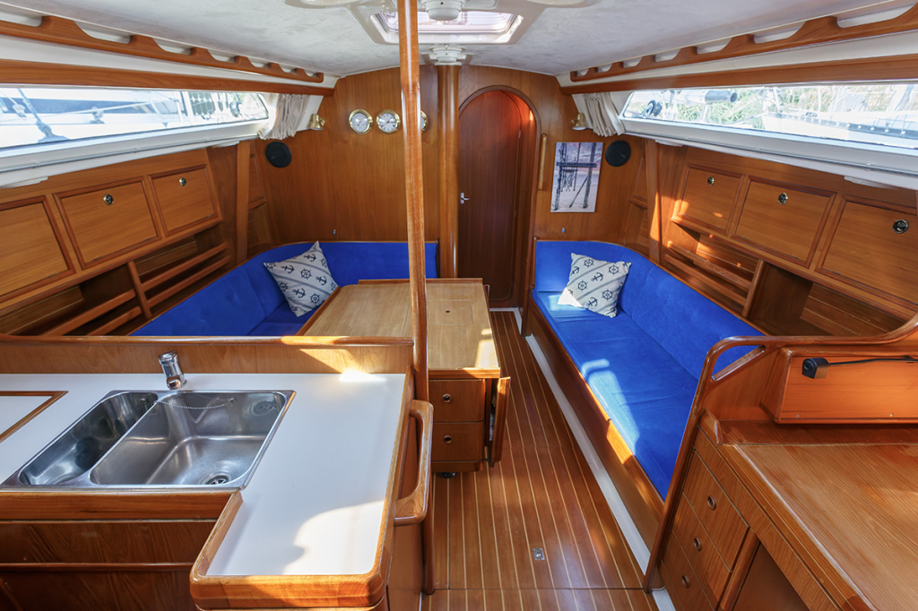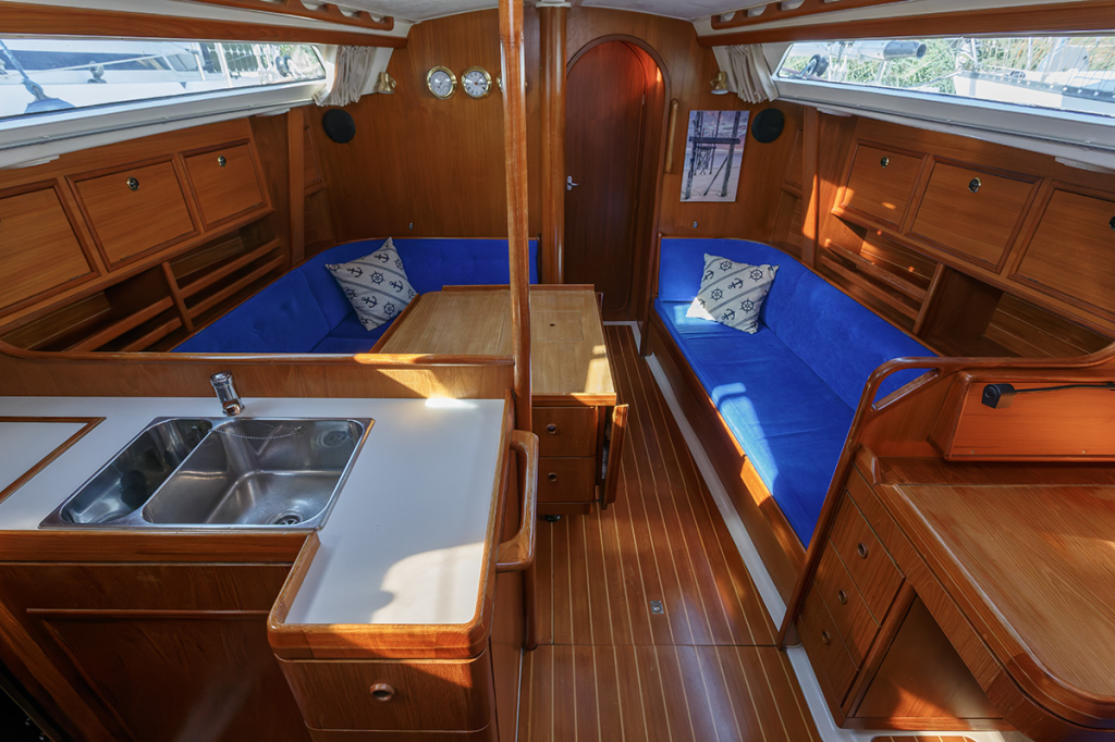 De salon is ruim, praktisch ingedeeld en er valt veel licht binnen. Aan stuurboord treft u de kaartentafel, aan bakboord de ruime kombuis met 3-pits gasfornuis met oven. Verder naar voor zijn twee langsbanken, de rugleuningen kunnen gemakkelijk omhoog geklapt worden, waardoor 2 ruime, extra slaapplaatsen ontstaan. In de boeg van de Winner vindt u een 2-persoons hut met leg- en hangkast. Aangrenzend de toiletruimte met wastafelmeubel en spiegel. Aan bakboord achter in het schip bevindt zich de eigenaarshut, voorzien van de benodigde kastruimte. Aan stuurboord achter een royale separate doucheruimte met ook plaats voor bijvoorbeeld natte zeilkleding.