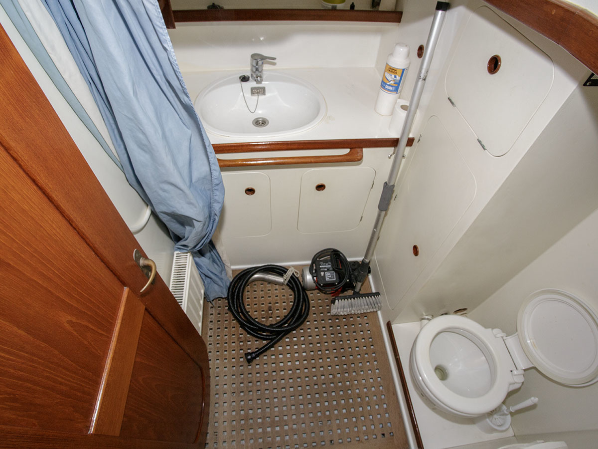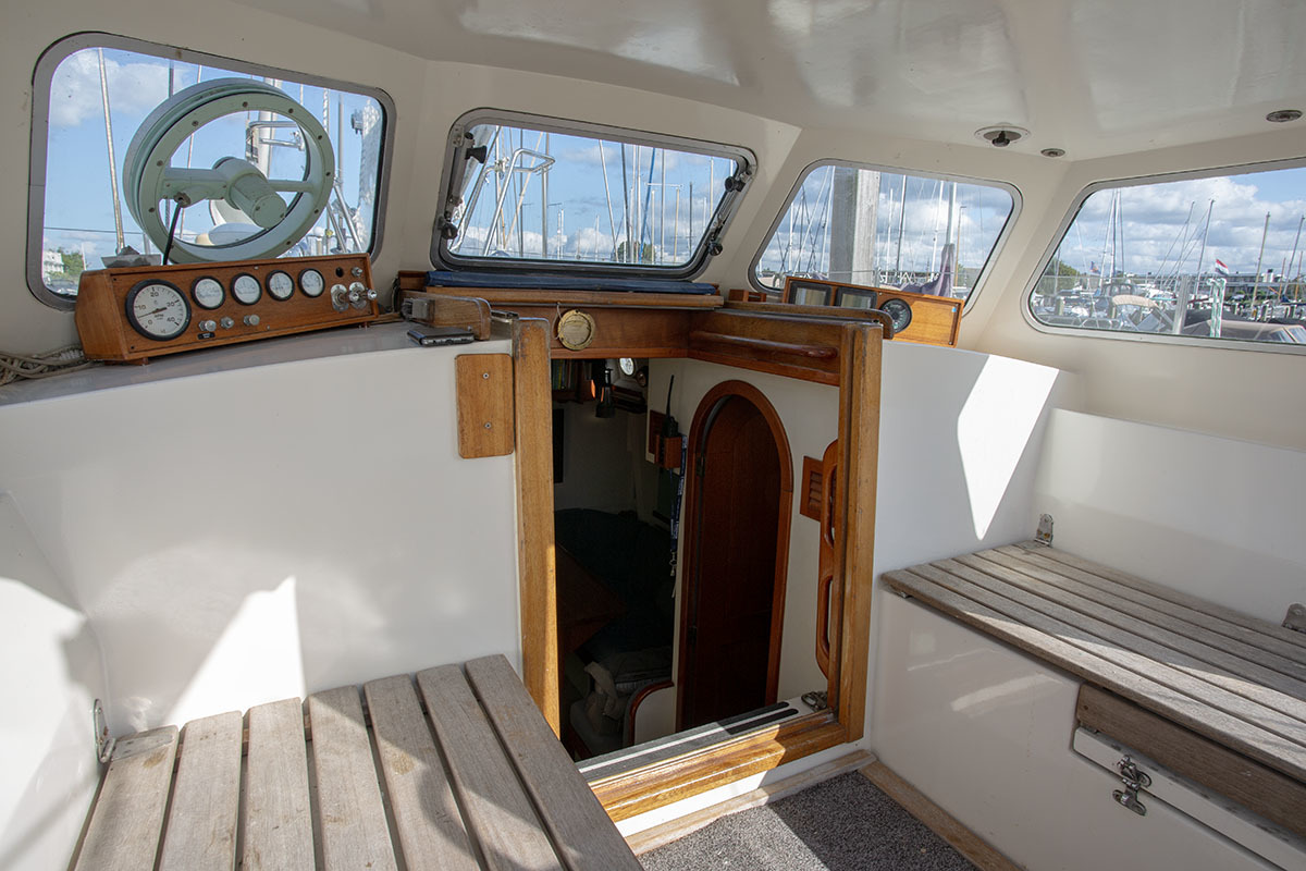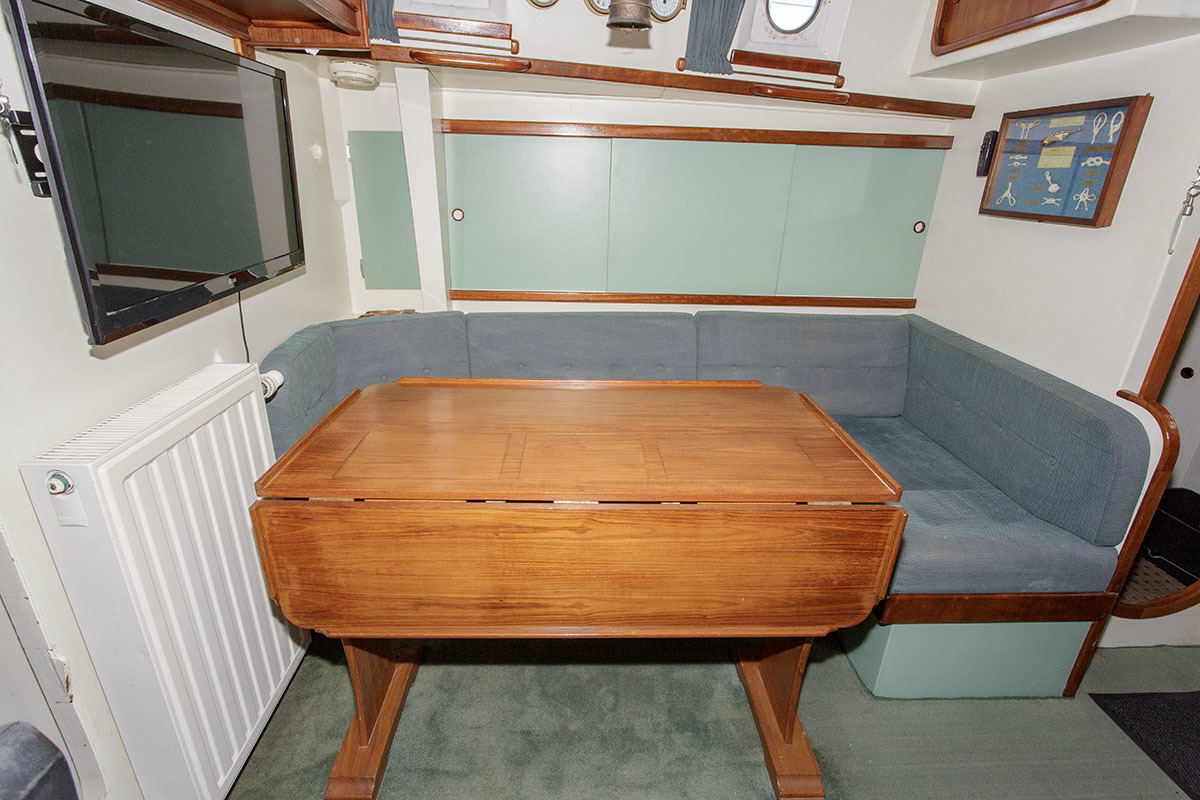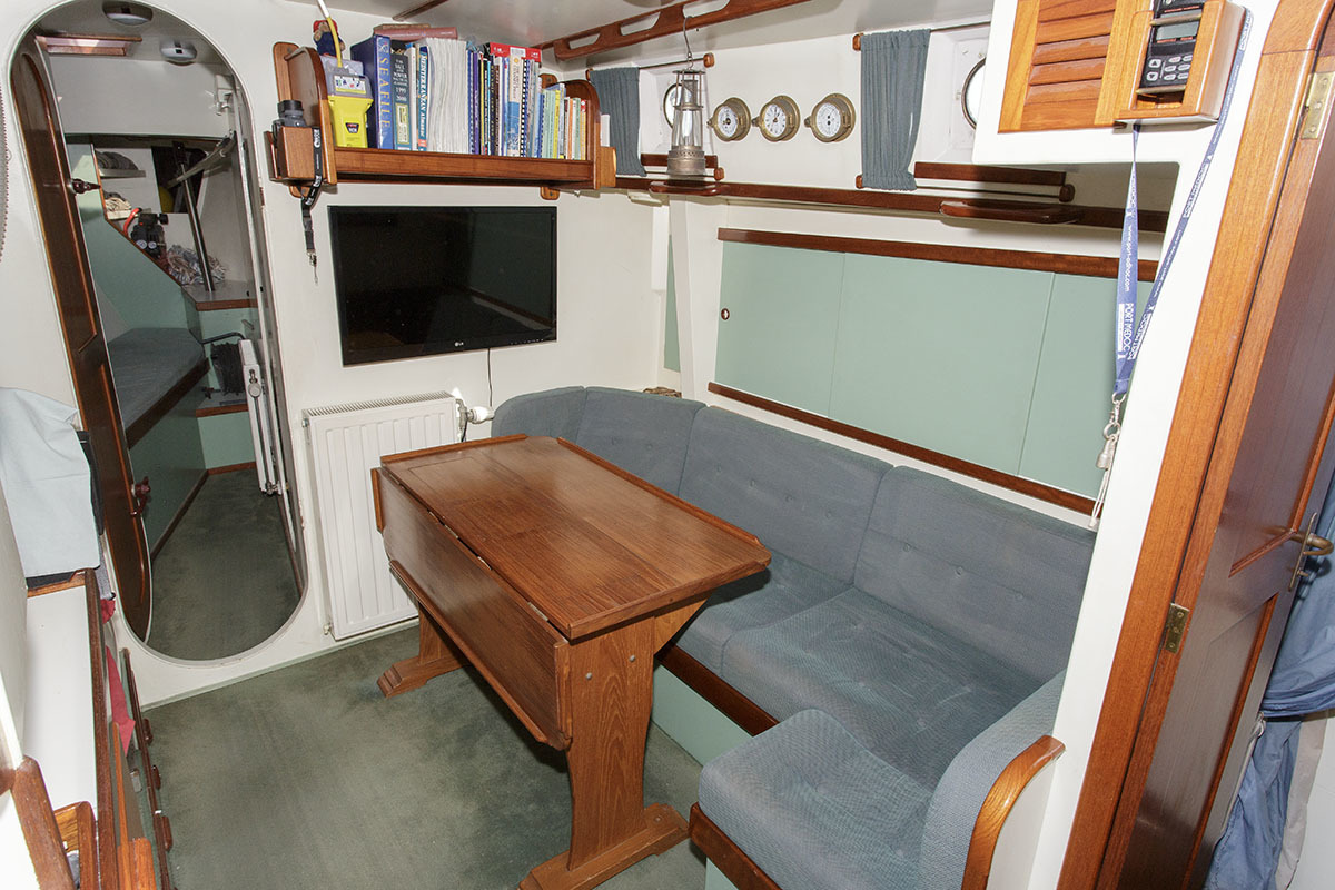 Bij binnenkomst is aan bakboord de navigatiehoek en iets naar achteren de keuken. Aan stuurboord is een knusse zithoek. en direct naast de ingang de toilet en doucheruimte. In de boeg is een hut met stapelbed, en een ruimte met wasmachine. Geheel voorin is nog een extra slaapplaats. Door de gang naar achteren waar veel kast en opbergruimte is komt men langs de machinekamer annex werkruimte. Geheel achter is een dubbele hut. Voor wie een goed gebouwd zeewaardig jacht zoekt wat tevens geschikt is voor lang of misschien wel permanent verblijf aan boord is deze Skarpson zeker het overwegen waard. Overtuig uzelf door haar te bezoeken.