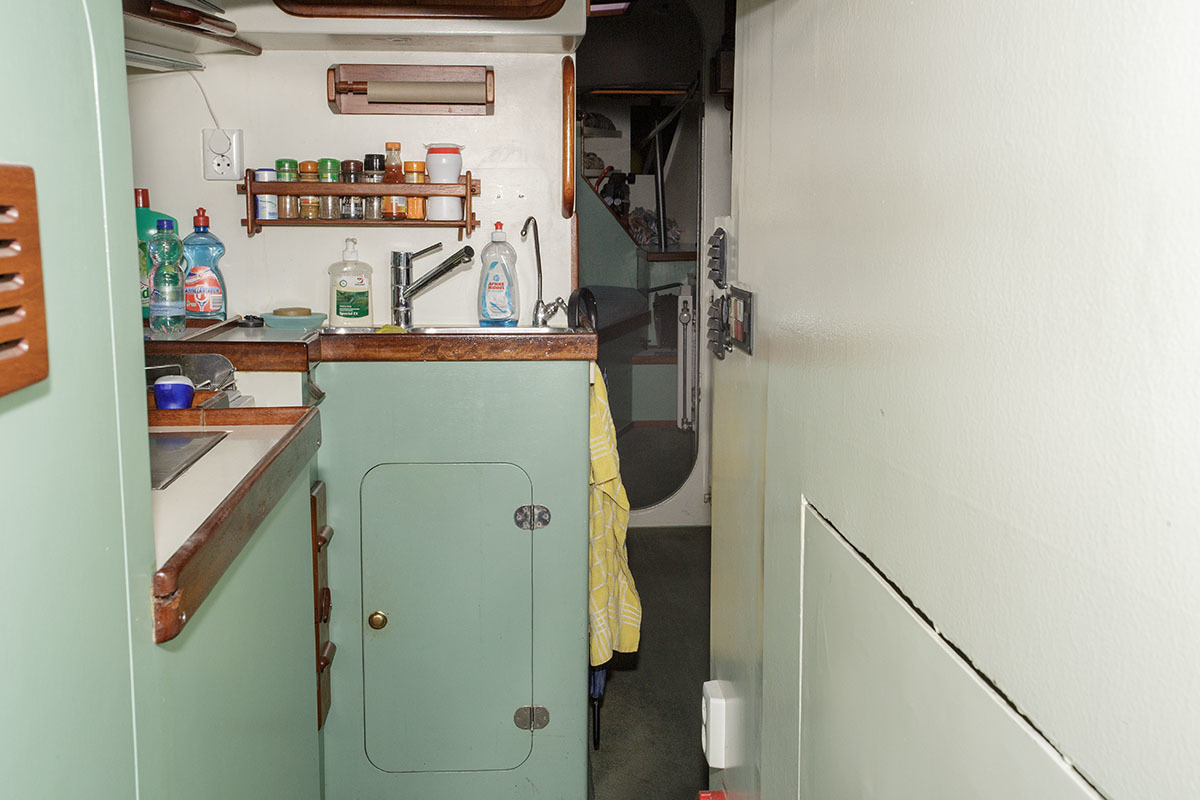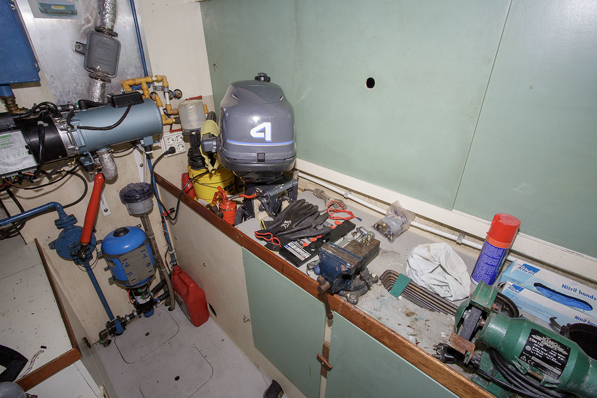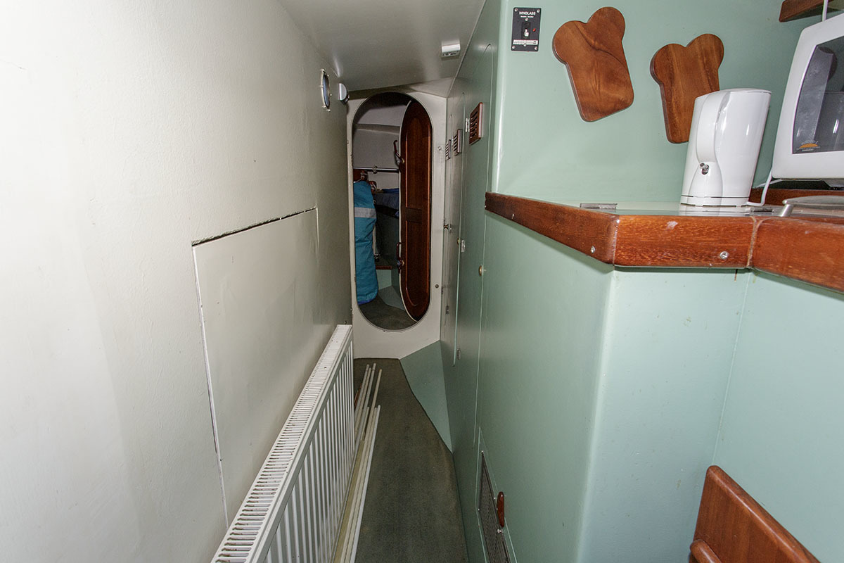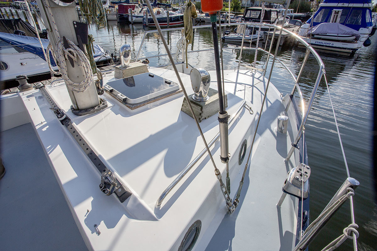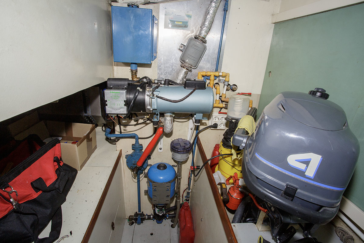 Bij binnenkomst is aan bakboord de navigatiehoek en iets naar achteren de keuken. Aan stuurboord is een knusse zithoek. en direct naast de ingang de toilet en doucheruimte. In de boeg is een hut met stapelbed, en een ruimte met wasmachine. Geheel voorin is nog een extra slaapplaats. Door de gang naar achteren waar veel kast en opbergruimte is komt men langs de machinekamer annex werkruimte. Geheel achter is een dubbele hut. Voor wie een goed gebouwd zeewaardig jacht zoekt wat tevens geschikt is voor lang of misschien wel permanent verblijf aan boord is deze Skarpson zeker het overwegen waard. Overtuig uzelf door haar te bezoeken.