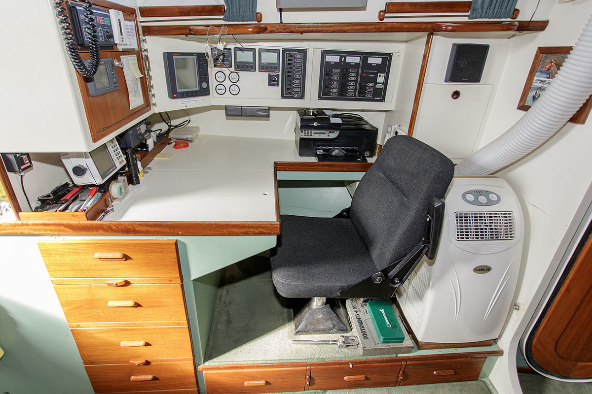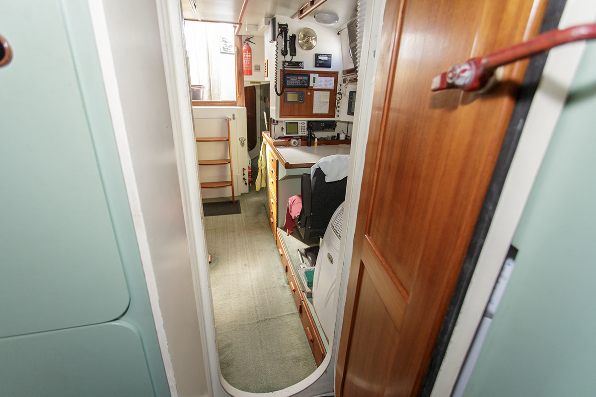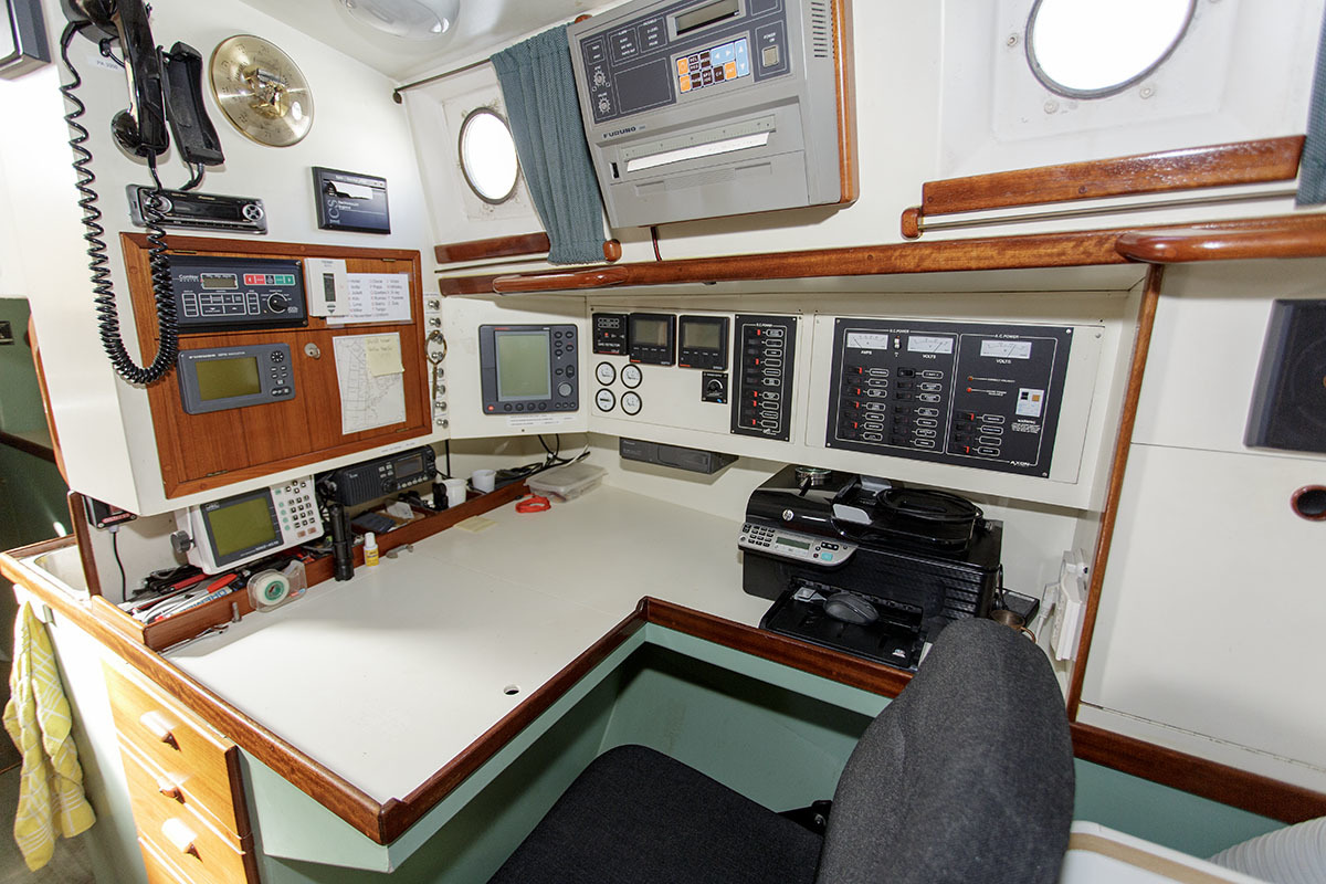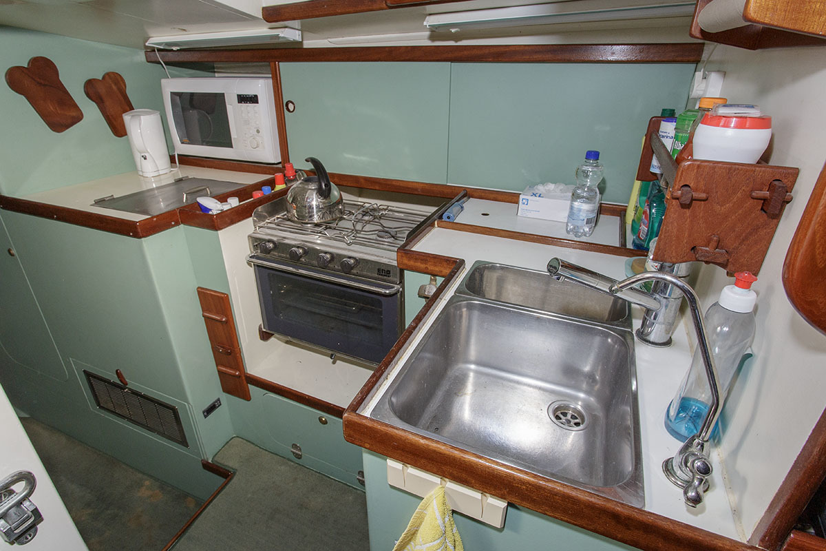 Bij binnenkomst is aan bakboord de navigatiehoek en iets naar achteren de keuken. Aan stuurboord is een knusse zithoek. en direct naast de ingang de toilet en doucheruimte. In de boeg is een hut met stapelbed, en een ruimte met wasmachine. Geheel voorin is nog een extra slaapplaats. Door de gang naar achteren waar veel kast en opbergruimte is komt men langs de machinekamer annex werkruimte. Geheel achter is een dubbele hut. Voor wie een goed gebouwd zeewaardig jacht zoekt wat tevens geschikt is voor lang of misschien wel permanent verblijf aan boord is deze Skarpson zeker het overwegen waard. Overtuig uzelf door haar te bezoeken.